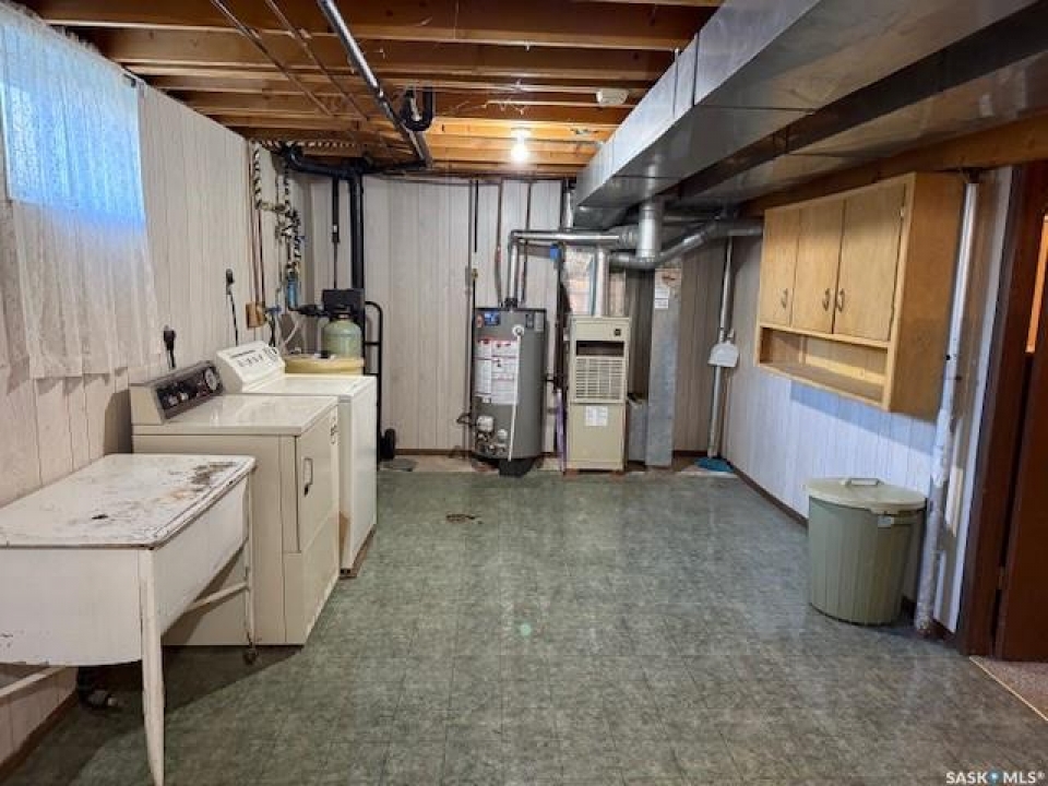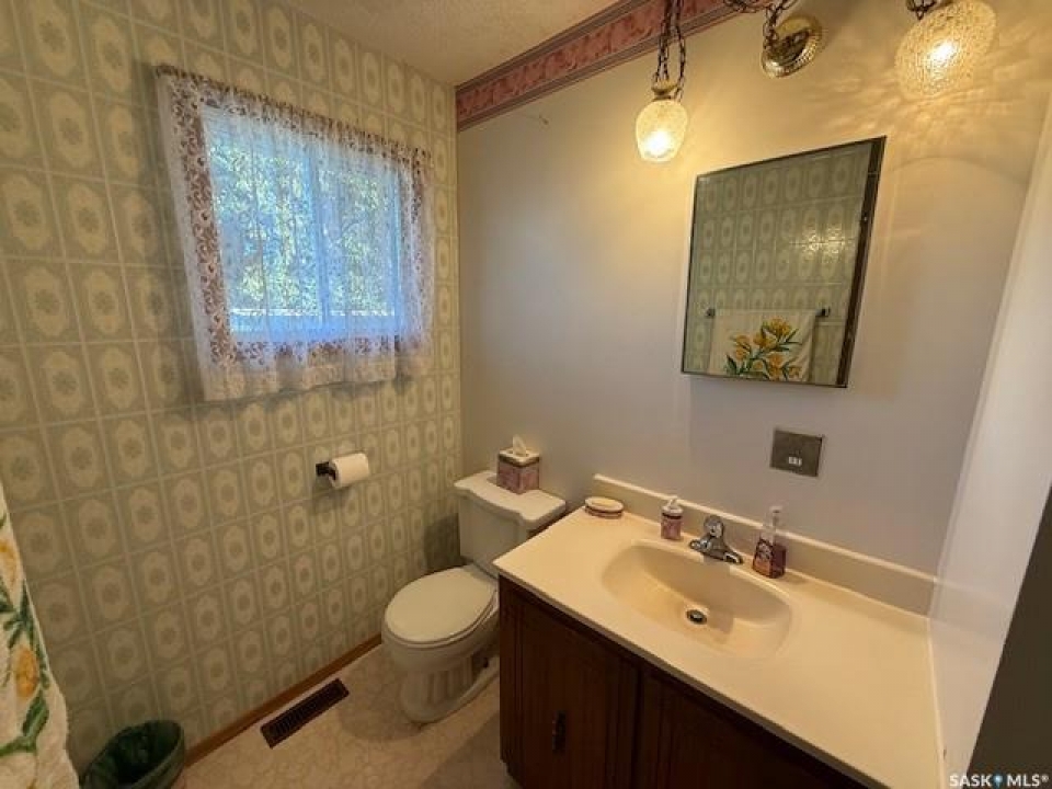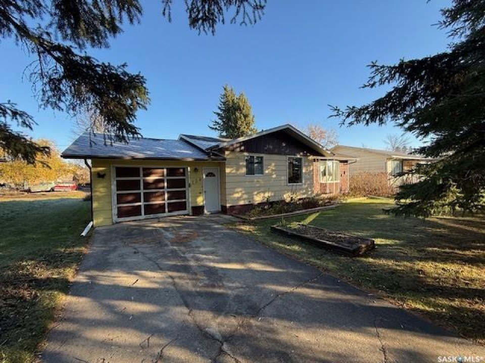 Welcome to this charming and affordable 1,120 sq. ft. bungalow, nestled in a quiet, family-friendly community. Built in 1978 and thoughtfully maintained, this home offers comfort, functionality, and space to grow. The main level features three inviting bedrooms, a bright 4-piece bathroom, a U-shaped kitchen with ample cupboards, a dedicated dining area, and a spacious living room highlighted by a cozy fireplace and a beautiful bay window. The fully finished basement expands your living space with a large rec room complete with a dry bar, a convenient office, a 3-piece bathroom, and a generous utility/laundry room with a cold storage area. The attached single-car garage, added in 1983, provides additional storage with built-in cabinets, while the wheelchair-accessible layout ensures comfort and accessibility for all. Enjoy the peaceful backyard with two garden sheds, a garden area perfect for growing your own produce, and back lane access for added convenience. All appliances are included; move in and make this wonderful home your own in a welcoming community that offers great value and small-town charm.