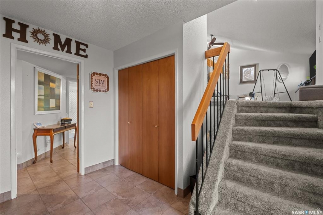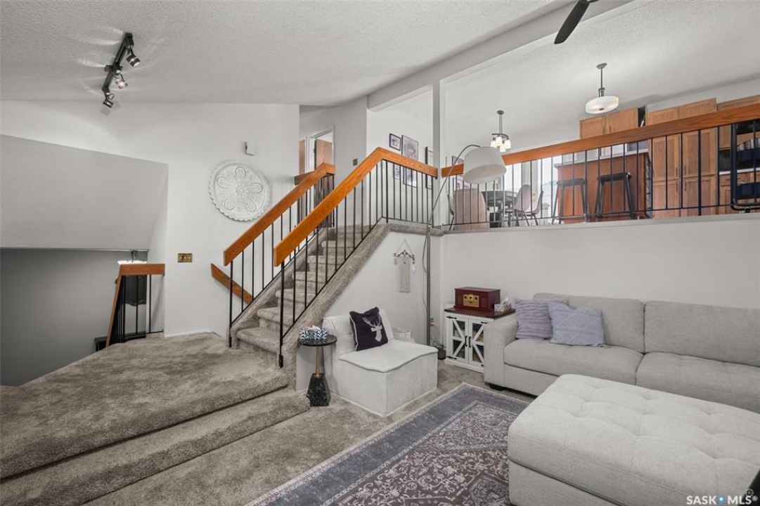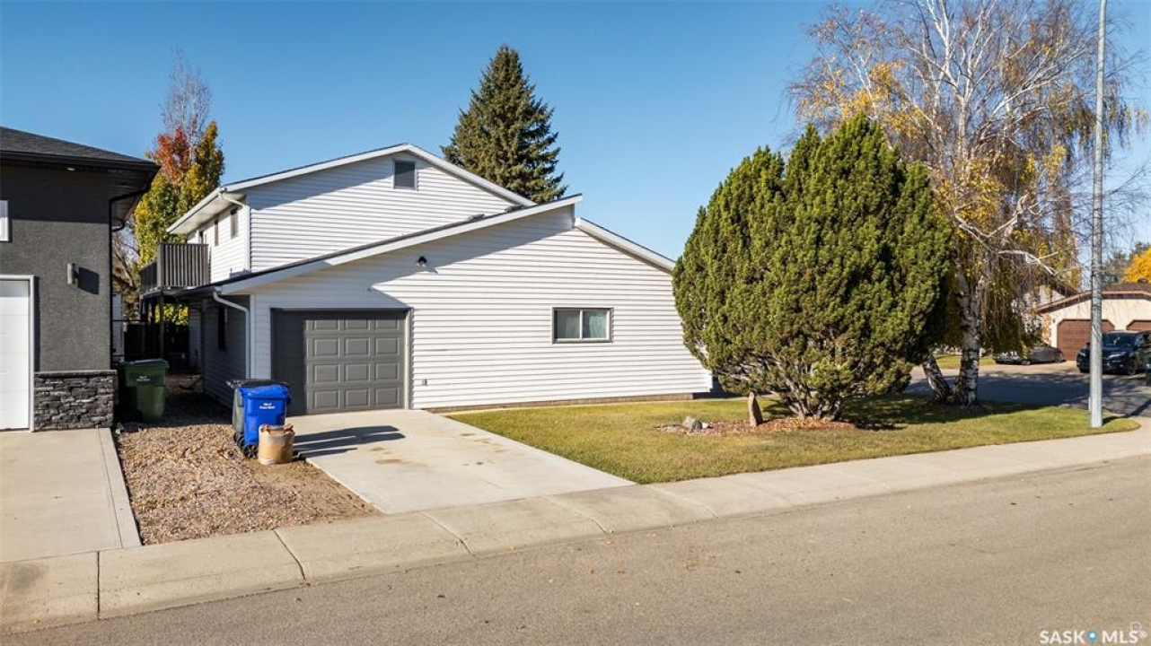 Located in the sought-after Crescent Acres neighbourhood, this unique split-level home offers space, comfort, and convenience — just steps away from schools, playgrounds, the rink, and the new Yard development. The main floor features a welcoming entryway with plenty of room and direct access to the attached triple garage. This level also includes two large bedrooms, a beautifully upgraded 3-piece bathroom, and a cozy family room with patio doors leading to a private deck and a spacious, private treed backyard — perfect for relaxing or entertaining. The second level showcases an oversized living room with vaulted ceilings, creating a bright and open atmosphere. On the upper level, the kitchen offers an abundance of oak cabinetry, a functional island open to the dining area that overlooks the living room. From here, step out the garden door to a balcony with views of the yard — the perfect spot for morning coffee. Three additional bedrooms, including a primary suite with its own 3-piece ensuite. Another full 3-piece bathroom serves the remaining bedrooms, completing the upper level. the basement has a large combined utility and laundry area with an abundance of storage in the crawl space. This one-of-a-kind layout provides flexibility for families of all sizes in a prime location. Call today for your viewing!