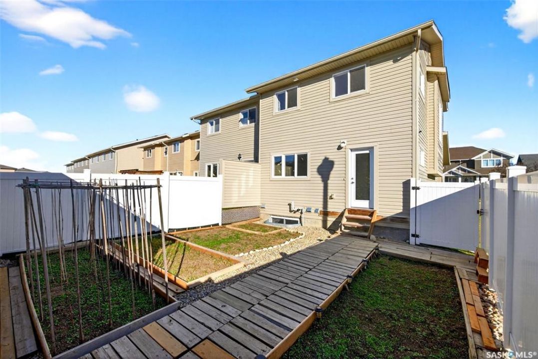 Welcome to this beautifully maintained 1,233 sqft two-storey home, perfectly positioned on a desirable corner lot in Regina's Harbour Landing, just one block from two primary schools. Flooded with natural light from large south, east, and west-facing windows(no north-facing windows in this house) this residence feels incredibly bright and welcoming. The open-concept main floor is illuminated throughout the day, showcasing a seamless flow between the living and dining areas and the modern kitchen. The kitchen is a highlight, complete with new 2025 cabinetry, durable countertops, stainless steel appliances, and is complemented by a convenient 2-piece bathroom. Upstairs, three comfortable bedrooms and a full bathroom create a peaceful retreat. Outside, the lovely backyard presents an ideal canvas for garden lovers and family gatherings. This home is not only charming but also efficient, equipped with a tankless water heater for endless hot water and lower utility costs. Significant updates ensure peace of mind and include 2025 interior paint, 2025 kitchen and bathroom cabinets, 2020 shingles with a 50-year GAF warranty, a 2021 air conditioner, a 2024 range hood, and recent furnace updates. The development-ready basement, featuring 3-piece rough-in plumbing and potential for a separate entrance, offers excellent income suite potential (subject to municipal approvals). With a spacious detached 2-car garage and a prime location near parks and amenities, this sun-filled home masterfully blends move-in-ready comfort with outstanding investment potential. Call your agent to schedule a private viewing today.