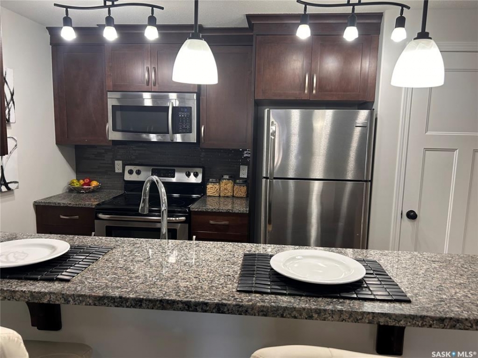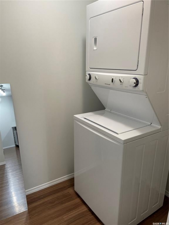 Please note: the seller will pre-pay the condo fees for one year on any purchase. Large 1 bedroom unit with two full baths and 2 underground parking stalls located in the prestigious Bellagio building. Bright open floor plan with southern exposure. Attractive dark maple cabinets and vanities with quartz countertops. Walk in closet and full bath off of the bedroom. Conveniently located main floor unit. This upscale building features an owners lounge (currently under repair) and fully equipped fitness centre. Excellent location across from Wascana Park and within easy walking distance to the Conexus Arts Centre. Centrally located between downtown and the University and near the Wascana Rehab Centre. Parking stalls 59 and 125 included