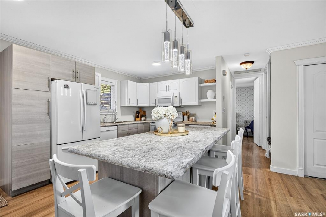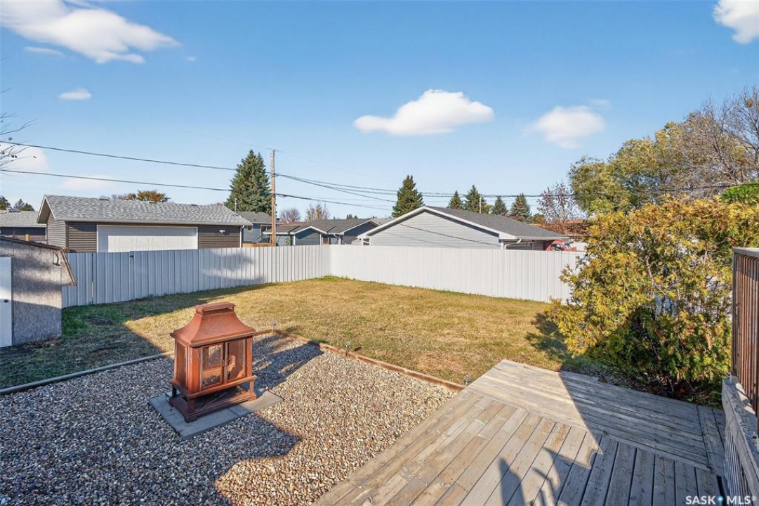 Move right in and enjoy this beautifully maintained 4-bedroom, 2-bathroom bi-level, ideally located on a quiet crescent in Moose Jaw's desirable Palliser Heights neighbourhood. Extensively updated over the years, the home showcases a complete exterior renovation, a modern kitchen remodel, and new flooring throughout, all finished in a fresh, contemporary style. The bright, functional layout offers comfortable living spaces on both levels, making this home truly move-in ready. Set on a large lot with room to add a garage, the property also features a fully fenced yard with a three-tier deck with privacy walls and a dedicated fire pit area—perfect for outdoor entertaining and family time. A stylish, well-cared-for home on a quiet street—this one checks all the boxes!