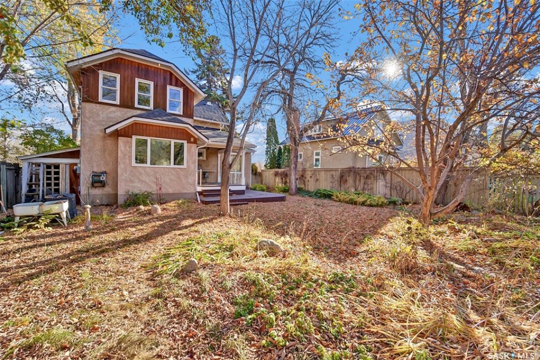 Welcome to 927 10th Avenue North — a beautifully preserved 2-storey character home nestled in the heart of Saskatoon's desirable City Park neighborhood. Bursting with timeless charm and unmatched curb appeal, this 1927 home overlooking Wilson Park's playground and community garden. Offering 1,283 sq. ft. of living space plus a finished detached garage, this 3-bedroom, 3-bathroom residence blends historic character with thoughtful modern updates. The main floor features beautiful hardwood flooring, an inviting living room with adjoining office space, and a bright dining area perfect for gatherings. The kitchen provides a functional layout with plenty of potential to personalize to your taste. Upstairs, you'll find three comfortable bedrooms, The finished basement adds extra living space with a cozy family room, 3-piece bath, and convenient laundry area. Outside, enjoy a covered front verandah, wrap-around deck, and a beautifully landscaped yard with mature trees, perennials, and fruit trees — the perfect balance of privacy and charm. Located just one block from the Meewasin Trail and the river, and a short walk to RUH, City Hospital, the University of Saskatchewan, and downtown, this home truly combines architectural beauty, comfort, and convenience. Book your private showing today and fall in love with the character, lifestyle, and location that 927 10th Avenue North has to offer.