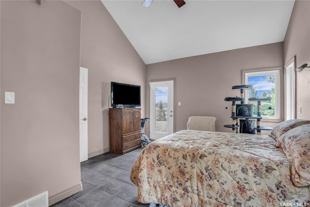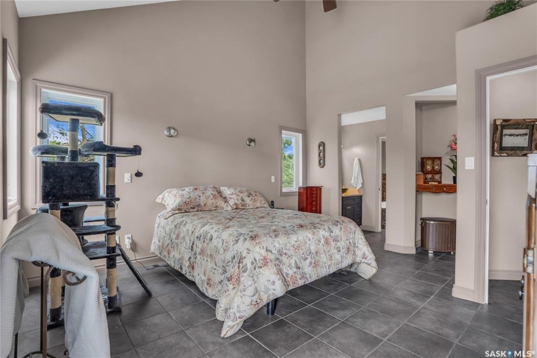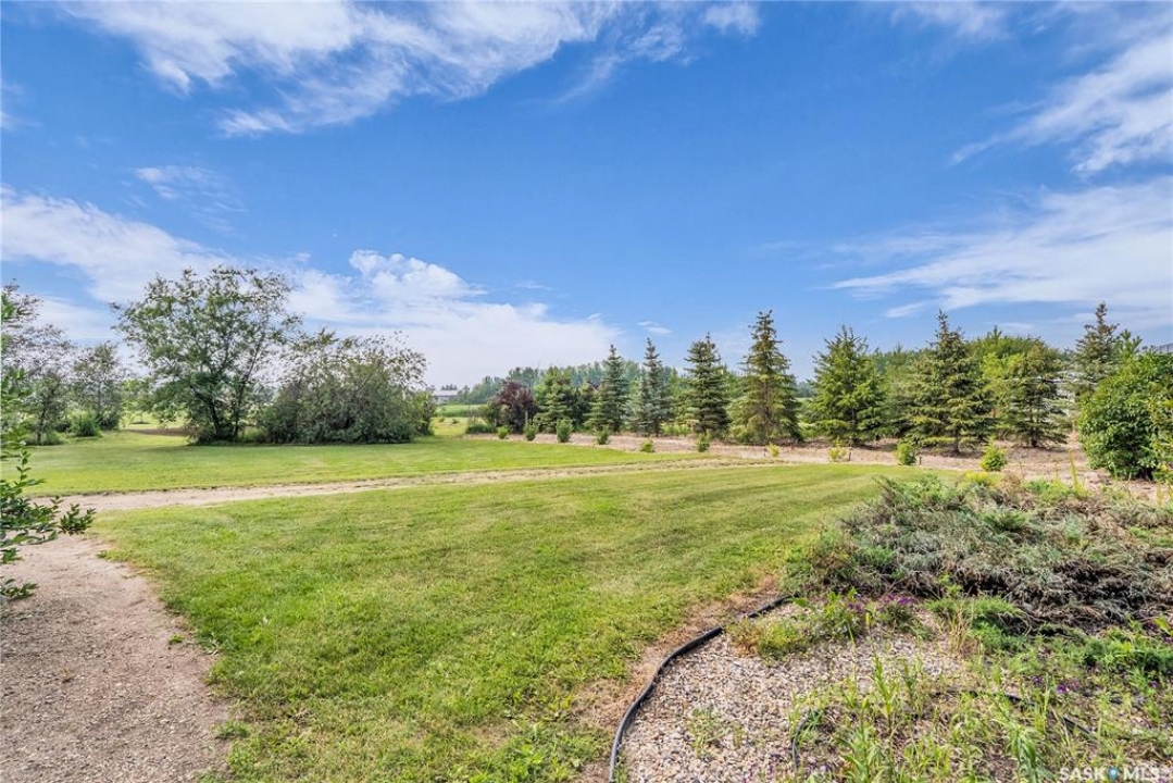 110 Wind River Estates is a thoughtfully designed property located on the edge of Clavet in the RM of Blucher.. Private access to the 3.01-acre estate is from the old #16 highway, an ideal location—with convenient access to four major potash mines, Cargill, walking distance of Clavet School and a variety of local businesses and is only 12 minutes from Saskatoon. Inside, the heart of the home is a chef-inspired kitchen, featuring extensive counter space, a large island with prep sink, a large pantry, gas range, and a built-in refrigerator and freezer. The breakfast bar is a casual space for morning meals or after-school snacks. The dining area opens onto a covered deck, ideal for outdoor dining and entertaining. The spacious living room boasts soaring vaulted ceilings and a cozy gas fireplace. The main-floor primary suite is complete with a luxurious ensuite featuring a jetted tub, tiled shower, and a generous walk-in closet. The second floor has a versatile bonus room overlooking the main living and connects to an additional large bedroom and full bathroom via a unique bridge-style hallway. The bonus room can easily be converted to another bedroom. The fully finished basement includes a large entertainment area, two additional bedrooms, a full bathroom, a cold room, and ample storage space. A main-floor laundry room is conveniently located next to a 2 piece bathroom and just off the garage entrance. The attached heated garage measures 26' x 32' with 12' ceilings, a built-in workbench, hot and cold water, extensive storage and large south facing windows. Landscaped with hundreds of trees, shrubs and perennials. Concrete stepping stones to a secluded firepit & garden area. Designed with energy efficiency in mind, this home stays cool in the summer and warm in the winter. Additional features include paved access right to the gate and brand-new asphalt shingles installed in June 2025. This exceptional property must be seen to be truly appreciated. Call today!