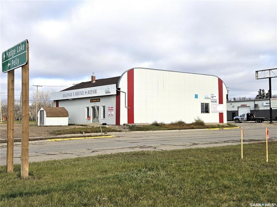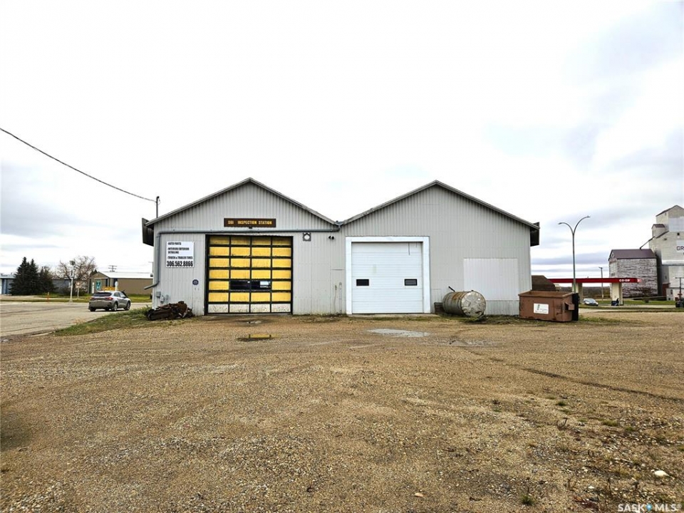 Prime Commercial Property with Highway Exposure – Kamsack, SK! An Excellent Investment Opportunity! This commercial property is ideally located at the high-traffic intersection of Highways 5 & 8, offering exceptional visibility! Situated on 6 spacious lots, the property features a 3,600 sq. ft. metal-clad shop with a large yard—perfectly suited for a variety of business operations. With ample space for parking, maneuvering large equipment, or accommodating trailers, this site is a rare find. The building includes: Two large bays with overhead doors (Door 1: 12.6' H x 13.0' W has manual open, Door 2: 11.5' H x 12.0' W has electric open), room for up to 5 vehicles, vehicle hoist and floor drains, ventilation and ceiling fans, three office spaces, front showroom, mezzanine level and 2-pc bathroom. Offering a flexible layout with a blend of storefront retail and warehouse space, this property is ideal for a wide range of business ventures—from auto service and equipment sales to retail and light industrial uses. Bring your vision to life and tailor this well-located property to meet your commercial needs. Whether you're an investor or an owner-operator, this is your chance to secure a high-exposure asset in a growing community.