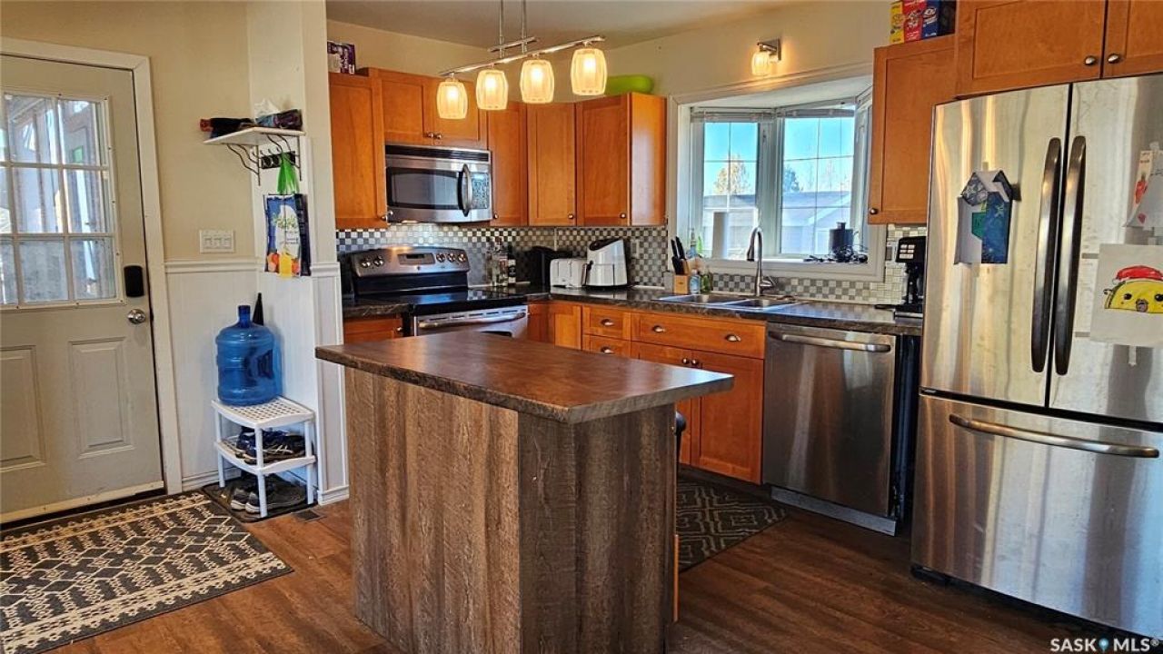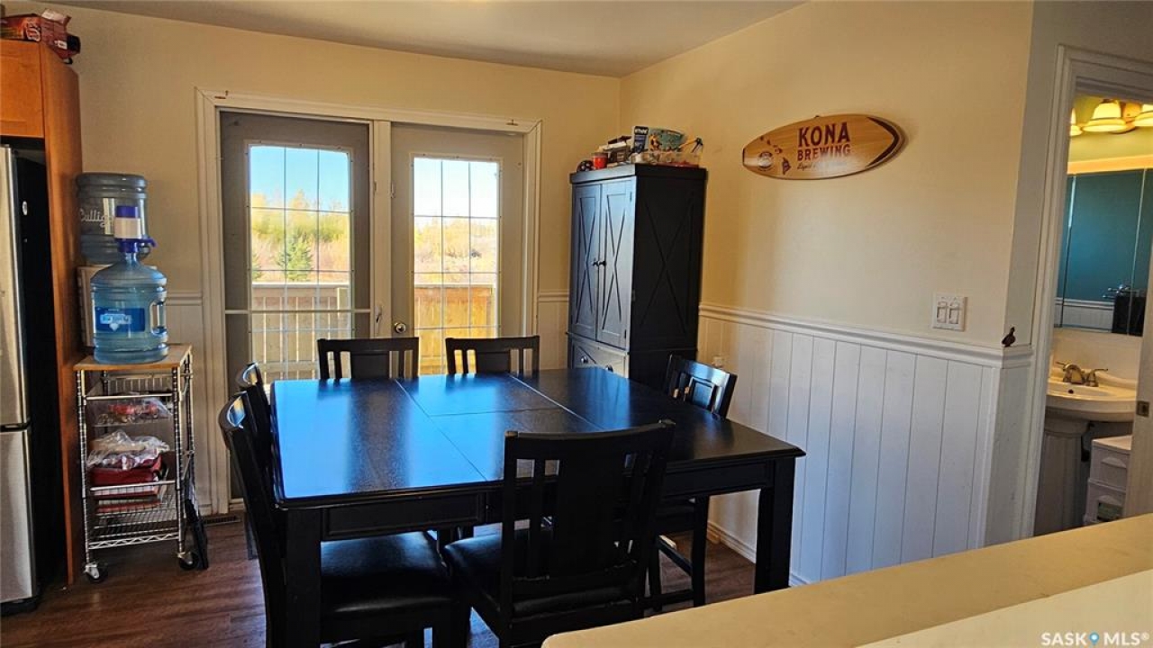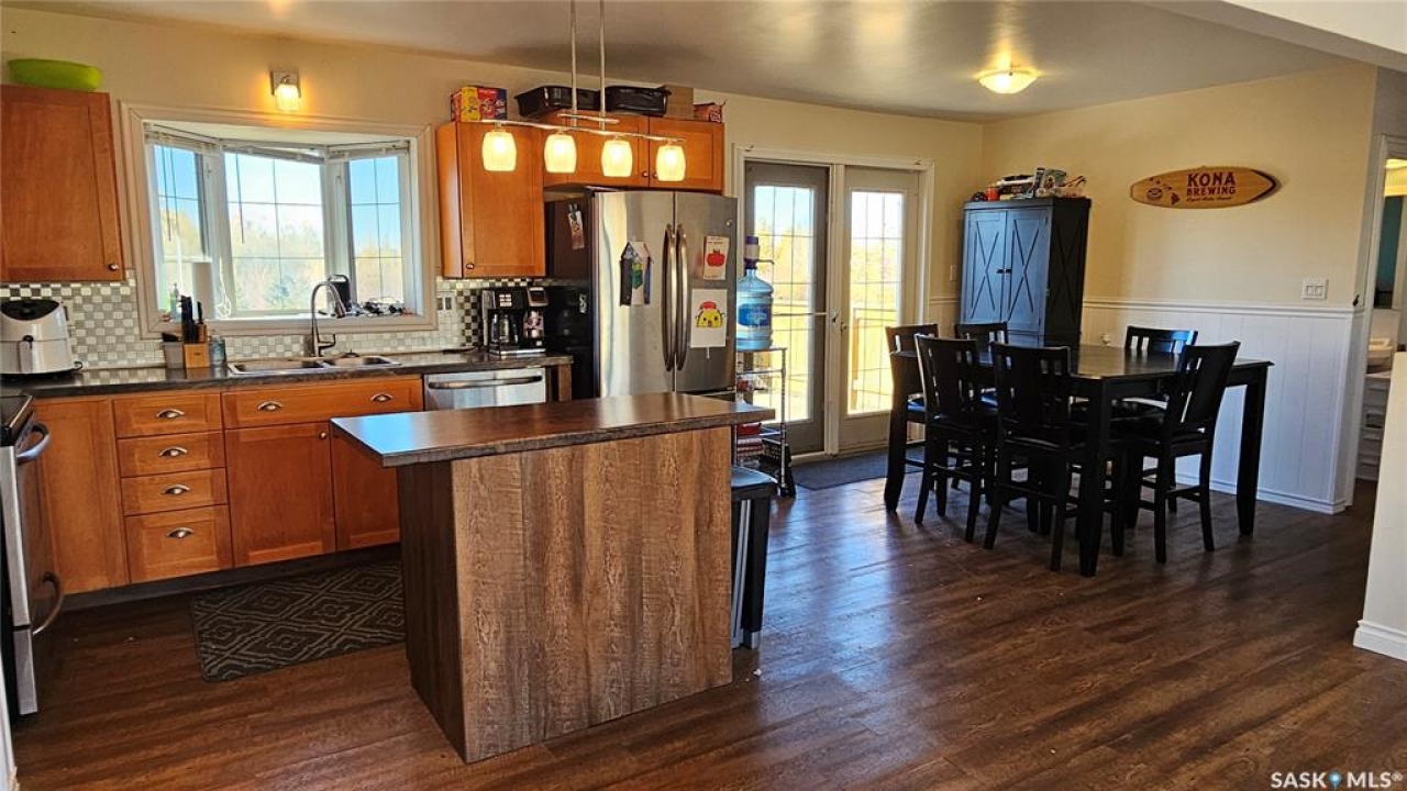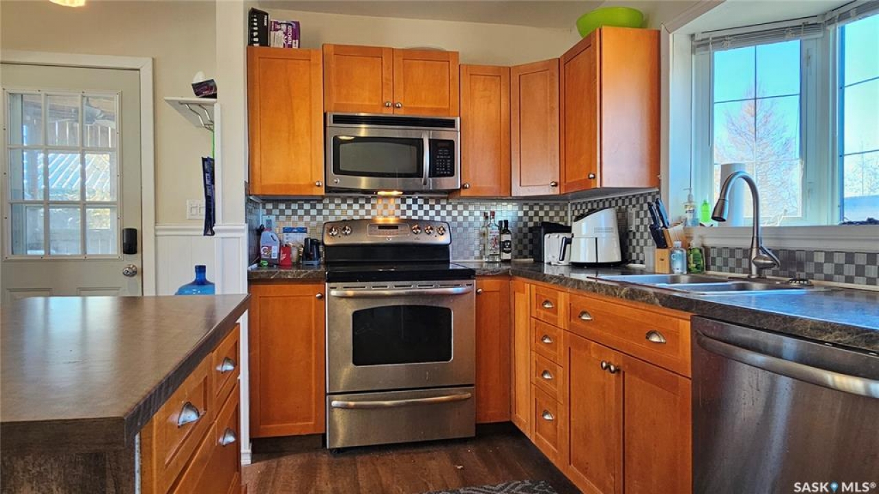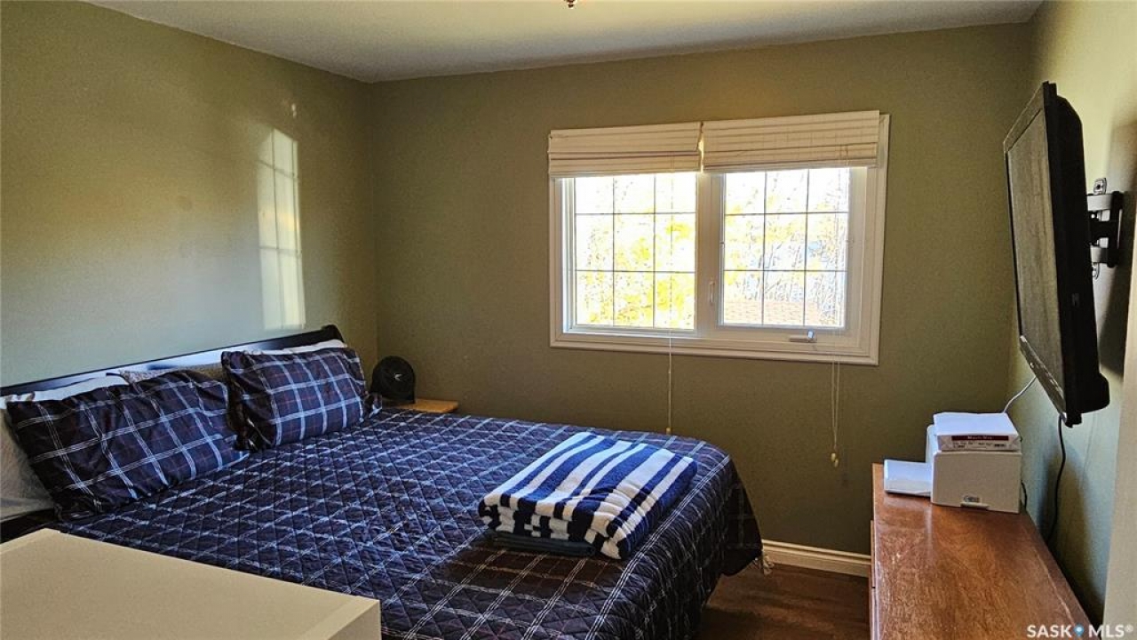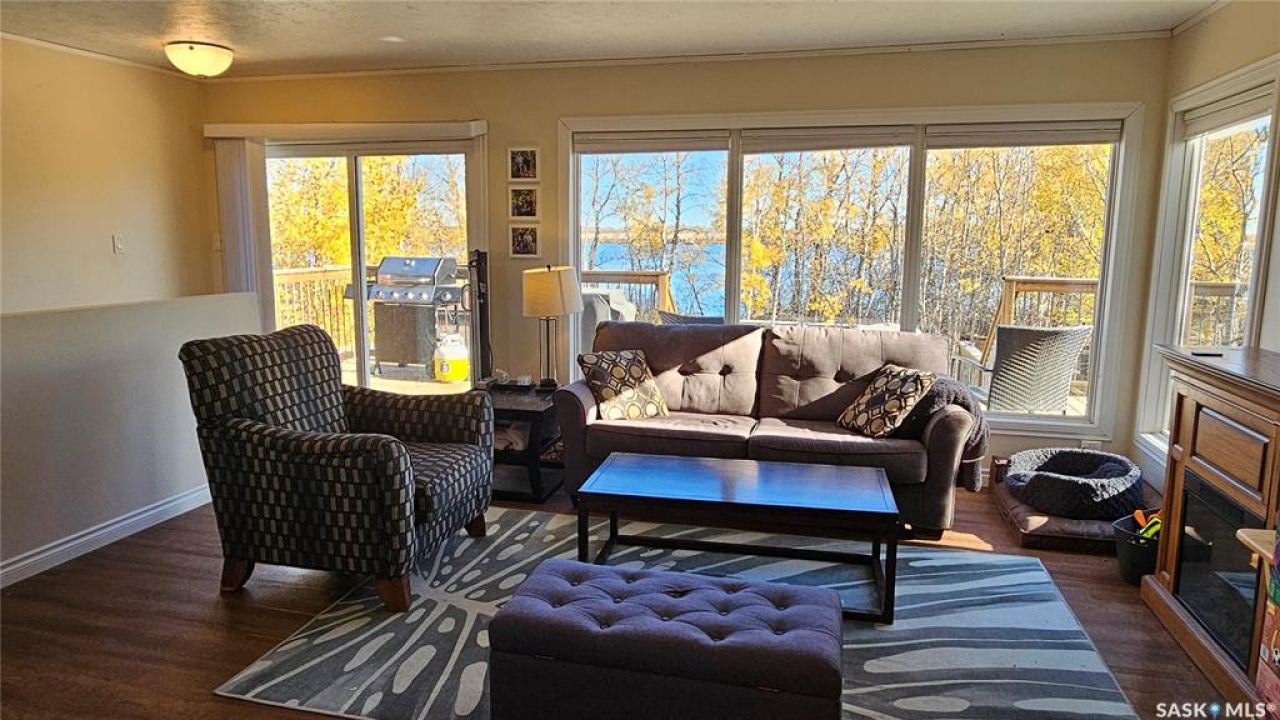 Enjoy year-round lakefront living at 38 Lucien Lakeshore Drive, a 960 sq ft four-season bungalow with direct water access and no stairs to the shore. This cabin offers 4 bedrooms and 2 bathrooms (3 up, 1 down + potential 5th bedroom). The bright open-concept kitchen, dining, and living area features large lake-facing windows and stainless-steel appliances, including an island and bay-window nook. A large screened-in covered porch welcomes you at the entry—perfect for extra seating or summer dining. The spacious deck overlooks the yard and provides plenty of space for BBQs and outdoor furniture. The level yard has room for kids to play, a firepit area, and two storage sheds—one oversized for lake gear and one smaller for tools or toys. The basement is built with ICF walls, offering high ceilings and a partially finished layout including laundry, a 3-piece bath, and one bedroom, with room to add another. Utilities and features include: 1,800 gal. water storage (hauled from Middle Lake), 2,500 gal. septic tank, Metal roof, Vinyl plank flooring throughout, Central air conditioning, Sump pump, Starlink internet equipment included. Located about 35 km North of Humboldt, Lucien Lake is a popular family-friendly destination with a regional park, sandy beaches, boat launch, and excellent fishing for walleye, northern pike, and perch. This move-in-ready lakefront property offers great indoor and outdoor space, modern utilities, and one of the most accessible waterfront lots on Lucien Lake—ideal for both summer fun and year-round enjoyment.