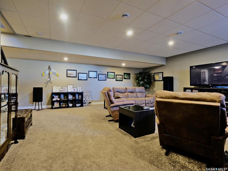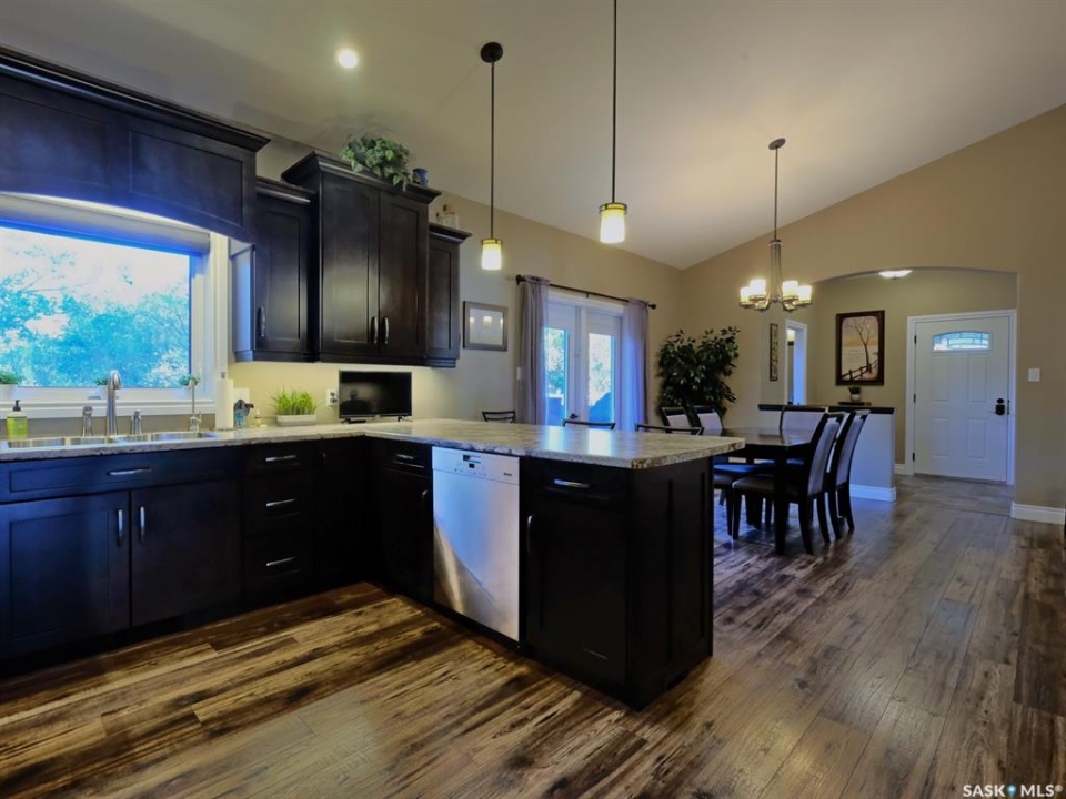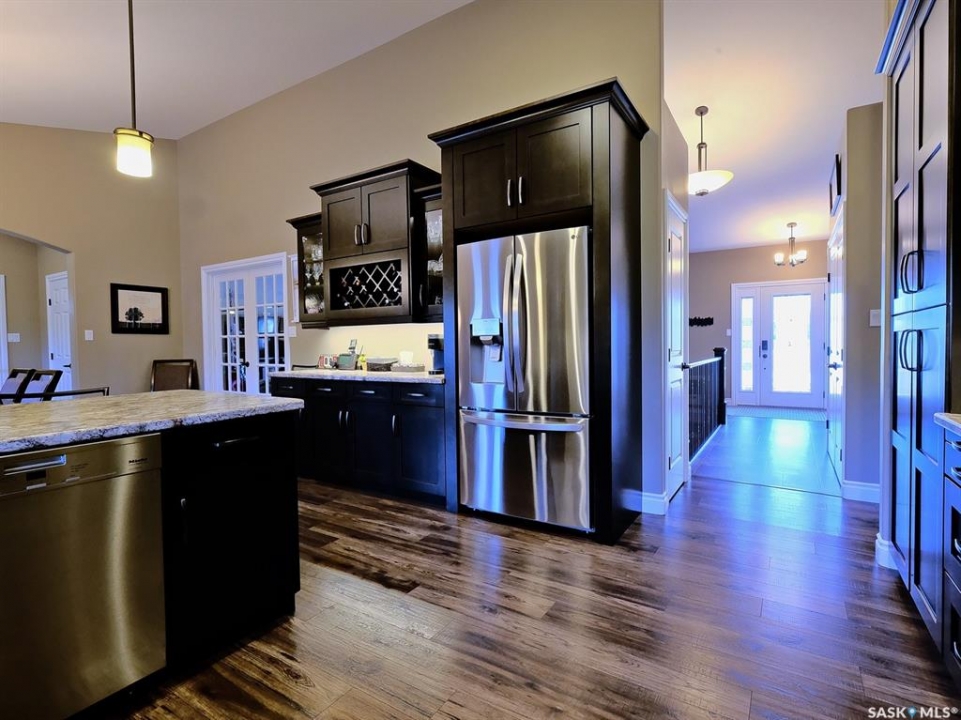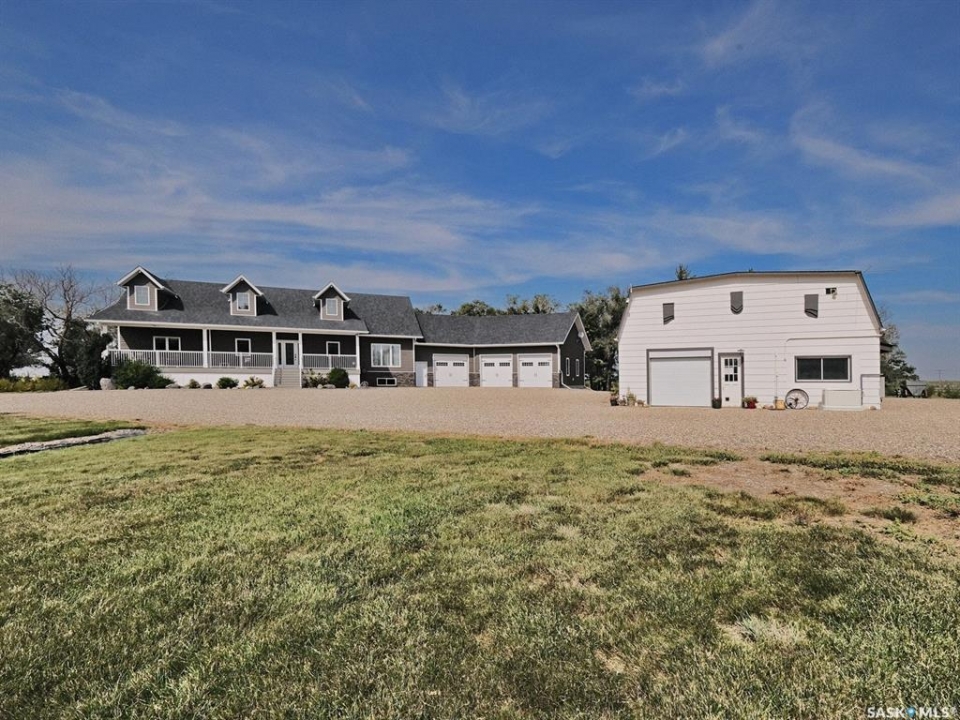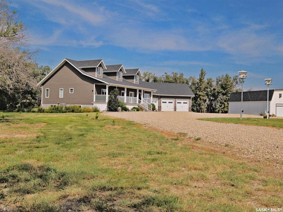 This stunning 2,298 sq. ft. executive bungalow, built in 2015, offers exceptional quality, modern comfort, and country living at its finest. Designed with attention to detail and built to impress, this home combines luxury finishes with practical features, all set on a beautifully developed 14-acre property, located directly across the road of the west side of town limits. Inside, the home features an open and inviting layout with two spacious bedrooms and an optional third, along with a main floor office and laundry for ultimate convenience. There are 3.5 bathrooms, including a luxurious 5-piece ensuite off the primary bedroom complete with double sinks, a soaker tub, and separate shower. The fully developed basement, built with 9-foot ICF walls, provides generous living space ideal for family recreation or entertaining. The attached 1,398 sq. ft. heated garage is fully finished, offering ample room for vehicles, hobbies, or storage. Outside, the property is equally impressive — a fully fenced 14-acre yard with a keypad remote entry gate ensures both privacy and security. The yard is beautifully landscaped with approximately 1,200 planted trees, all supported by a drip irrigation system. A Generac generator provides full-yard backup power, adding peace of mind in any situation. Additional features include central air, central vacuum, a hot tub, and several outbuildings — including a 60x100 canvas-covered storage building, a quonset, and a shop — providing incredible versatility for work, storage, or recreation. This property is truly in like-new condition and showcases pride of ownership throughout. With its exceptional craftsmanship, thoughtful layout, and impressive amenities, it offers the best of both luxury and practicality — a rare opportunity for those seeking an executive home with space to live, work, and play.