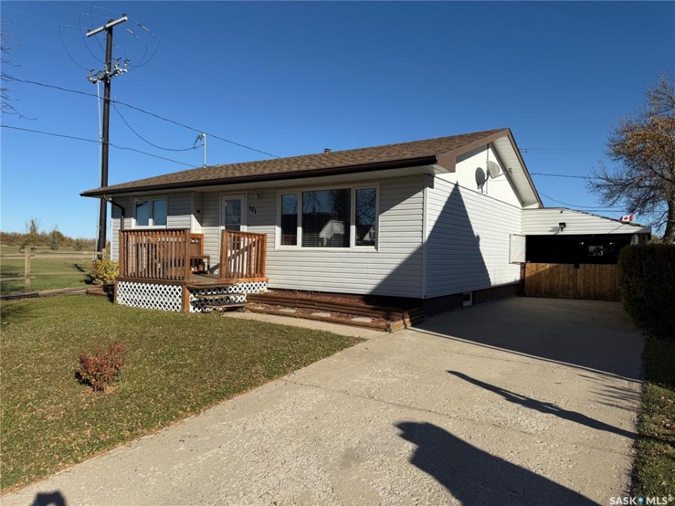 Welcome to 101 Young Street in the friendly village of Neudorf, SK — a place where small-town charm and practical living come together beautifully. Built in 1966, this well-cared-for 896 sq ft bungalow offers comfort, function, and room to grow. The main floor feels bright and welcoming, with two comfortable bedrooms, a cheerful 4-piece bathroom, a spacious living room, and an inviting eat-in kitchen — the kind of space where morning coffee just tastes better with the sunlight streaming through the updated windows. The basement is partially finished — flooring is the last step to complete — and offers plenty of potential for a cozy family room, 3-piece bath with walk-in shower, laundry area, and tons of storage. Outside, you'll appreciate the detached 14 x 22 heated garage with a 220 plug and a 100-amp panel, plus a handy 18 x 20 carport that can easily be enclosed to keep out the elements. The fully fenced yard includes a second gated area perfect for RV parking or extra vehicles. Out back, enjoy a relaxing rock-scaped area paired with a patio, storage shed, and just the right amount of lawn for kids or pets to play. Vinyl plank flooring adds easy upkeep throughout, and the home includes central air, a 200-amp panel, and a concrete driveway. Neudorf itself packs a lot into its friendly streets — grocery store, pizza shop, coffee shop and vendor market, post office, tattoo studio, gas station, library, and elementary school (with high school students bused to Lemberg). There's also a skating and curling rink, golf course, ball diamonds, nature trails, community hall, and a new daycare! It's the kind of place where neighbours wave, life moves a little slower, and coming home just feels right