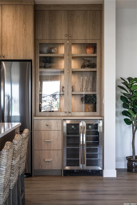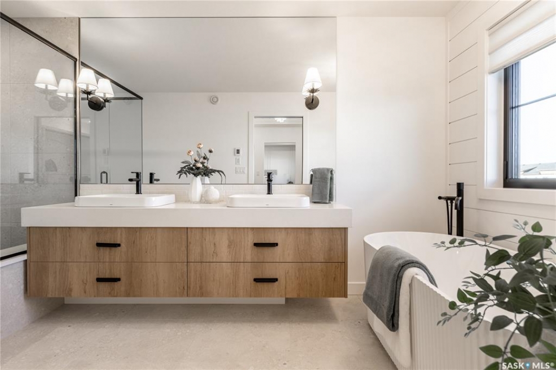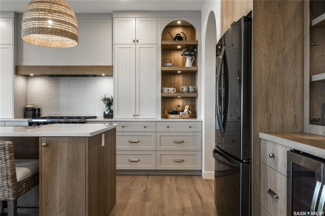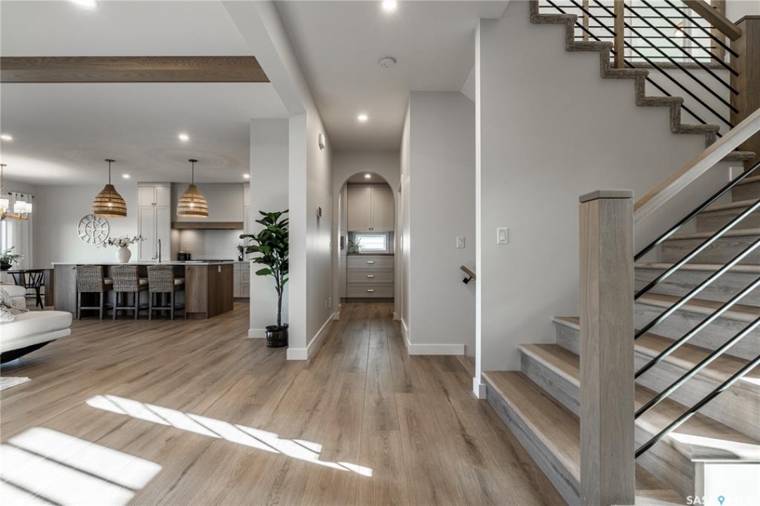 Welcome 415 Sharma Crescent! Another amazing home built by Bondi Developments. Striking street appeal from the moment you pull up which features a mix of composite shakes, stone, and hardi board. When entering you are greeted with a large entry way which leads into the family room. The family room comes with an abundance of windows with west facing exposure overlooking a green space and walking path. It has all the space you need and also includes a electric fireplace with a custom stone feature wall. The kitchen is stunning. It has tons of cabinet and counter space and features quartz counters, two tone cabinets, a full set of dark stainless steel appliances including a gas range, and floating shelves. A walk in pantry off of the kitchen has additional cupboard space with a coffee bar area, and a built in microwave and stand up freezer. The mudroom features a built in bench and cabinetry which leads to the triple car garage. A two piece washroom with custom wallpaper finishes off the main level. Heading to the second floor you have an extra wide staircase with an open railing. The primary bedroom features ship lap ceiling and large windows overlooking the walking path. A massive walkthrough closet with built in cabinetry leads into the 5 piece ensuite. The ensuite features double vanities, heated floors, and a custom tiled shower, and soaker tub. The second floor also has two really good sized additional bedrooms, a 4 piece washroom, a custom laundry, and bonus room with built in book shelf. The fully developed walkout basement is amazing. It has a large family room with custom details, and also comes with a built in wet bar. Two additional bedrooms, and a 4 piece washroom finish off the lower level. Outside of the home you have a large maintenance free partially covered deck with a glass railing, privacy wall. Other features include triple driveway, heated garage, central air conditioning, blinds, and the list goes on. This home is move in ready! Don't miss out!