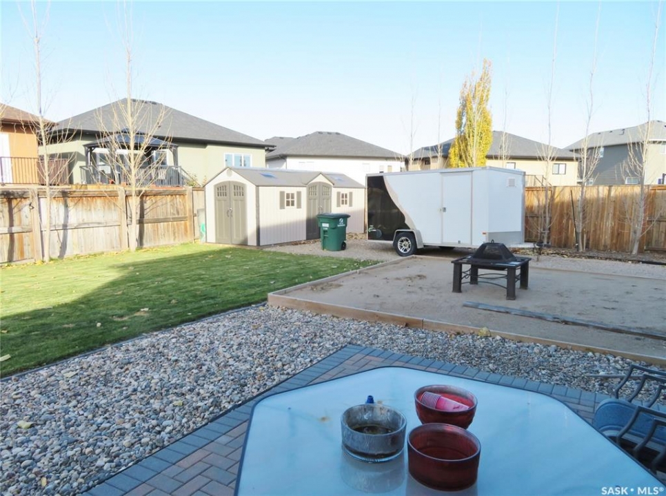 Welcome to 738 Pichler Cove, a beautifully appointed 2,310 sq ft two-storey home nestled on a spacious 9,738 sq ft lot in a quiet cul-de-sac in Rosewood. Just minutes from Swick Park and a short drive to nearby schools, this property offers the perfect blend of comfort, style, and convenience. The main floor features elegant tile and laminate flooring, recessed lighting, and a chef-inspired kitchen with custom Superior cabinetry, soft-close doors, quartz countertops, tile backsplash, stainless steel appliances, a large corner pantry, and a central island with pendant lighting. The dinette opens to a deck overlooking a fully landscaped backyard with an interlocking brick patio and shed. Also on the main level is a bedroom with a 3-piece ensuite featuring a custom 5ft shower, a 2-piece powder room, and a laundry room with washer and dryer. A mudroom connects to the triple attached heated garage, which includes an overhead door to the backyard. Upstairs, you'll find a spacious bonus room perfect for relaxing or entertaining. The primary suite boasts a custom closet with built-in organizers and sliding barn doors, along with a luxurious 4-piece ensuite featuring dual sinks, a large soaker tub, and a custom shower. Two additional bedrooms and a 4-piece bathroom with double sinks complete the upper level. The fully developed basement offers a generous family room, an additional bedroom, a 3-piece bathroom, a wet bar, and ample storage space. Additional amenities include a natural gas BBQ hookup, underground sprinklers, and a quadruple interlocking brick driveway. This home combines thoughtful design with quality finishes, making it a standout in one of Saskatoon's most desirable neighbourhoods. For more information or to schedule a personal viewing, contact your REALTOR � today.