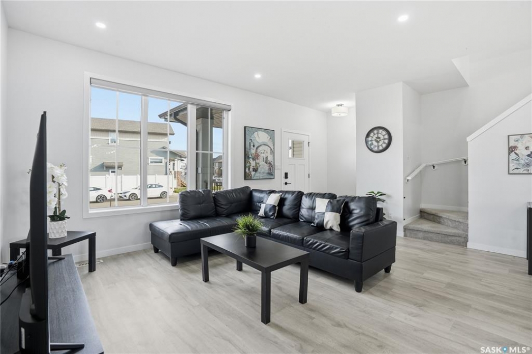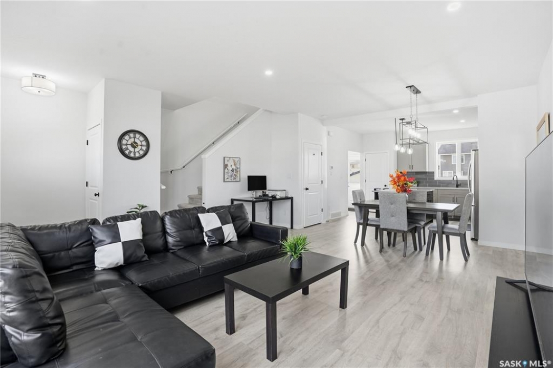 Welcome to 2992 George Street in the ever-growing community of the Towns in East Regina. This townhome built in 2022 offers 1428 sq ft of thoughtfully designed living space, contemporary design, & everyday comfort. Featuring 3 bedrooms, 3 bathrooms, this home is perfect for family living. Built by Pacesetter Homes, this two-storey home exemplifies quality craftsmanship & lovely finishes, including quartz countertops, updated plumbing fixtures, & durable neautral colored laminate flooring. The open-concept main floor provides a natural flow between the entry, living, dining, & kitchen areas, creating an inviting space for both practical and daily living - and so easy for entertaining. With an east/west configuration, the front of the home is bright & illuminates with the morning sunshine. What a wonderful place to relax with a morning coffee. The area continues into a dining area, & the kitchen is equipped with a spacious quartz eat up island, plenty of cabinets, drawers, & appliances (still under warranty until Jan 2026). The back of the home has a functional mudroom, & is complete with the 2 pc main floor bathroom. Upstairs, all three bedrooms are a good size with the primary suite featuring a walk-in closet, & a full bath ensuite. The two additional bedrooms offer ample storage & so much natural light. A second full bathroom & laundry area complete the upper floor. The basement is solid, & ready for future development. Additional highlights include front & back yard landscaping, a fully fenced yard, back parking pad (14x25) making it perfect for a future garage. Built on piles, with floorplans available for the new buyer, this home delivers great value in a family friendly area. This home is close to schools, handfuls of fabulous parks, east end amenities in Acre 21 shopping area for groceries, restaurants, pharmacies, retail shops, coffee shops, & so much more! Flexible possession is available.