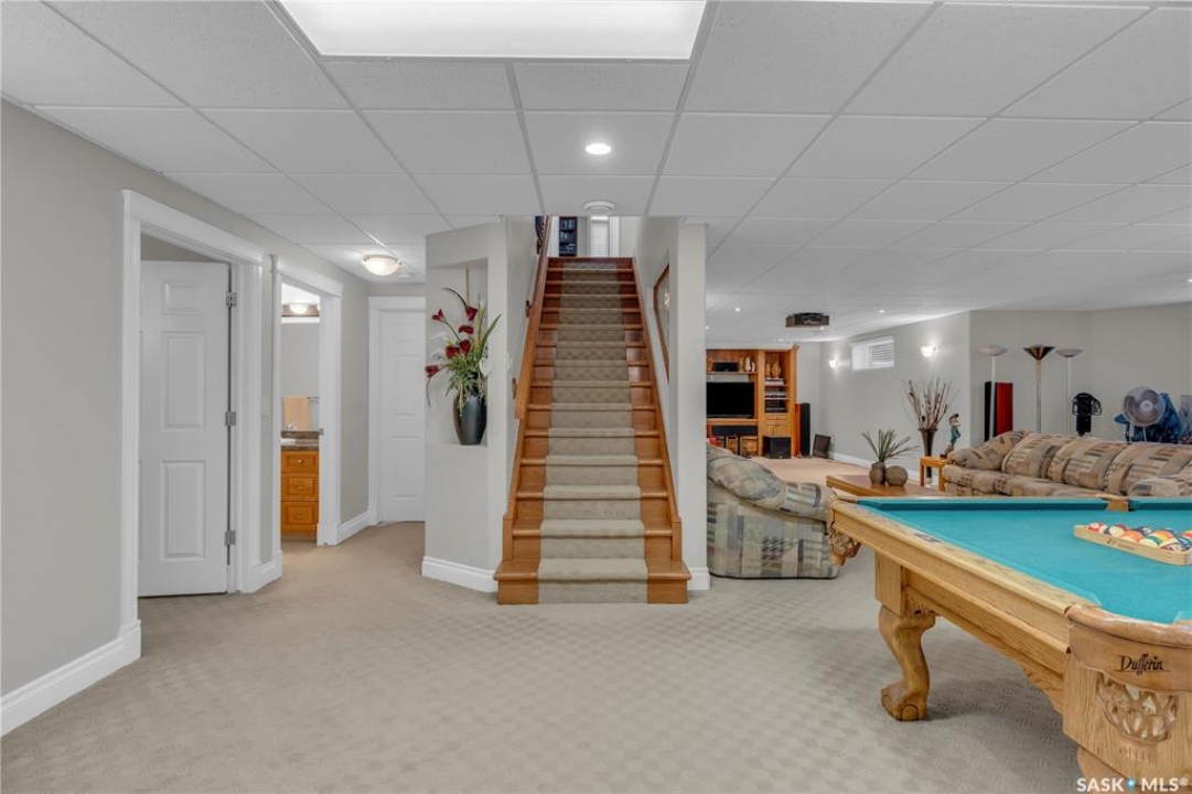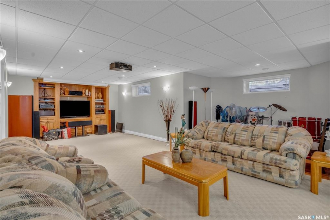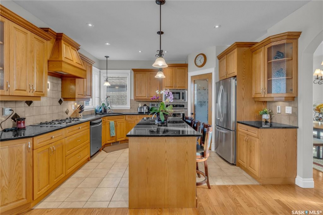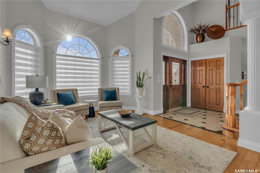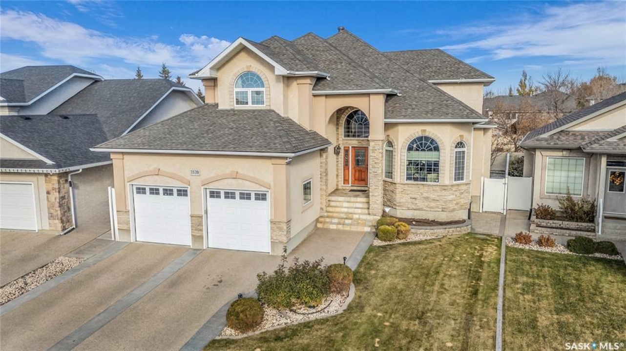 Welcome to this exceptional custom-built Yakobovich two-storey home, offering over 2,800 sq. ft. of meticulously designed living space in the sought-after Lakeridge neighborhood of Regina. With 4 bedrooms, 4 bathrooms, and an array of luxurious features, this home is perfect for families seeking both elegance and comfort. Upon entering, you are greeted by a grand entryway featuring a curved staircase, setting the tone for the sophistication found throughout the home. The main floor boasts a formal living and dining room, ideal for entertaining, along with a dedicated office space for those who work from home. The open-concept family room and dining area, situated off the beautifully appointed kitchen, create a warm and inviting atmosphere for everyday living. The kitchen is a chef's dream, with ample cabinetry, modern appliances, and heated flooring for added comfort. The laundry room is conveniently located on the main floor for easy access. Upstairs, the home features three spacious bedrooms, including a luxurious primary suite with a spa-like ensuite, complete with heated floors for ultimate relaxation. The additional bedrooms are generously sized, providing plenty of space for family members or guests. The fully developed basement includes a fourth bedroom, an additional bathroom, and a versatile recreation area. Designed for durability and peace of mind, the basement floor is heated and supported by engineered piles. Outside, the professionally landscaped yard is a true masterpiece, featuring extensive stonework that enhances the home's curb appeal and provides a serene outdoor retreat. This stunning home combines quality craftsmanship with modern luxury in one of Regina's most desirable communities. Don't miss your opportunity to own this incredible property—schedule your private viewing today!
