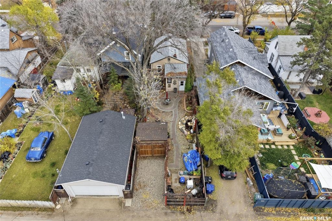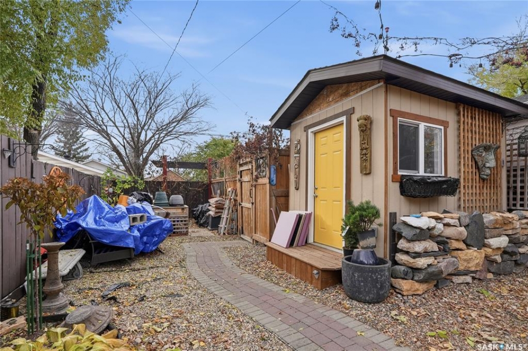 Welcome to 1404 Lorne Avenue, the sweetest little city escape with all the charm you've been dreaming of! This adorable home is full of warmth, style, and thoughtful updates, featuring an airy open-concept layout that feels so much bigger than its 663 sq ft. With newer triple-pane windows, a roof and shingles redone in 2020, updated lighting, and fresh paint throughout, all the work has been done for you. The inviting living space showcases beautiful original hardwood floors in great shape and flows effortlessly into the bright, cheerful kitchen, which has been tastefully updated with newer appliances — the perfect spot to cook, gather, and unwind after a long day. Upstairs you'll find two cozy bedrooms and a well-appointed four-piece bathroom, while the lower level offers a spacious primary bedroom with two egress windows, double closets, and a large laundry, storage, and utility area that keeps everything organized and functional. Step outside and discover your own private backyard oasis — a beautifully landscaped, low-maintenance retreat featuring a tranquil pond, lush vines, garden beds, a brick walkway, sunny deck, and even an electrified shed. There's lane access with parking, too! Perfectly located just steps from the South Saskatchewan River, Victoria Park, and the Meewasin Trail, and close to Broadway, Riversdale's trendy cafés and shops, and great schools, this home lets you enjoy the best of Saskatoon living. Whether you're looking for the perfect starter home or a smart addition to your rental portfolio, 1404 Lorne Avenue is the cozy, stylish retreat you've been waiting for!