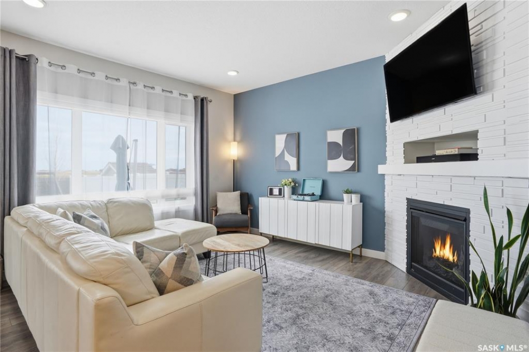 Immaculate 4 Bedroom, 3 Bathroom Two-Storey — Perfectly Designed for Family Living! Welcome to this beautifully maintained and thoughtfully designed two-storey home that checks every box for comfort, style, and functionality. From the moment you step inside, you'll appreciate the bright, open-concept layout and the attention to detail throughout. The heart of the home is the stunning kitchen featuring quartz countertops, modern cabinetry, and a spacious island — perfect for meal prep or casual dining. The kitchen opens seamlessly to the inviting living room with a cozy fireplace & the dining area that overlooks the landscaped backyard, plent of large windows flooding the main floor with natural light. A convenient two-piece bath and laundry room complete the main level. Upstairs, the spacious primary bedroom offers a walk-in closet and a private ensuite for your own retreat. Two additional well-sized bedrooms and a full four-piece bathroom complete the upper level, providing plenty of space for the whole family. The professionally developed basement is a true bonus — featuring a large rec room, a fun children's play nook under the stairs, a fourth bedroom, and room for a future bathroom. The Dricore subfloor adds warmth and comfort to the space, making it perfect for year-round enjoyment. Step outside to your private backyard oasis, complete with a two-tiered deck, natural gas BBQ hookup, a newer hot tub, and a play structure for the kids — all overlooking Saskatchewan's stunning prairie views. Additional highlights include: Heated, fully insulated garage, Zero-scaped front yard for low-maintenance living, High-efficiency furnace, HRV system, owned water heater and central air conditioning, Rip radon mitigation system, Remaining warranties for peace of mind Walking distance to schools, parks, bus stops, and amenities! This home has been cared for with pride and is move-in ready — the perfect blend of warmth, practicality, and style.