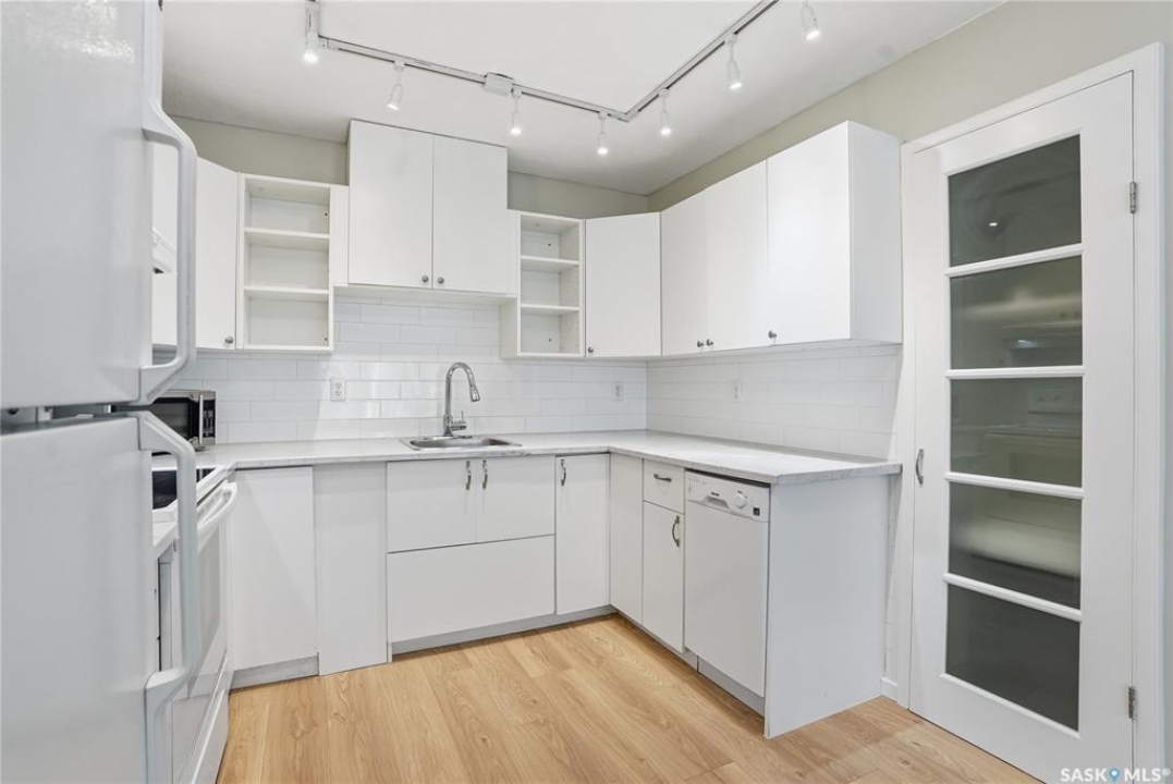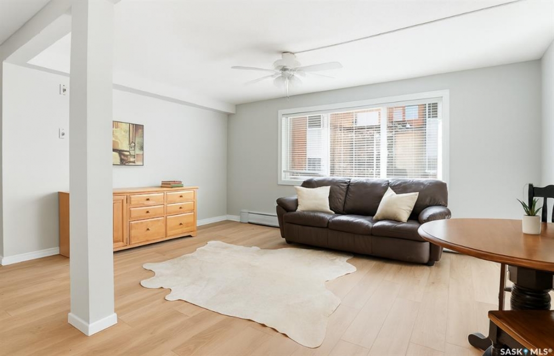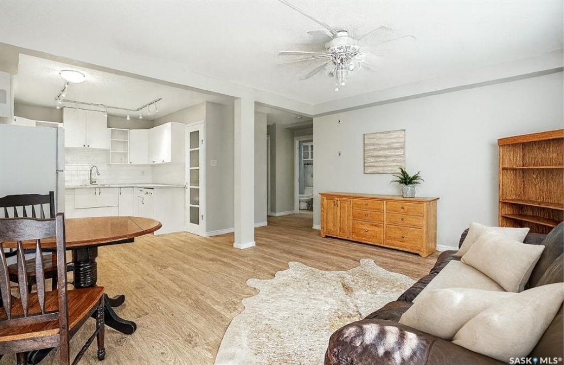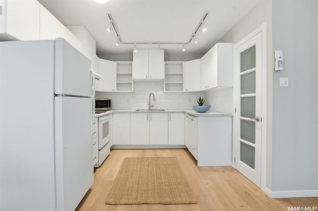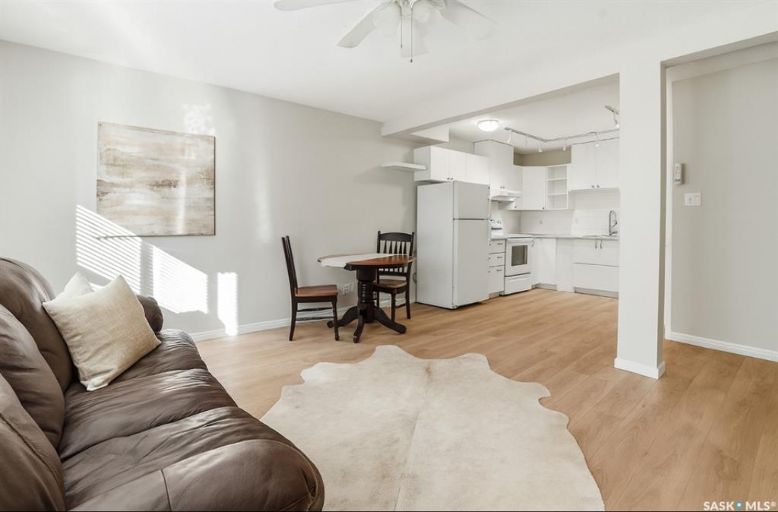 This freshly renovated, bright and charming 1-bedroom, 1-bathroom condo in Eastview is perfect for a first-time home buyer or investor. This unit has fresh vinyl plank flooring and paint, it is fresh as a daisy! Located on the quiet ground floor, it features a spacious living room with a large picture window that lets in loads of natural light, connecting to an open kitchen and dining area with updated white cabinets, subway tile backsplash, a pantry, and included appliances. The bedroom is a comfortable size with a large closet, and the bathroom has been refreshed with a newer vanity and flooring. Enjoy the convenience of in-suite laundry, storage anrea and an updated entryway closet. The building is pet-friendly (with Board approval) and had roof work completed in 2020. Close to parks, schools, bus routes, and all the amenities of Eastview, this condo is a great place to call home!