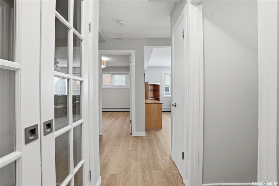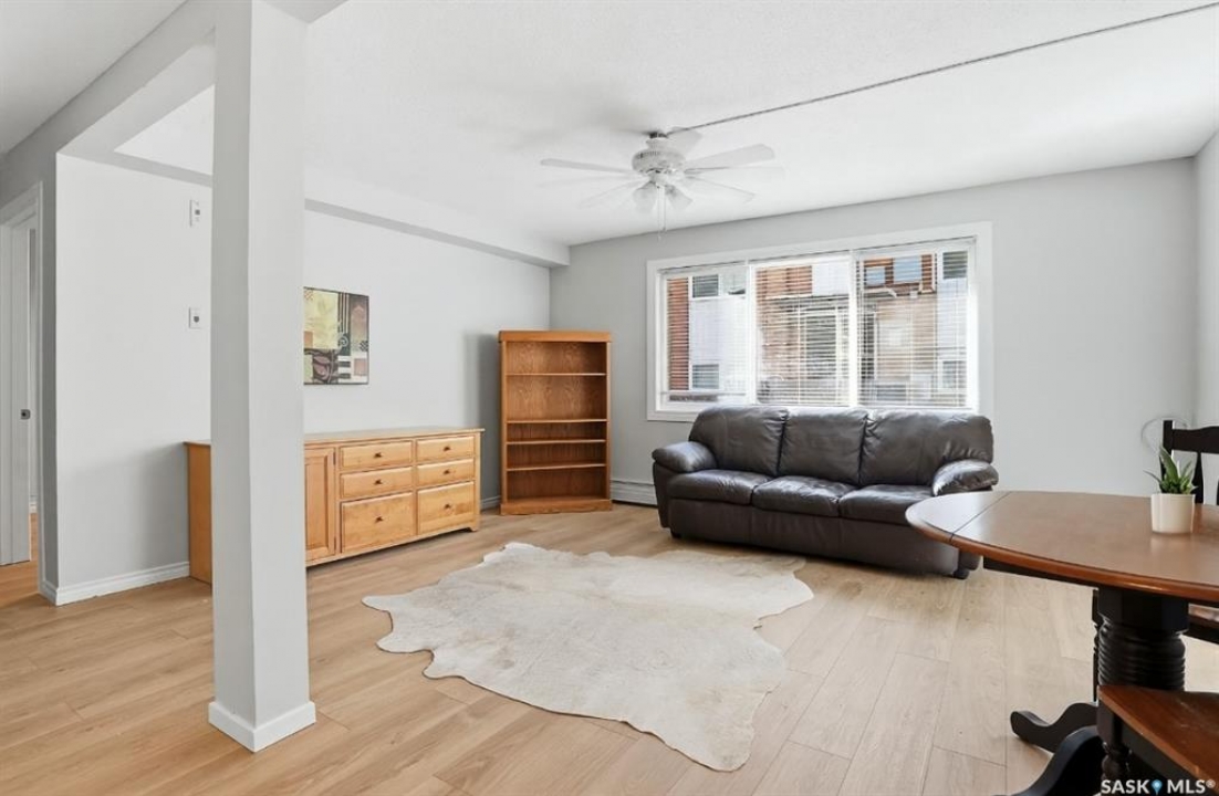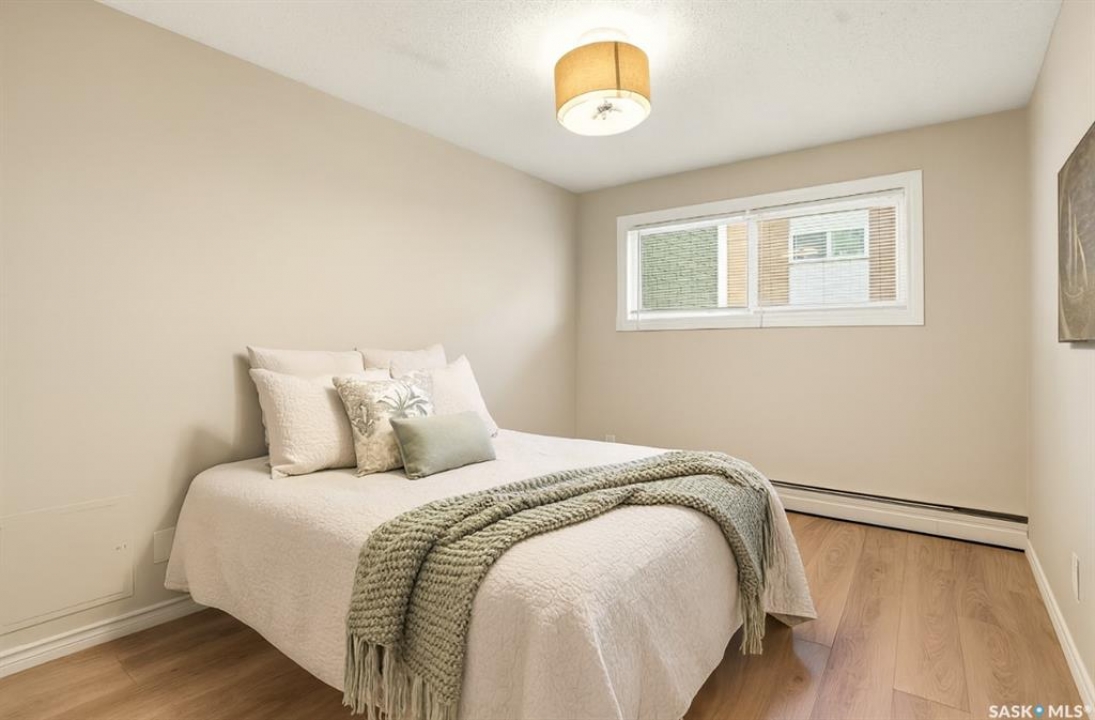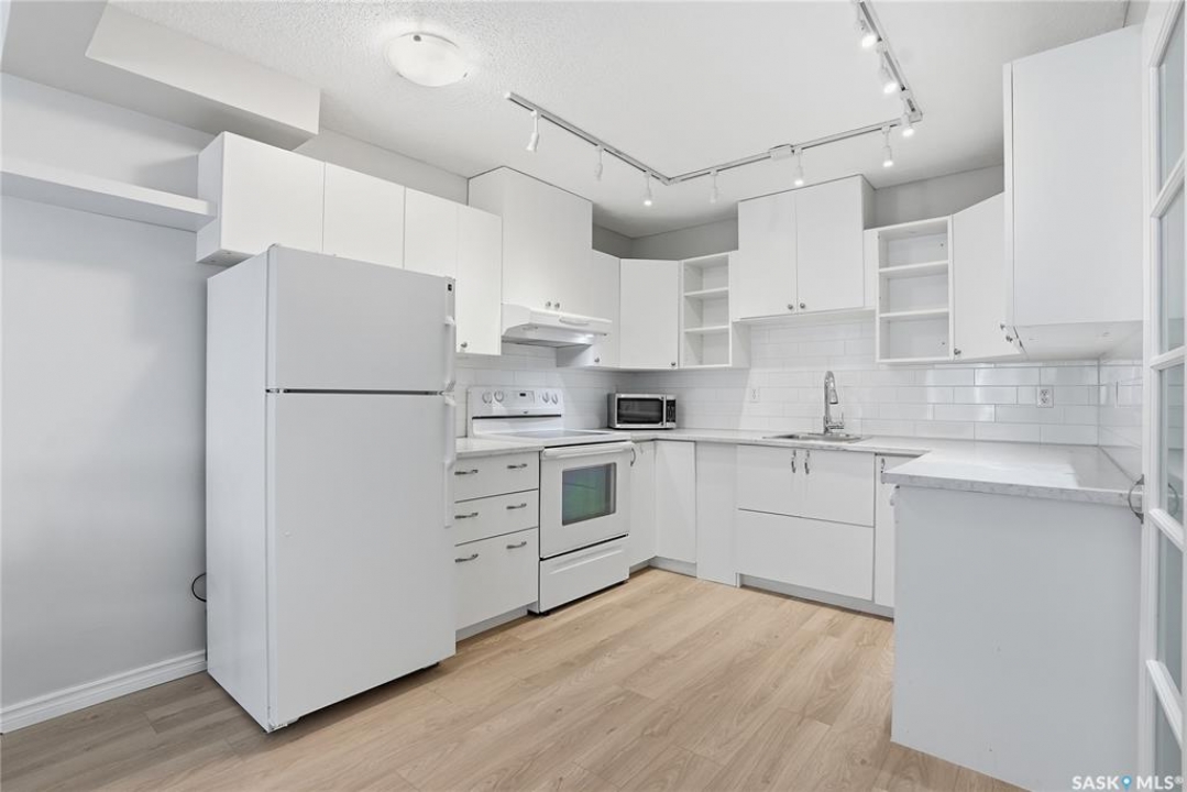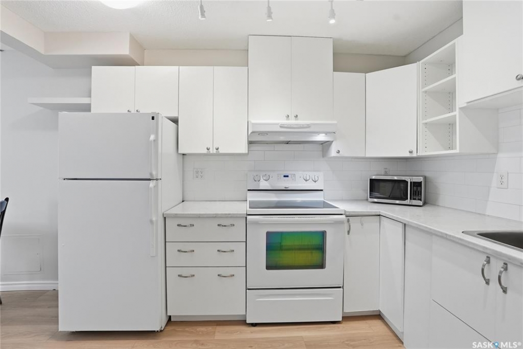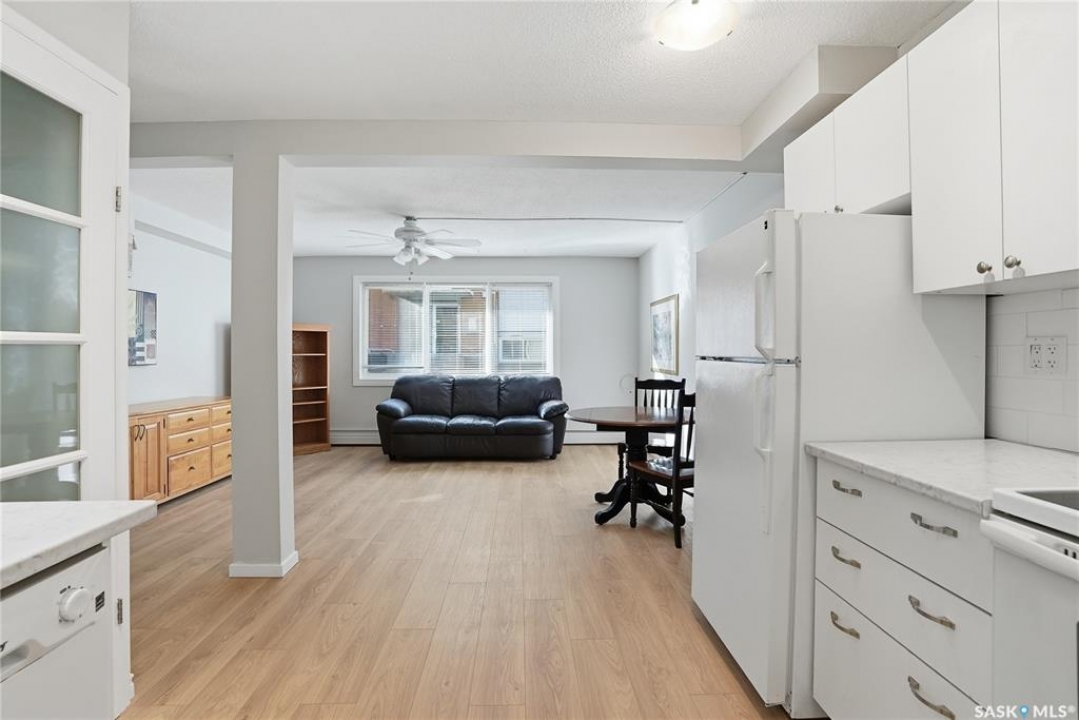 This freshly renovated, bright and charming 1-bedroom, 1-bathroom condo in Eastview is perfect for a first-time home buyer or investor. This unit has fresh vinyl plank flooring and paint, it is fresh as a daisy! Located on the quiet ground floor, it features a spacious living room with a large picture window that lets in loads of natural light, connecting to an open kitchen and dining area with updated white cabinets, subway tile backsplash, a pantry, and included appliances. The bedroom is a comfortable size with a large closet, and the bathroom has been refreshed with a newer vanity and flooring. Enjoy the convenience of in-suite laundry, storage anrea and an updated entryway closet. The building is pet-friendly (with Board approval) and had roof work completed in 2020. Close to parks, schools, bus routes, and all the amenities of Eastview, this condo is a great place to call home!