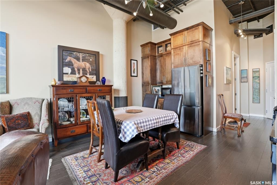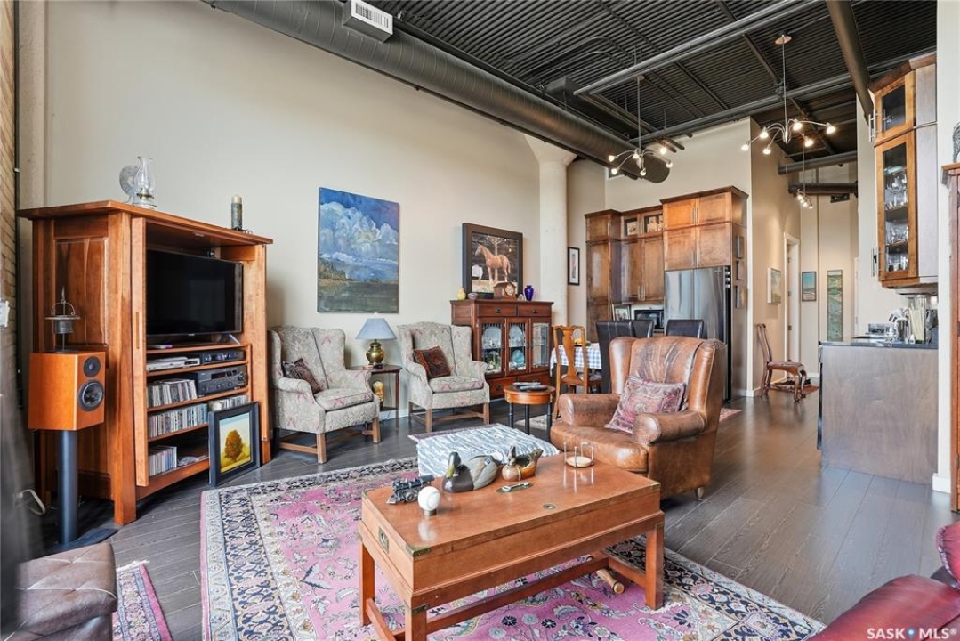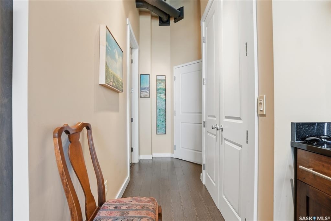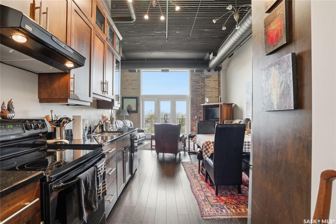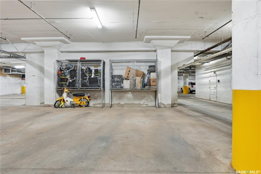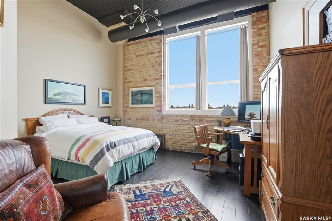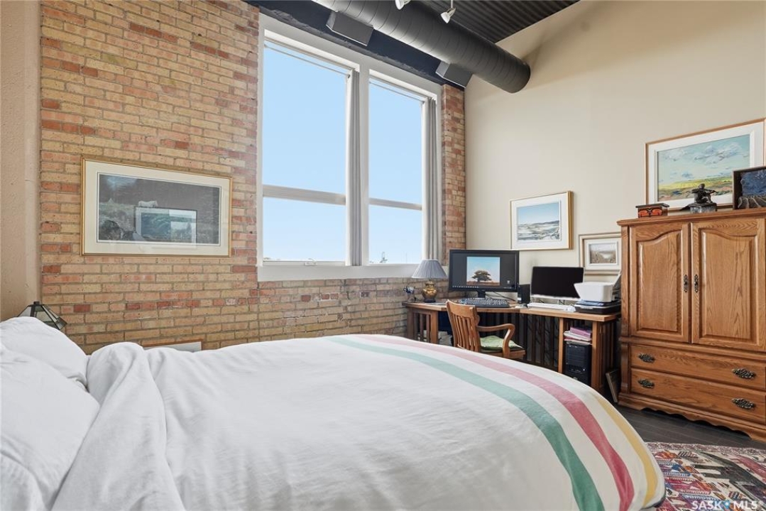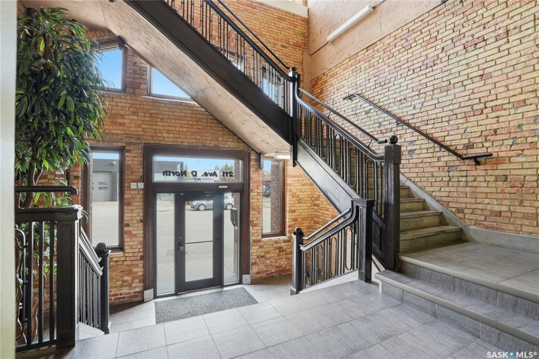Experience the character and charm of Caswell Hill in this truly one-of-a-kind condo. Perfectly located across from local favorite The Night Oven Bakery and the new Caswell Bus Barns Arts and Culture Hub, this home blends heritage style with modern living. The open-concept layout features a spacious living area framed by northwest-facing windows that flood the space with natural light and showcase Saskatoon's vibrant living skies. With one bedroom, one bathroom, exposed original brick, and thoughtful storage throughout, this condo offers both comfort and personality in one of the city's most exciting and creative neighbourhoods. There is an elevator, exercise room and two parking spaces included—one in a heated underground garage and one surface stall—offering convenience all year round.