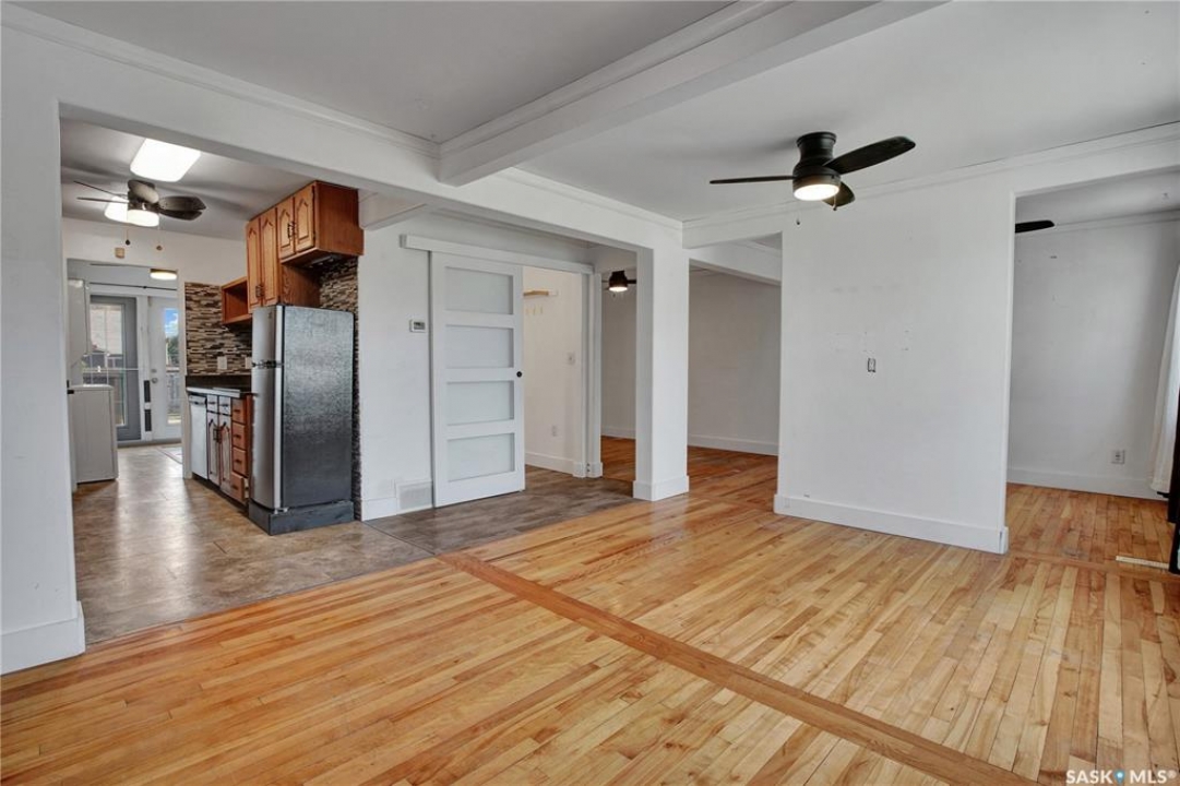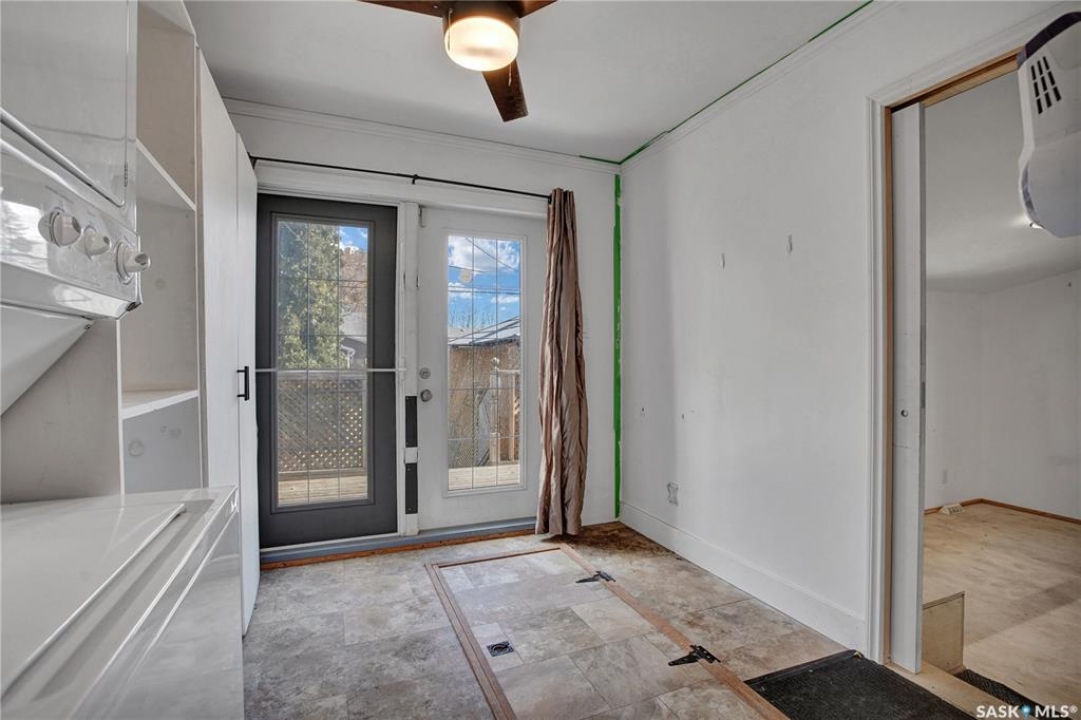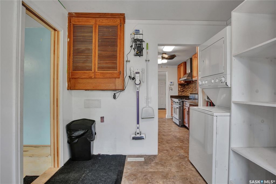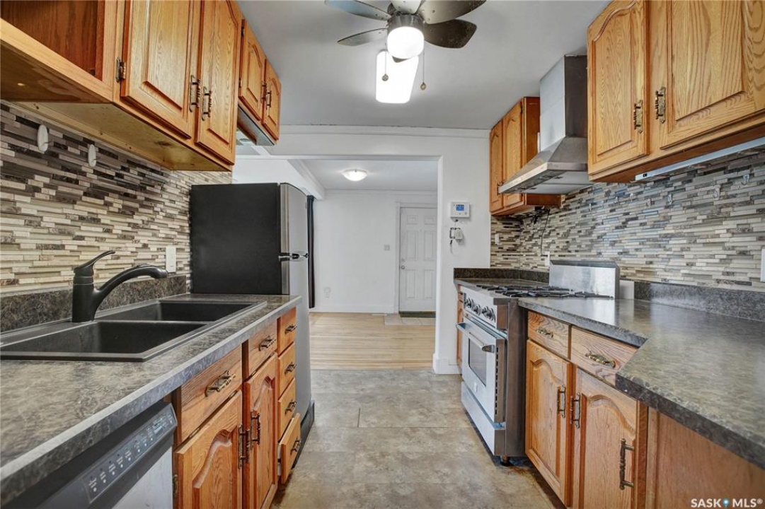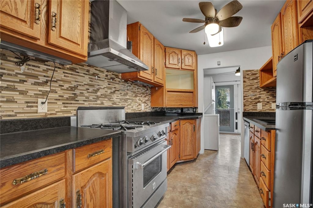 Welcome to the ultimate bachelor pad located on a quiet street in the mature King George! Enter a spacious living room with a view of the upgraded kitchen, and direct access to the oversized bedroom that could easily accommodate two. The bedroom leads to a sunken porch with direct access to the attached garage. From there you can enter the laundry/mudroom, which is loaded with countertop workspace, open shelving, and more upper/lower cabinetry. From there you can exit into the backyard or circle back to the kitchen. The kitchen has tall custom cabinetry, tile backsplash, a gas range, a black finish sink, and all stainless-steel appliances including a new fridge. The backyard is massive due to the large lot size. It boasts an antique commercial-style meat smoker, oversized deck, patio, shed, gazebo, flower beds, cement walking paths, and mature trees - perfect for BBQ's! The garage is fully finished, extra deep, and heated with a brand-new garage door. The bathroom was also fully upgraded in the last five years. The house is located with quick access to 11th Street for a Circle Drive exit. Other recent upgrades include paint, flooring, and doors. Book your showing to own your own domain!