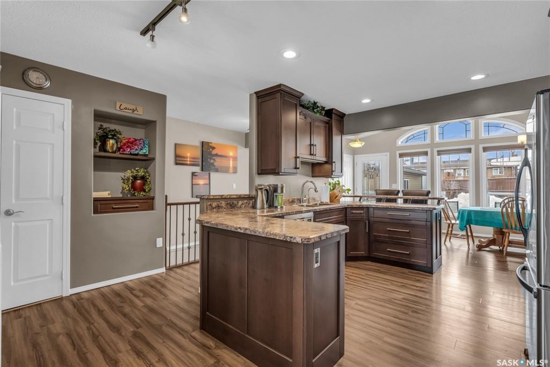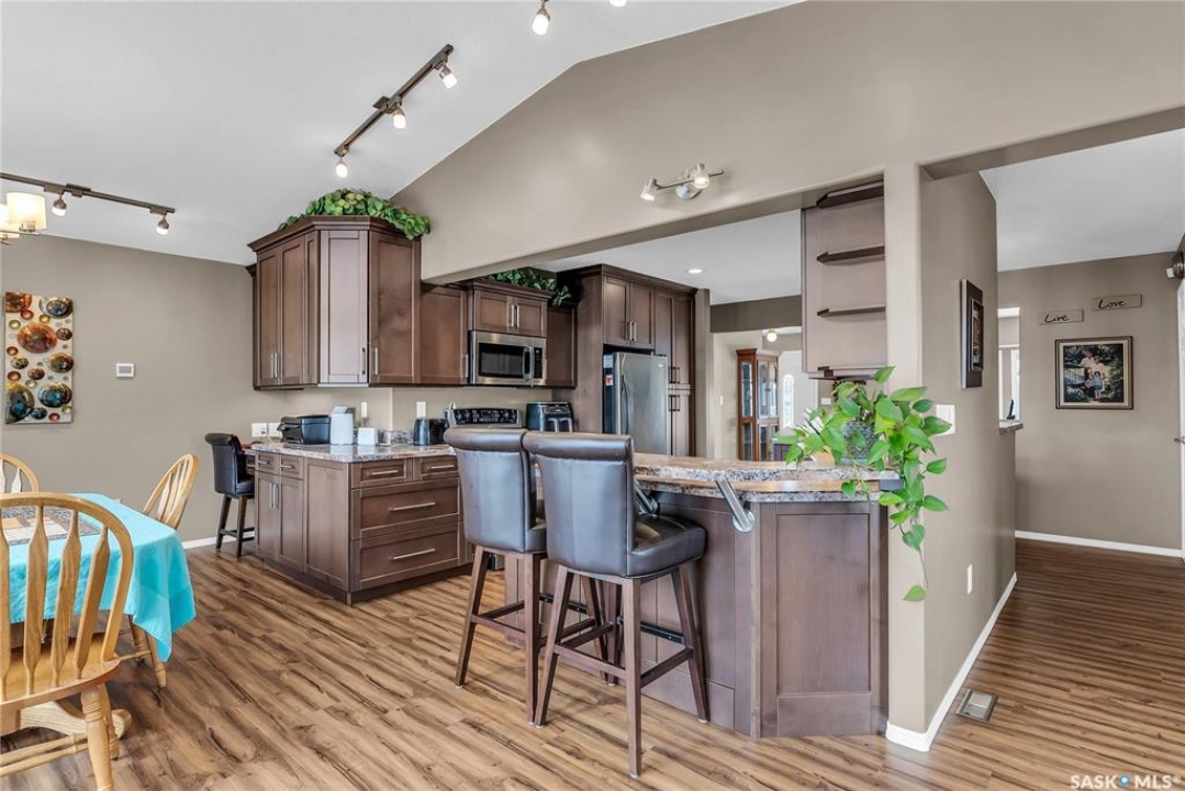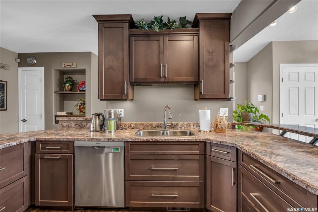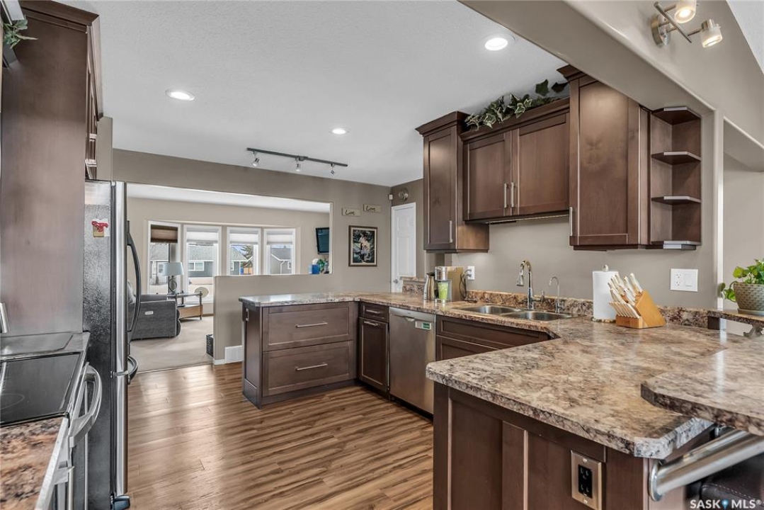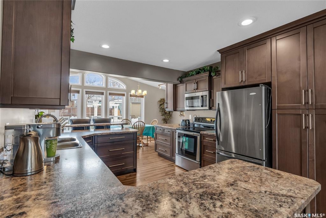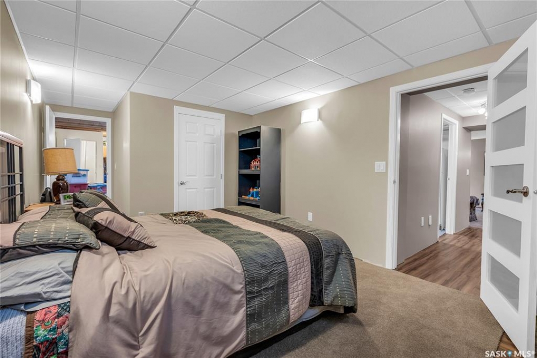 Stunning Renovated Bungalow in Biggar, SK! This beautifully updated 1,500 sq. ft. bungalow offers modern comfort with a vaulted ceiling, open-concept main floor, and a chef's kitchen featuring ample counter space and energy-efficient appliances. The main floor includes three bedrooms, with a primary suite boasting a 3-piece ensuite and three large closets, a spa-like main bath with a soaker tub, and convenient main-floor laundry. The fully finished basement expands your living space with a huge family room, an additional bedroom, a full bath, and ample storage. Recent upgrades include a new air conditioner (2022), furnace (2012), hot water heater (2021), and 30-year shingles (2012). Outside, enjoy a two-tiered front lawn with perennials, a double detached heated garage, repaved driveway, and gravel RV storage. There is also a nice sized garden shed and the home owners have a Generac to power the house in case of power outages! Located in a wonderful community near schools, parks, and amenities, this home is a must-see—schedule your showing today!