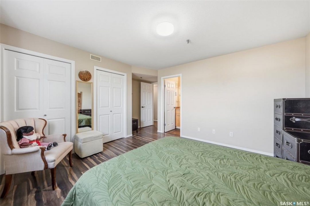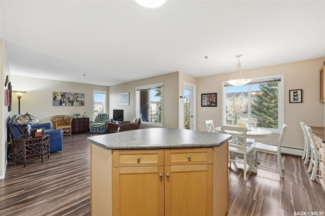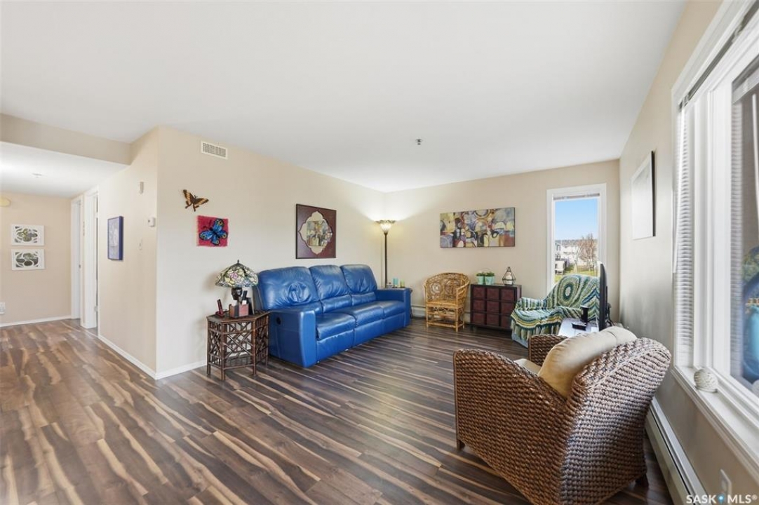 Discover this bright and inviting corner unit in the heart of Lakewood, offering more natural light, privacy, and comfort than most units. Featuring two generously sized bedrooms, the primary includes a three-piece ensuite with the potential for double sinks (the second sink is already roughed in). The open-concept floor plan connects the kitchen, complete with added pantry storage and a built-in desk area, to the dining and living room, creating a warm and functional space for entertaining or relaxing. Bedrooms and bathrooms are thoughtfully tucked away from the main living area, providing privacy. Enjoy your morning coffee or evening unwind on the east-facing balcony, perfect for catching the sunrise. This unit also features in-suite laundry, a convenient storage room, and, rare for condos, central air conditioning throughout. Beyond the unit, the building offers a welcoming community with a coffee/social room, exercise area, and BBQ patio overlooking the lake. Step outside to explore beautiful walking paths connecting to Lakewood, Rosewood, and Heritage neighbourhoods, some of the city's best! This pet-friendly building (up to 40 lbs) also includes one electrified surface parking stall. A rare blend of comfort, convenience, and natural light, don't miss your opportunity to call this corner condo home! Call TODAY to book your next showing!