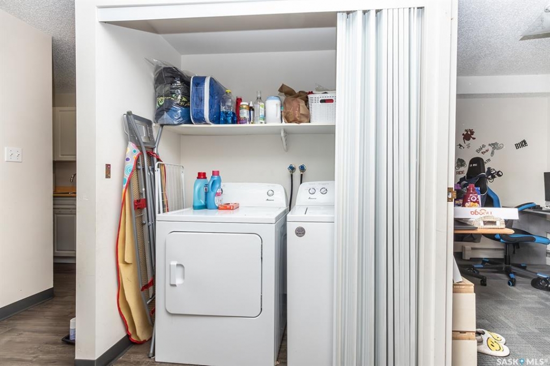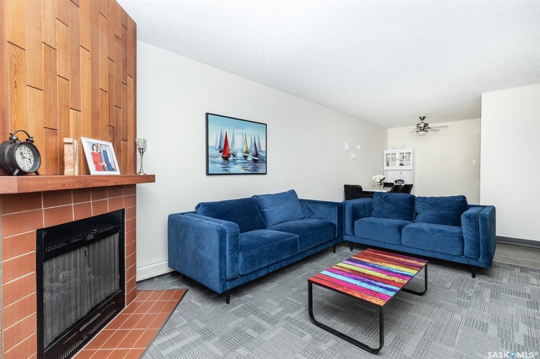Rare opportunity to own a 3-bedroom main floor unit in this well-maintained complex with bus stop close by. This home has undergone extensive updates over the past four years, including new flooring and baseboards throughout, upgraded appliances such as fridge, stove, washer, dryer, range hood, and built-in dishwasher, a wall-mounted air conditioner, and refreshed lighting in the kitchen. The bathroom features a new sink, new bathroom mirror with storage, updated tub and shower faucets, and a new shower head, while the kitchen has also been updated with a new faucet. All 3 bedrooms have new blinds. The cozy living room has an electric fireplace for those chilly winter evenings. The unit offers the convenience of in-suite laundry and a spacious exterior storage area on the ground level patio, ideal for storing bikes and seasonal items. The partially fenced patio provides privacy and a comfortable outdoor space. Located directly across from the recreation building, you will enjoy access to a lounge, pool table, exercise area, and squash/racquetball court—perfect for year-round enjoyment. Additional parking space can be rented for $25 a month