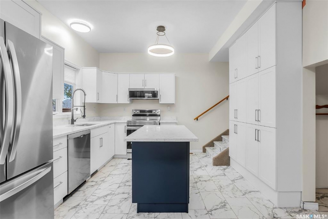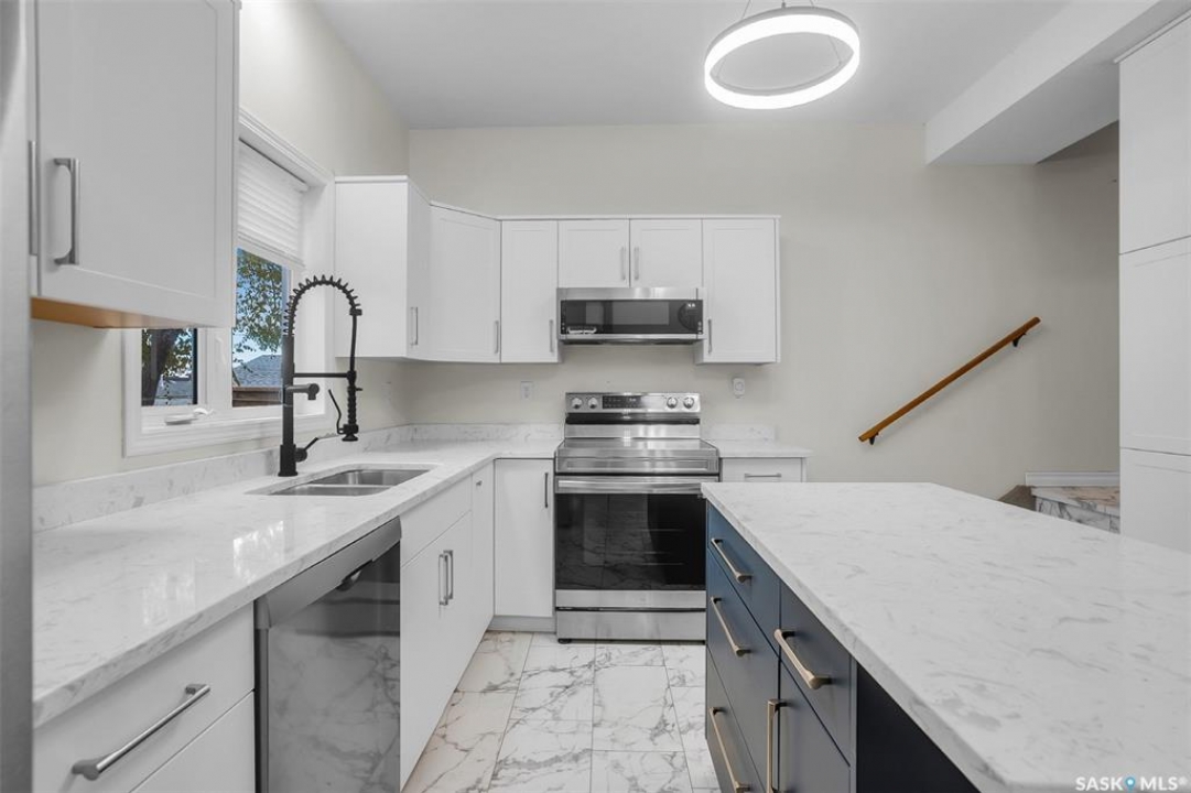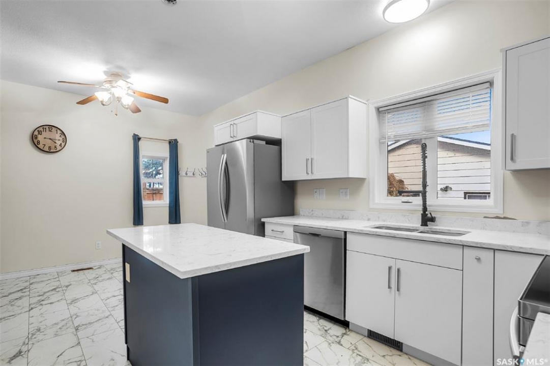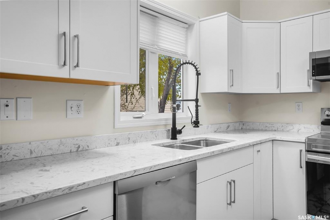 Welcome to 1512 7th Avenue N – North Park Charm with Modern Style! This beautifully updated 1,217 sq ft home offers a fantastic layout and a long list of upgrades in one of Saskatoon's most desirable neighbourhoods. Step into the gorgeous new kitchen with a centre island, modern cabinetry, and appliances that are just 1 year old — perfectly designed for cooking and entertaining. Featuring three bedrooms plus a walk-through den on the main floor, this home provides flexible space for family, guests, or a home office. You'll also appreciate the convenience of main floor laundry and two refreshed bathrooms. Peace-of-mind improvements include all new mechanical, newer flooring, and updated windows throughout portions of the home. The backyard offers a huge perk — no neighbours directly behind, as it backs onto the school and open green space. A double detached garage adds secure parking and storage. Virtual tour available. Modern updates, a functional layout, and a prime North Park location — this home is truly a standout and ready for its next owners!