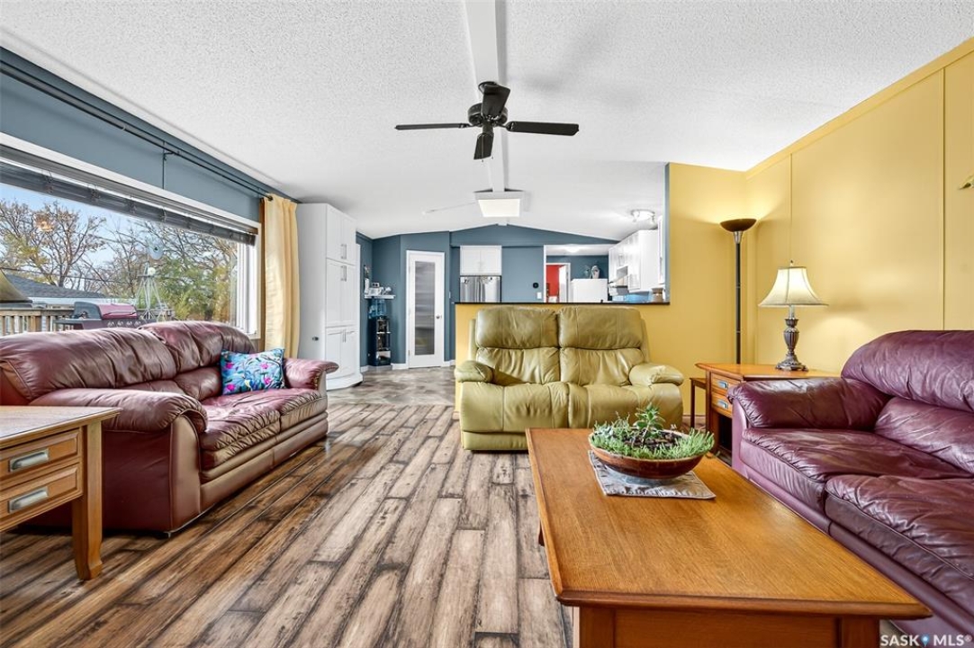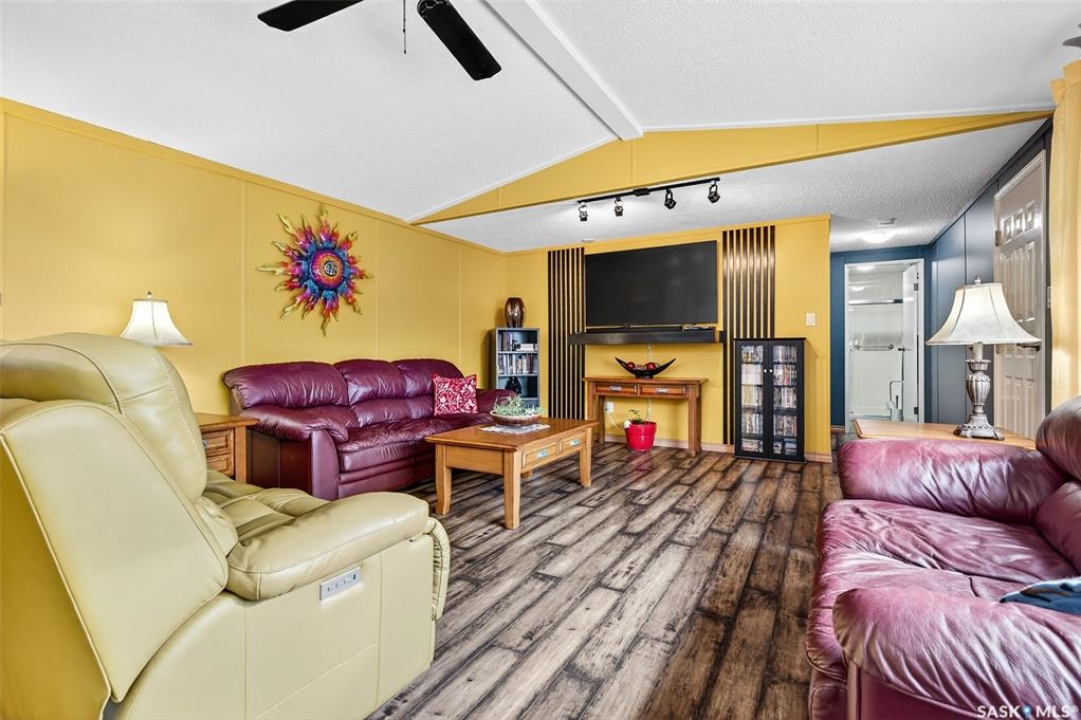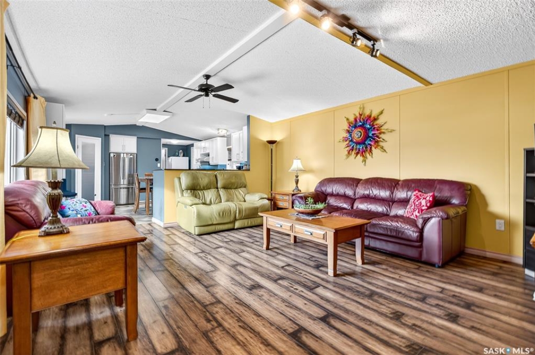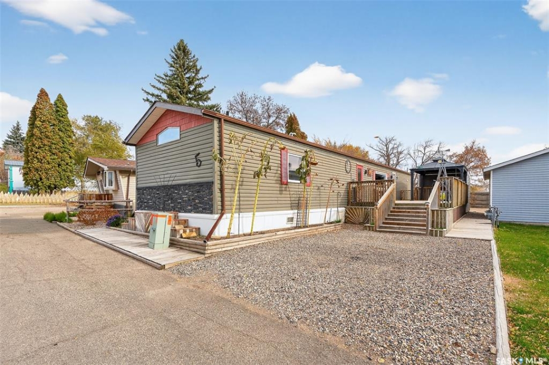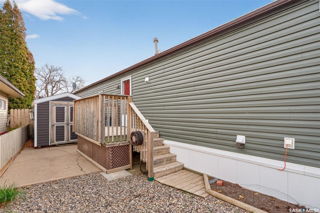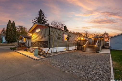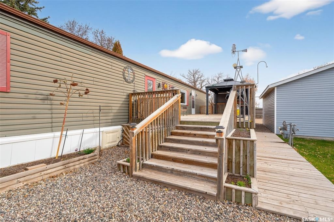 Pride of ownership shows in this modular home located at the Trans Canada Trailer Park. Entering into the spacious and beautifully renovated kitchen and dining area you will find ample cupboard and counterspace with a large walk-in pantry. There is also a built in storage cabinet that is a nice addition for more storage if needed. The large and bright living room has laminate flooring and acoustic accents on the TV wall as well as a 2nd door to access the outside deck area. Just past the living room you will find a large 2nd bedroom perfect for a kids room or company if you're empty nesters with convenient 3pc bathroom right beside. At the opposite end there is a 3rd door to another quaint deck. Your Master Bedroom that is large enough to host a king suite and has a spacious ensuite with large soaker tub & vanity area with unique lighting. This space also hosts your laundry area with even more storage and portable counter that is the perfect place for folding. Outside you can enjoy the large 16x34 deck with a secured 10x12 hard top gazebo perfect for enjoying on those sunny days. Off the back of the deck there is one of 2 durable sheds that have plywood flooring for your outdoor storage. On the other side, where the smaller deck is located, is the second shed. This is a great property at any stage in life. Set up your personal viewing of this home today!