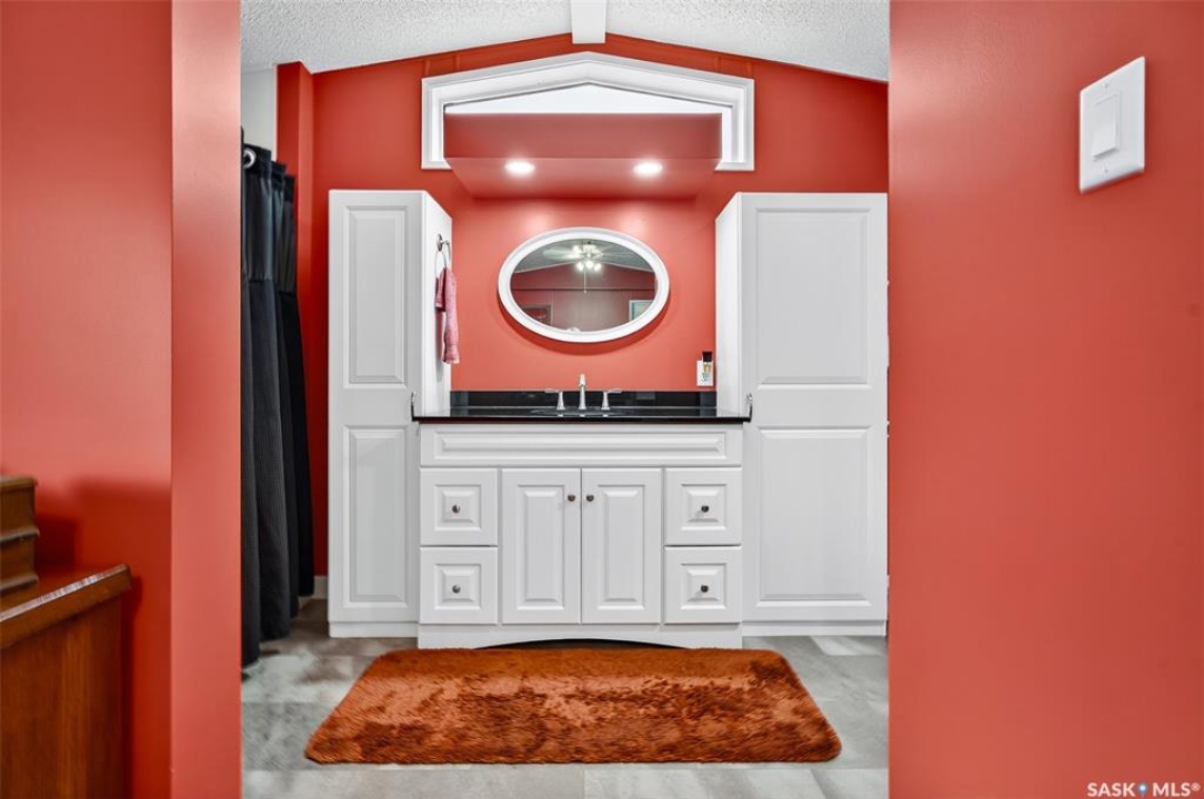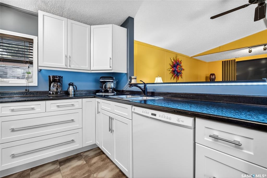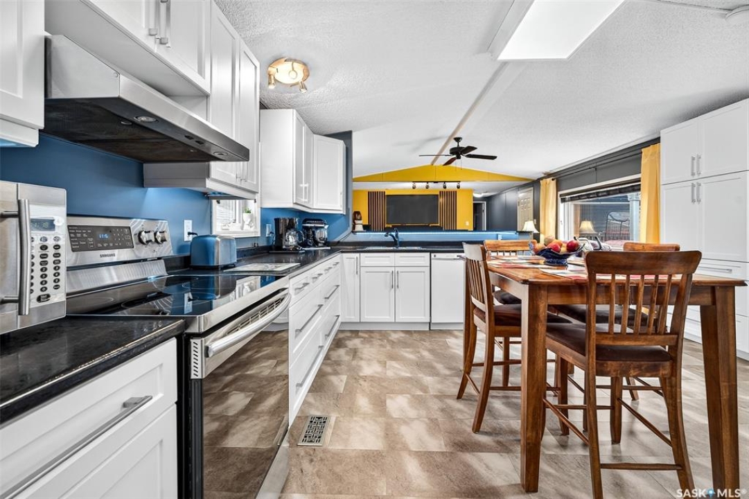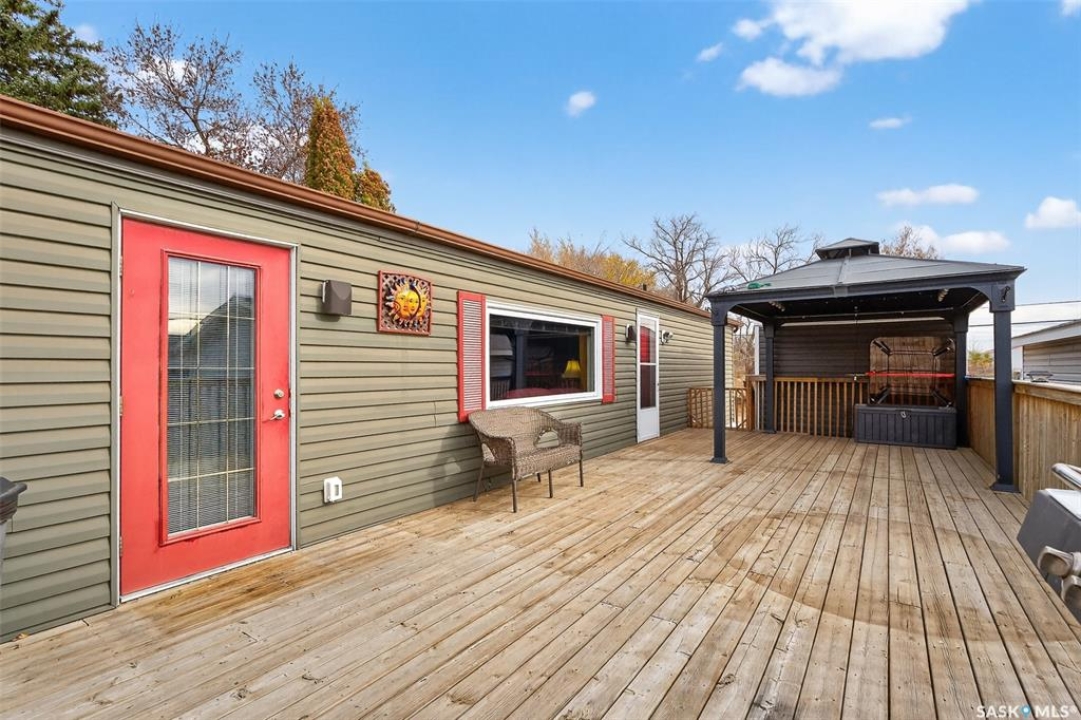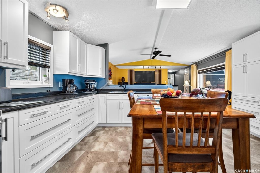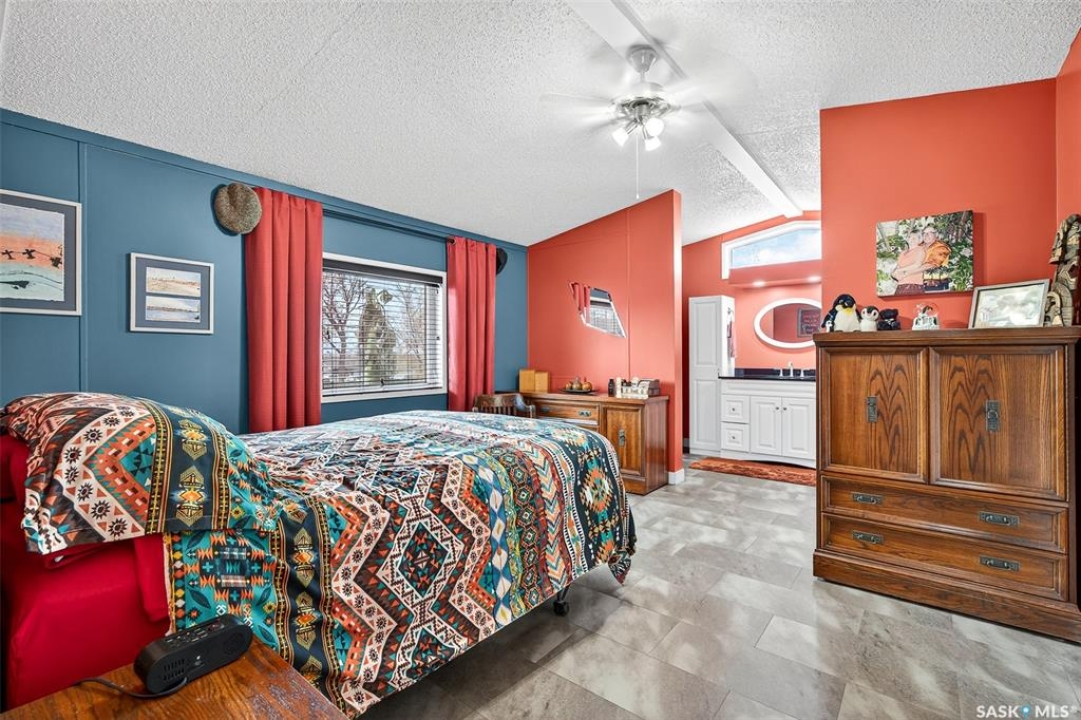 Pride of ownership shows in this modular home located at the Trans Canada Trailer Park. Entering into the spacious and beautifully renovated kitchen and dining area you will find ample cupboard and counterspace with a large walk-in pantry. There is also a built in storage cabinet that is a nice addition for more storage if needed. The large and bright living room has laminate flooring and acoustic accents on the TV wall as well as a 2nd door to access the outside deck area. Just past the living room you will find a large 2nd bedroom perfect for a kids room or company if you're empty nesters with convenient 3pc bathroom right beside. At the opposite end there is a 3rd door to another quaint deck. Your Master Bedroom that is large enough to host a king suite and has a spacious ensuite with large soaker tub & vanity area with unique lighting. This space also hosts your laundry area with even more storage and portable counter that is the perfect place for folding. Outside you can enjoy the large 16x34 deck with a secured 10x12 hard top gazebo perfect for enjoying on those sunny days. Off the back of the deck there is one of 2 durable sheds that have plywood flooring for your outdoor storage. On the other side, where the smaller deck is located, is the second shed. This is a great property at any stage in life. Set up your personal viewing of this home today!