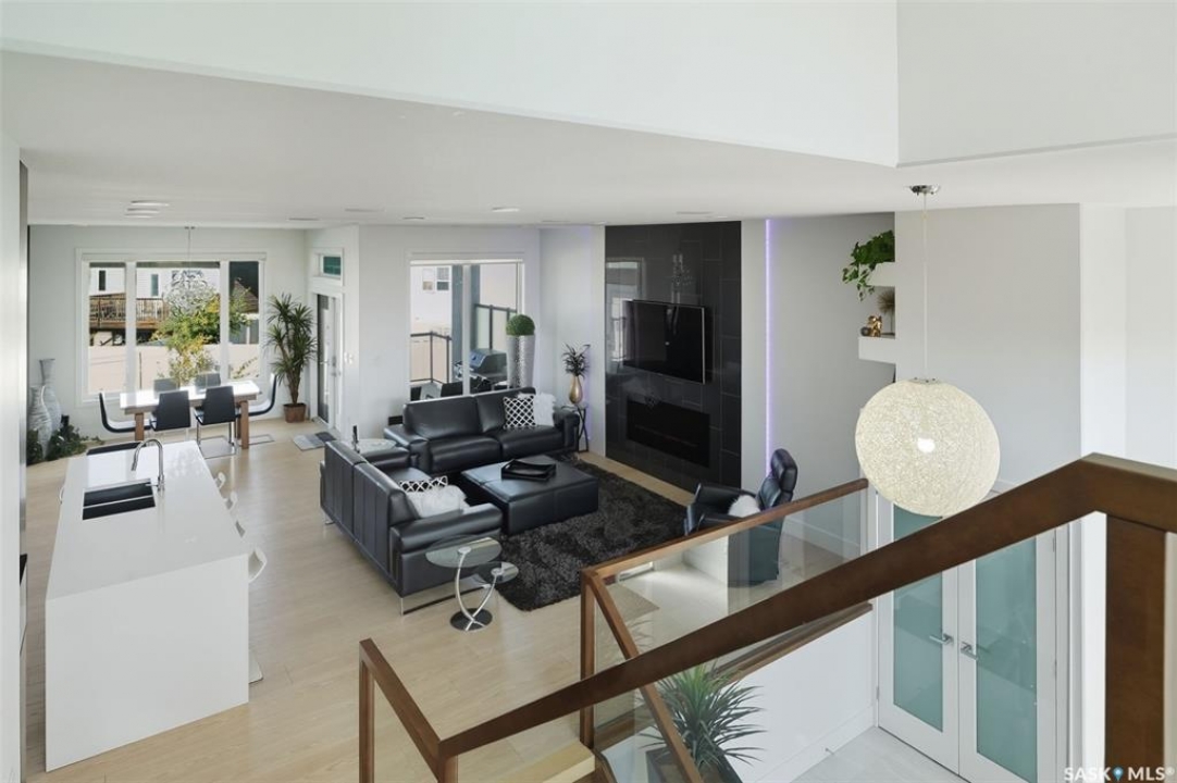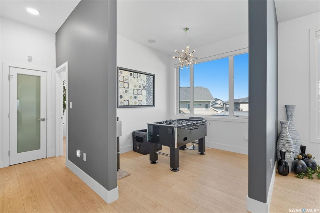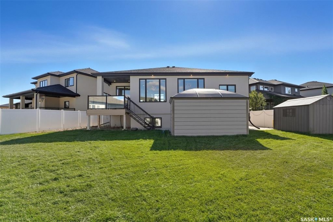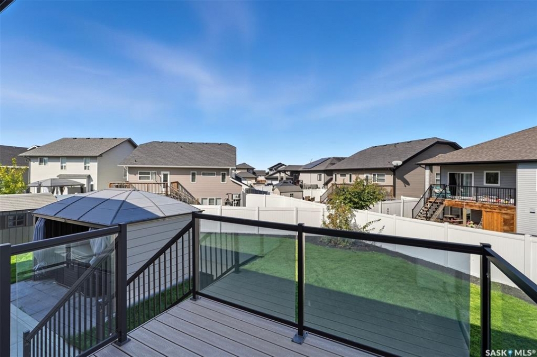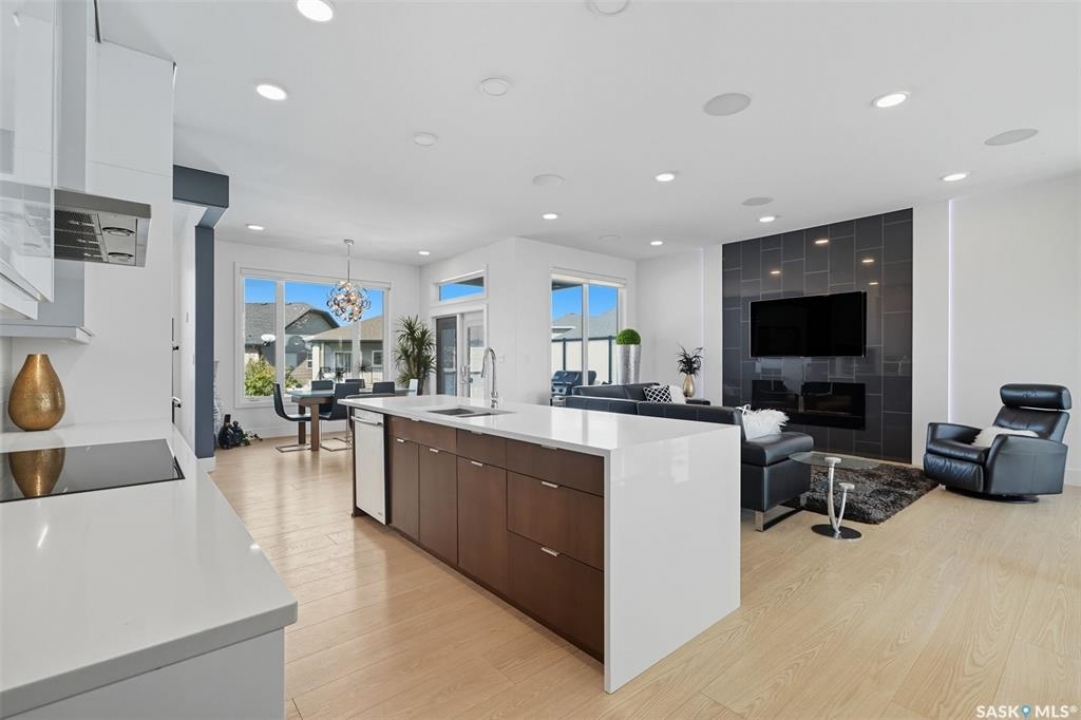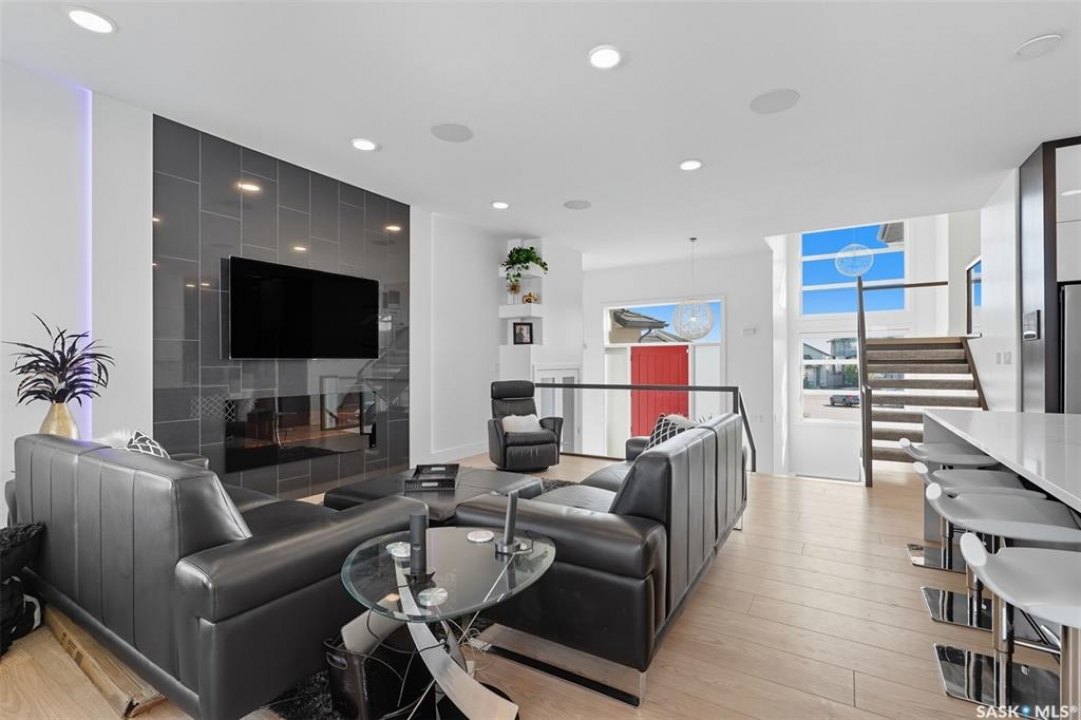 This beautiful 2097 Sq Ft Modified bungalow stands majestically in Rosewood with curb appeal to spare. Walking through the trendy red door, you will enter a spacious foyer just steps up to the main floor. The open concept living space is welcoming with laminate flooring and an electric fireplace to keep you warm on those long cold nights. Visit with company while cooking or catch up with the kids at the kitchen island with seating. The dining room is close by and there is a cozy den just off the kitchen. Floor to ceiling cabinetry in the kitchen adds to the openness of the room. There is a 2 pc bath for convenience and a mudroom for added storage. There is a patio door to the maintenance free deck with glass panels leading to a small patio. On the 2nd floor you will find a Primary bedroom with walk in closet and 5 pc en-suite, 2 more bedrooms and a 4 pc bath as well as laundry. The windows are large and let in tons of light. The basement is unfinished - let your imagination run wild! Will it be a man cave? Home gym? Rec room for the kids? Your own private movie theatre? The possibilities are endless. This home has a Savant Control system - control, lighting, music, locking/unlocking doors remotely, etc. Fully programmable to do whatever you desire. Current settings include colour changing lights behind the tv's in 2 kids rooms, music anywhere in the house and timed automatic door locking.