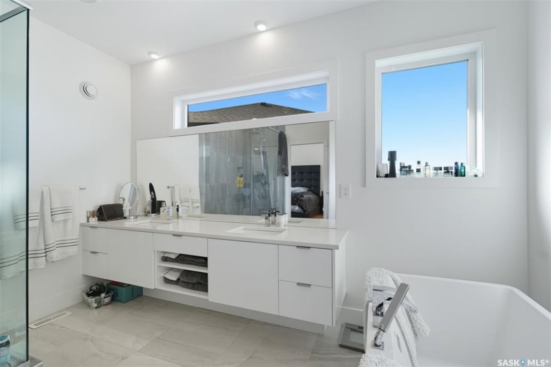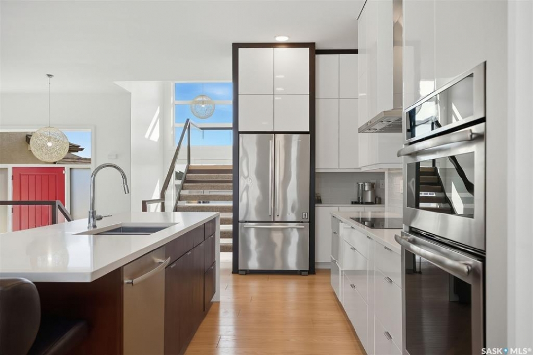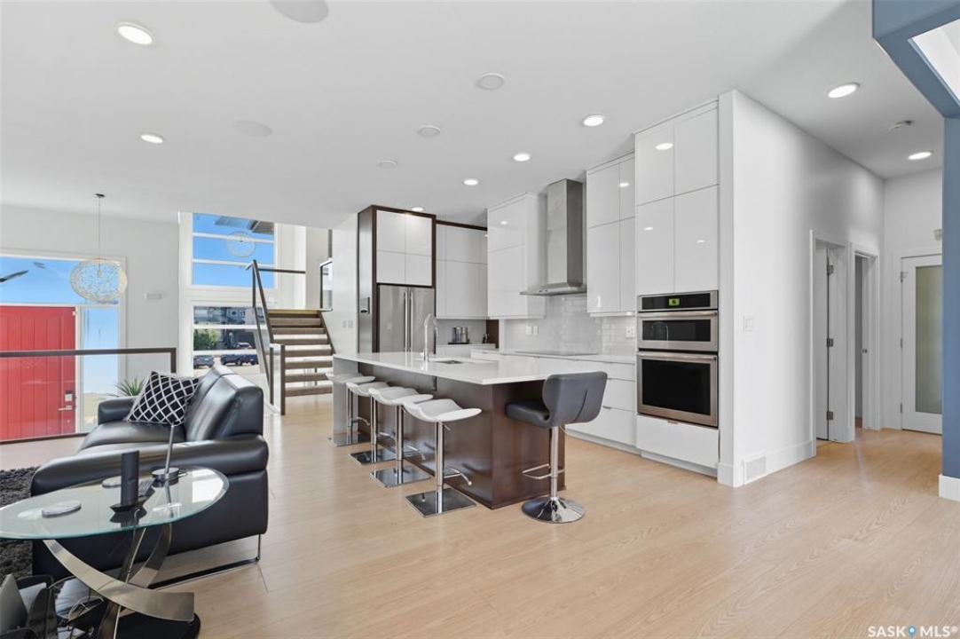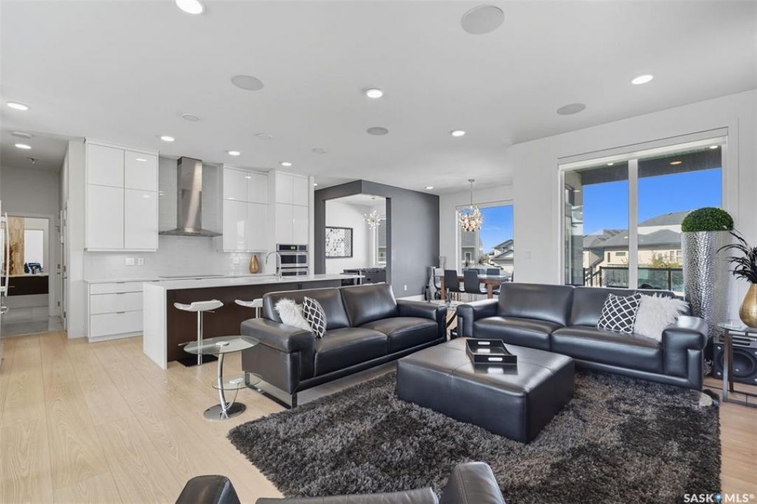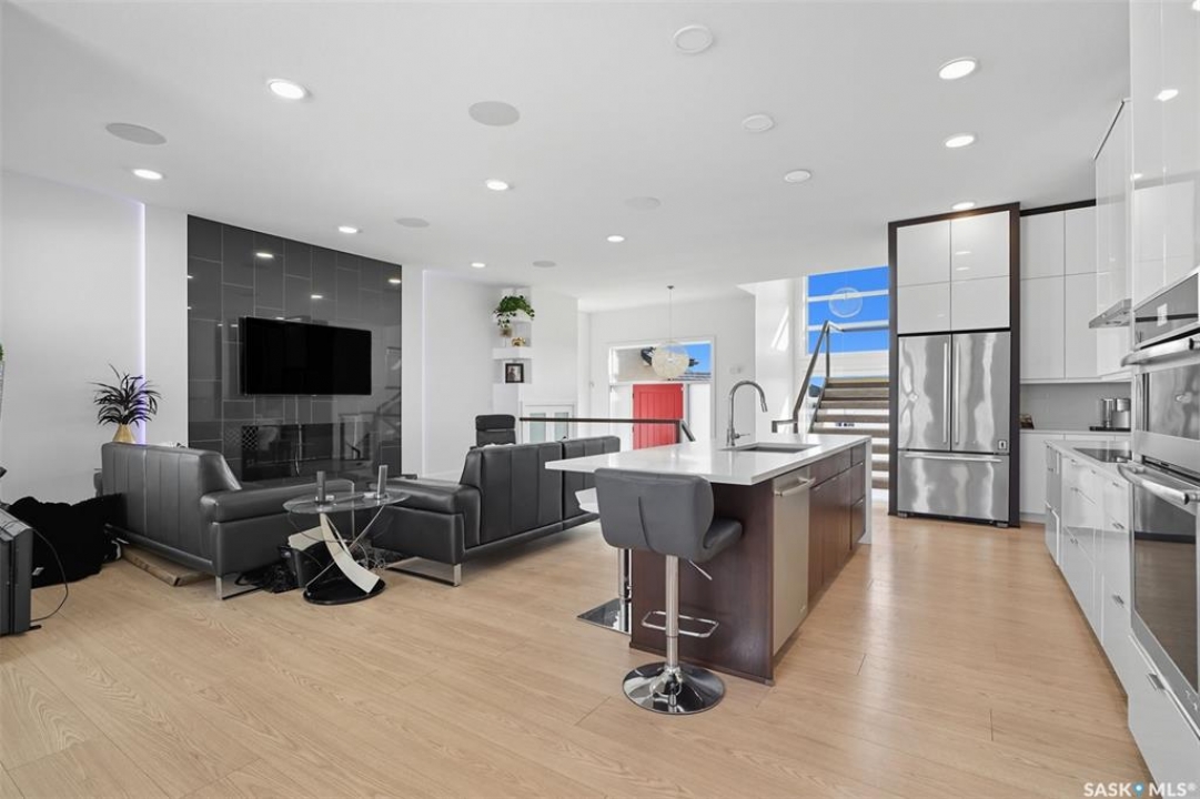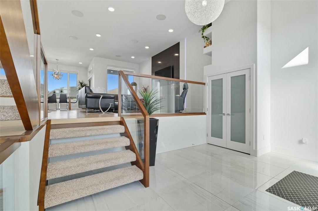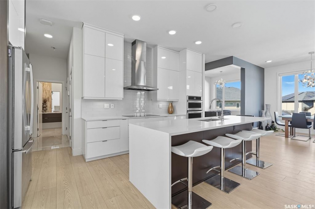 This beautiful 2097 Sq Ft Modified bungalow stands majestically in Rosewood with curb appeal to spare. Walking through the trendy red door, you will enter a spacious foyer just steps up to the main floor. The open concept living space is welcoming with laminate flooring and an electric fireplace to keep you warm on those long cold nights. Visit with company while cooking or catch up with the kids at the kitchen island with seating. The dining room is close by and there is a cozy den just off the kitchen. Floor to ceiling cabinetry in the kitchen adds to the openness of the room. There is a 2 pc bath for convenience and a mudroom for added storage. There is a patio door to the maintenance free deck with glass panels leading to a small patio. On the 2nd floor you will find a Primary bedroom with walk in closet and 5 pc en-suite, 2 more bedrooms and a 4 pc bath as well as laundry. The windows are large and let in tons of light. The basement is unfinished - let your imagination run wild! Will it be a man cave? Home gym? Rec room for the kids? Your own private movie theatre? The possibilities are endless. This home has a Savant Control system - control, lighting, music, locking/unlocking doors remotely, etc. Fully programmable to do whatever you desire. Current settings include colour changing lights behind the tv's in 2 kids rooms, music anywhere in the house and timed automatic door locking.