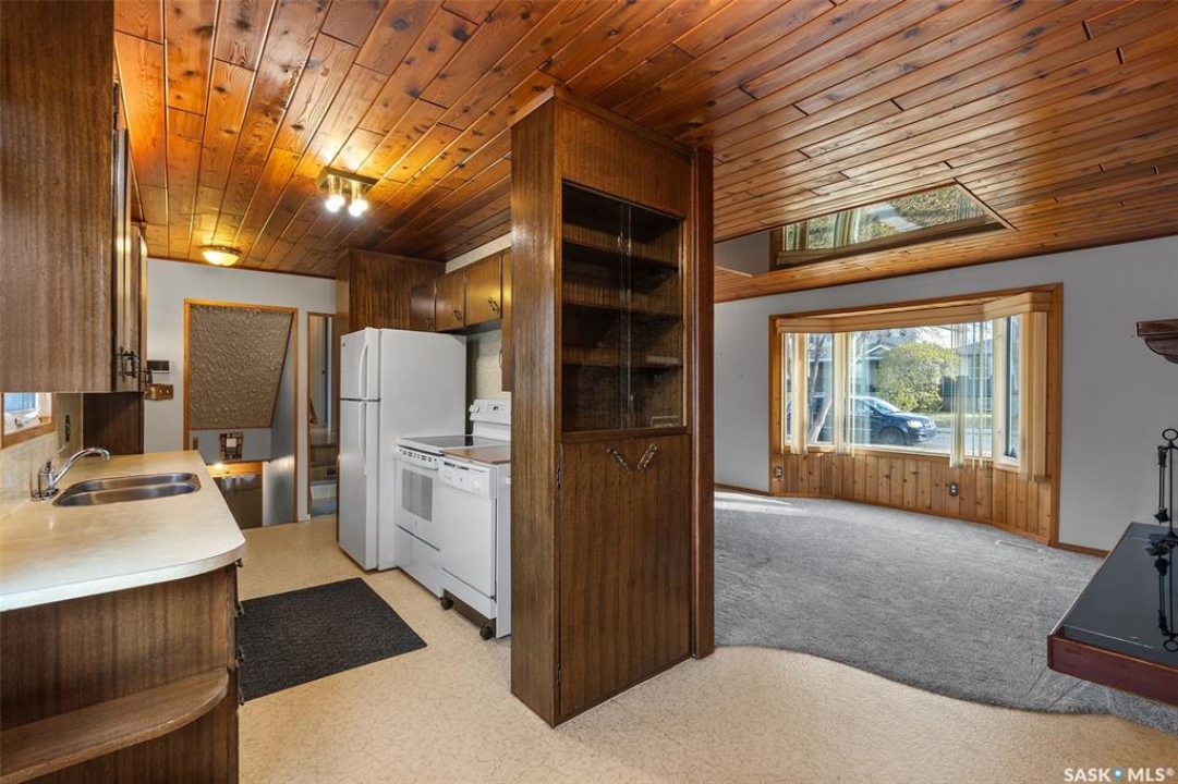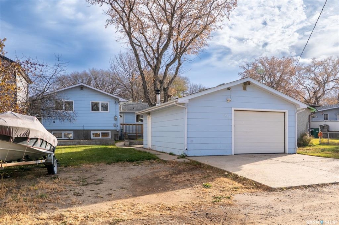 Welcome to 1513 Avenue G North in the desirable Mayfair area. This 1040 sq ft four-level split offers excellent potential with plenty of space for a growing family. The main level features a bright and inviting living room and dining area with large upgraded windows that fill the space with natural light. Upstairs you'll find three good-sized bedrooms and a full bathroom. The third level offers an additional bedroom, bathroom, and a spacious recreation room complete with a wet bar—perfect for entertaining or relaxing. The home features a beautiful custom stone fireplace, central air conditioning, and a large soaker tub. Some cosmetic upgrades would easily modernize this well-cared-for home has great layout potential. Outside, you'll appreciate the back alley access, a 26' x 20' oversized single garage with a wood stove, and ample yard space. With its functional floor plan, R2 zoning, and great Mayfair location, this property is a fantastic opportunity to build equity and make it your own.