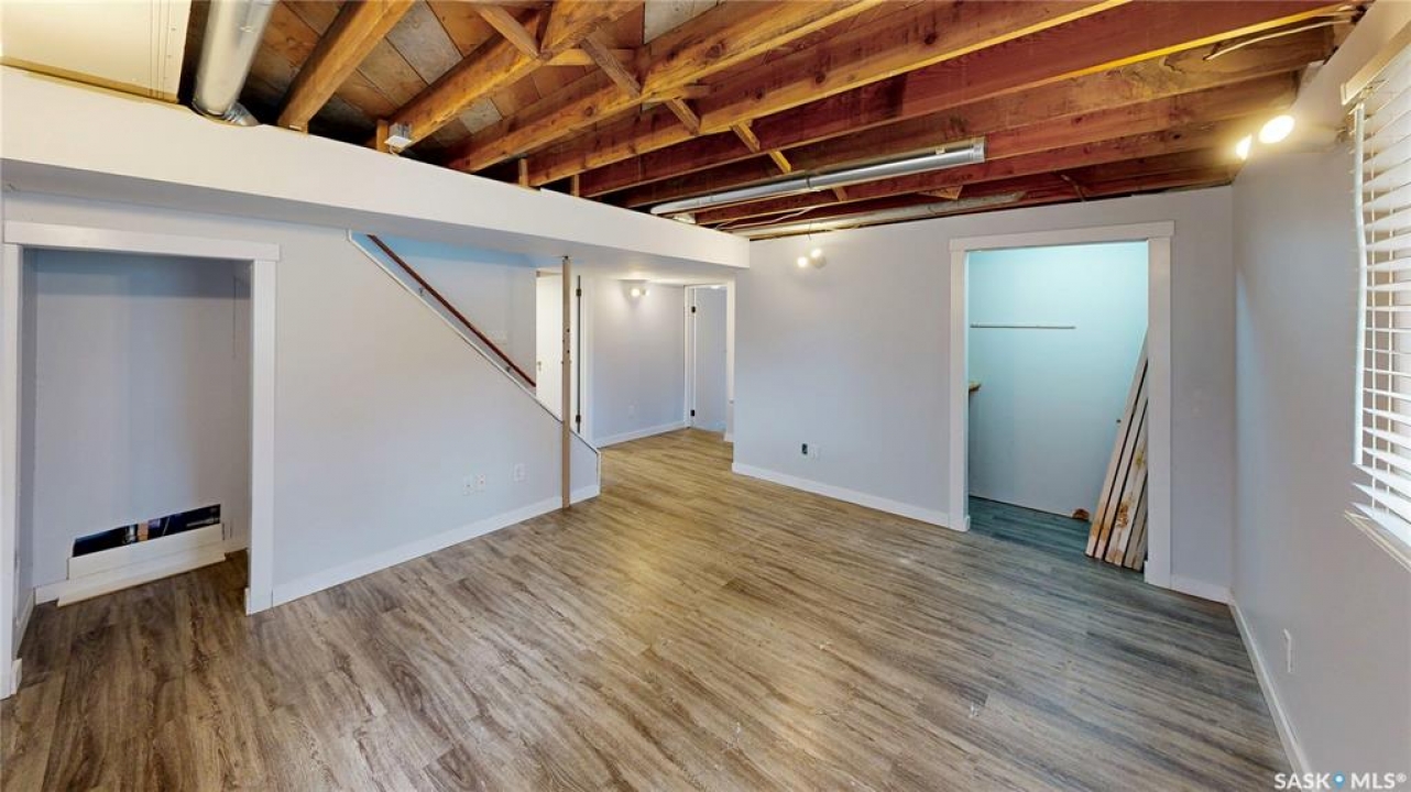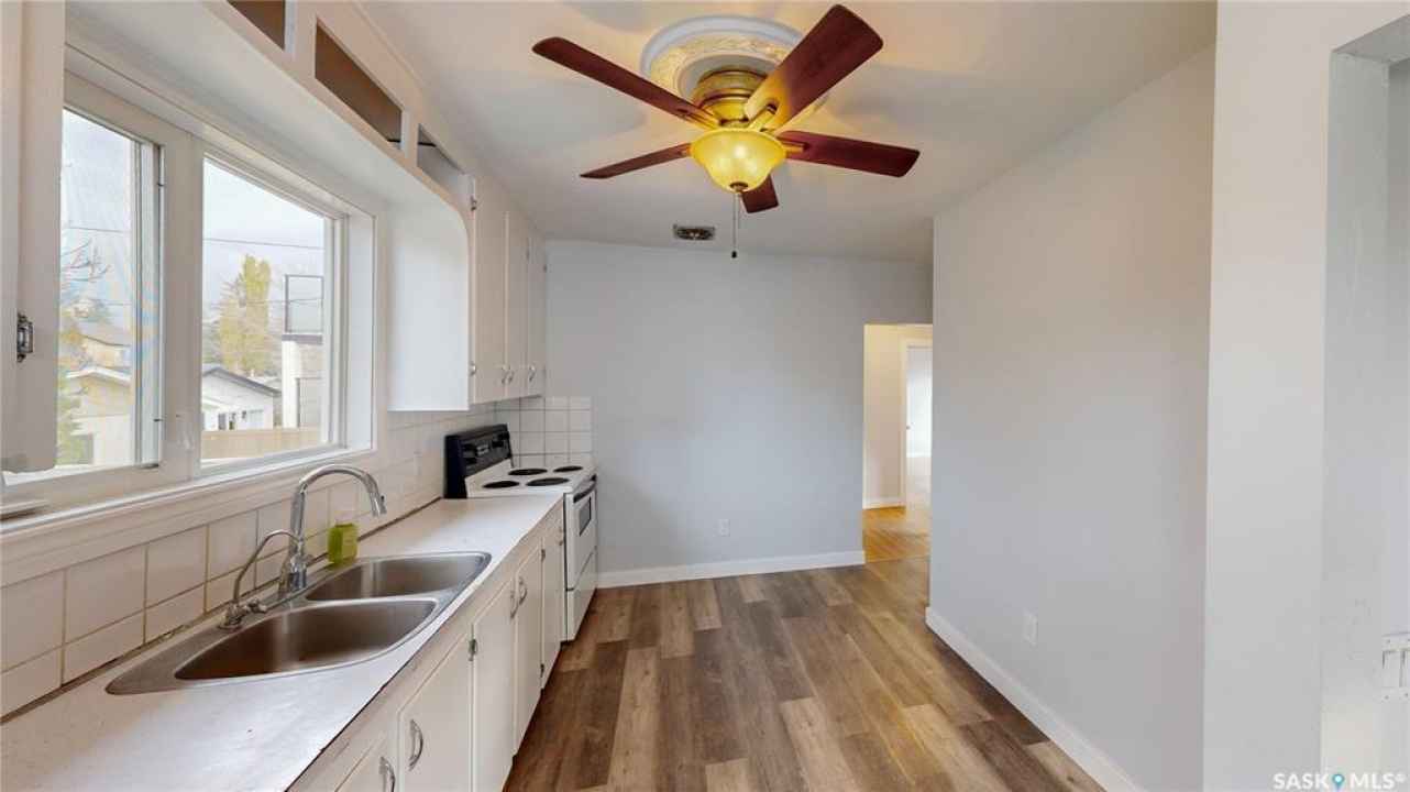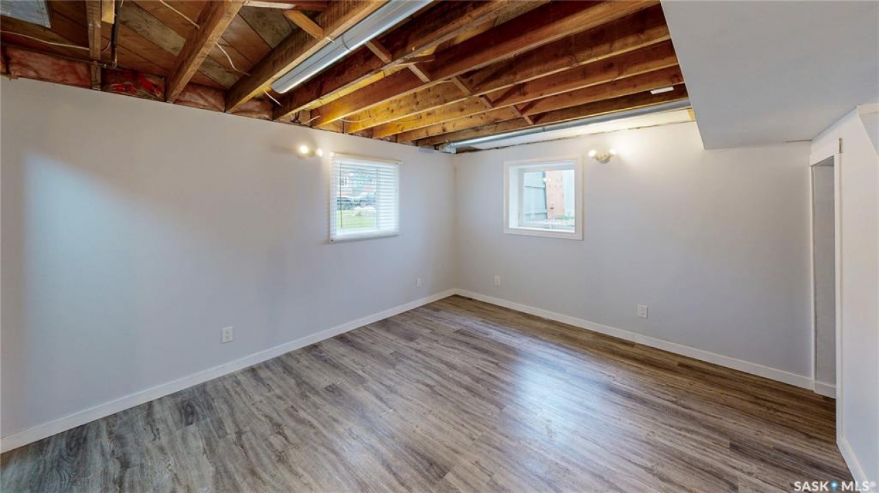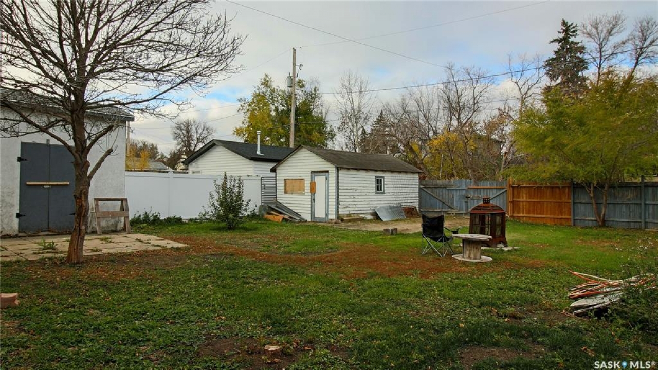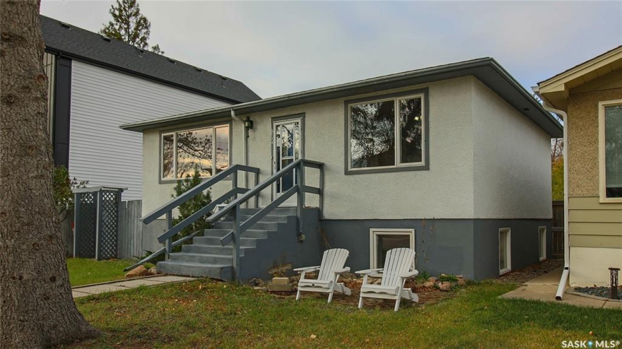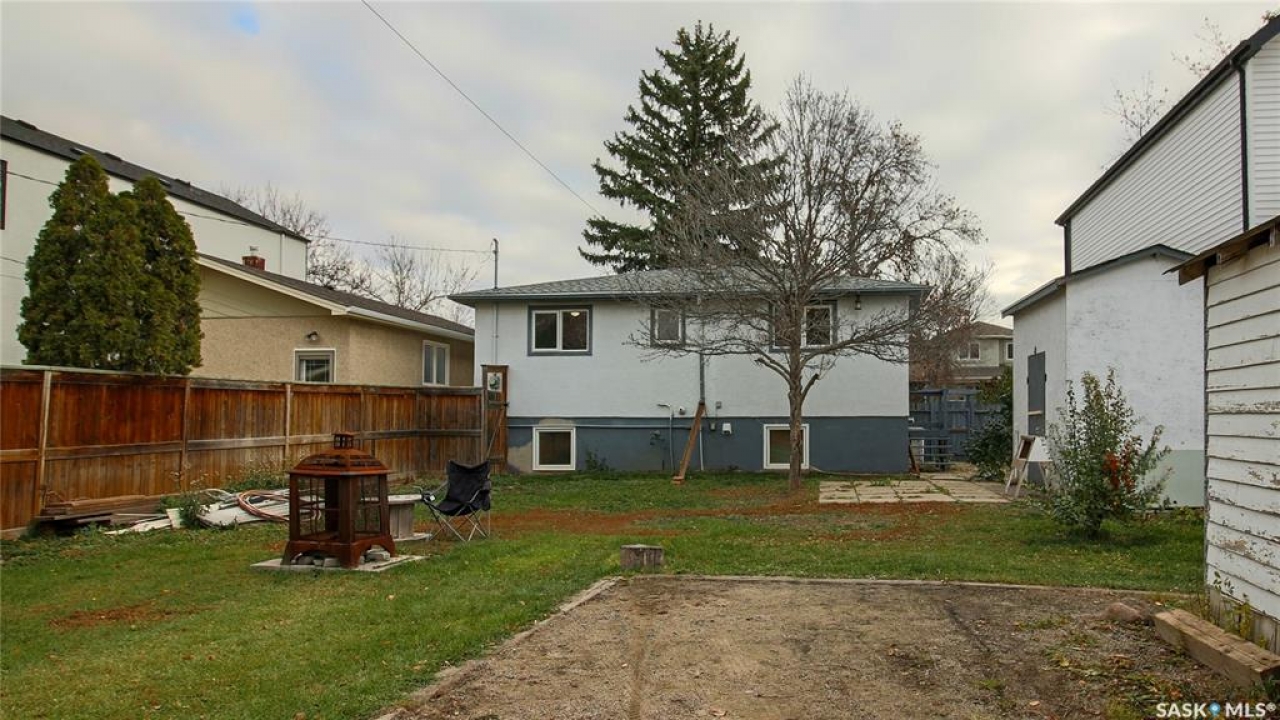 Welcome to 2736 Reynolds Street in the family friendly Arnhem Place neighborhood just steps away from Candy Cane Park, Wascana Park, The Science Center with attached IMAX Theatre, and all the walking and biking and cross-country skiing baths around the Wascana Centre. Both Miller and Balfour high schools and the strip mall anchored by Neil's Independent grocery store are also close by, making this an extremely convenient and vibrant place to live! This 1952 built, 832 square foot, raised bungalow has 4 bedrooms and 2 bathrooms and sits on double lots measuring 50 x 125 with a back alley lane. The front yard has a lawn, a large tree, and a cute sitting area. The huge backyard is fully fenced with a lawn, trees and shrubs, an extra tall shed, and a single detached garage! The back of the fence features a double gate with a parking pad that is great for RV or additional vehicle parking! You enter the home into the foyer with a handy coat closet to store your outdoor gear. The living room has original hardwood and is super bright thanks to the large picture window! There are two good sized bedrooms on the main as well as a 4 piece bathroom. The kitchen has a pantry for extra storage and a fair amount of cabinets and countertop space. There's modern vinyl plank flooring here, and the fridge and stove are included. Downstairs, the rec room makes an excellent second living space or play area. As the house sits high out of the ground the large windows make it extra bright and it doesn't even feel like you're in a basement here. The combined laundry and bathroom feels almost spa-like with a deep soaker jet tub, cupboard and counter space. The washer and dryer are both included as well. Finishing off the home are two more bedrooms also with large windows. This home also features an owned high efficiency furnace and a 100 amp electrical panel!