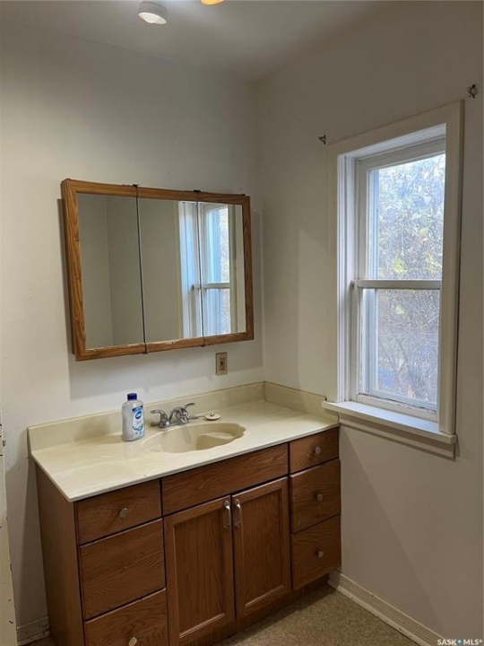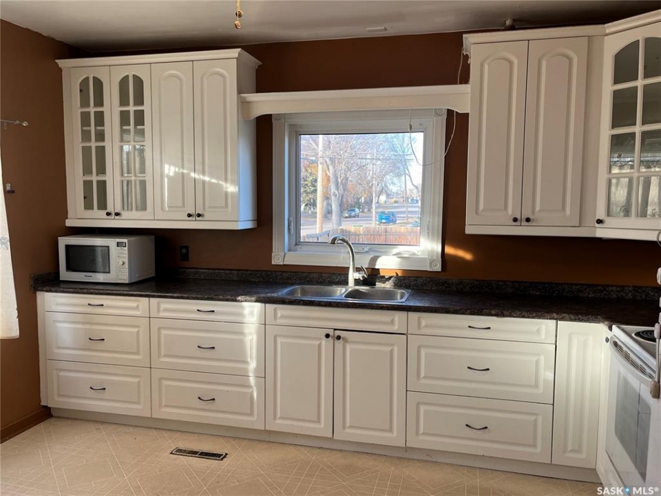 Well, this is a lot of house! If you are looking for space – this is the right stop. The back yard is huge, fenced and has a large shed. Unlike many properties that are this high out of the ground, it is wheelchair accessible with a ramp from the front, up and to the side door. Once inside the home it becomes completely user friendly. Three bedrooms and a massive bathroom! One bedroom is at the front of the house and would have great use as an office or study. The large eat in kitchen has plenty of countertops and cabinets. The window above the sink allows you to keep an eye on the kids outside. There are two massive windows in the family room space providing great sun as they face south and west. Upstairs, there is the cutest 2pc bathroom and an additional three bedrooms (one bedroom has a small counter and sink) and storage galore! The basement is high and dry. Unfinished so you can decide how it best serves your family. Laundry and storage are here too with plenty of natural light. So much space, so many ways to customize the house and make it your home.