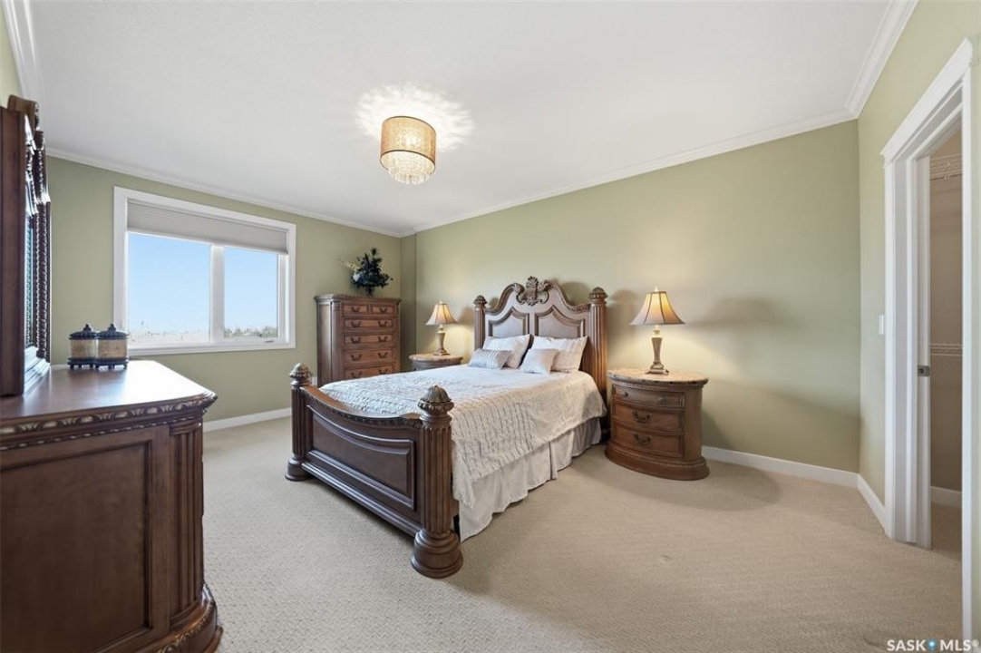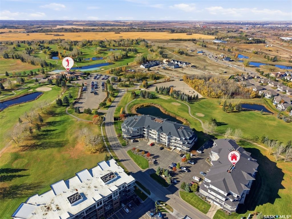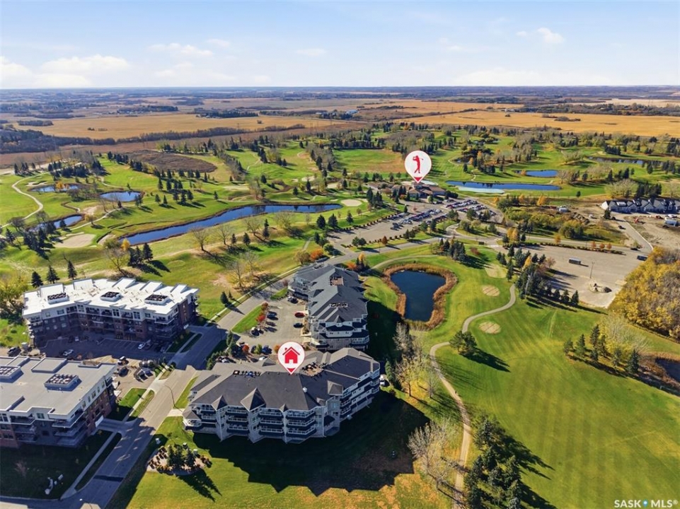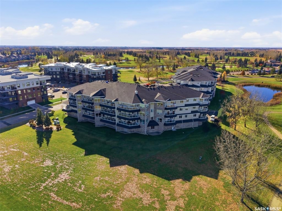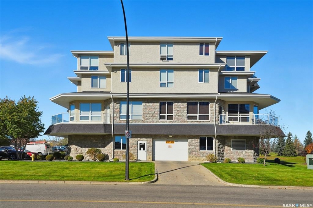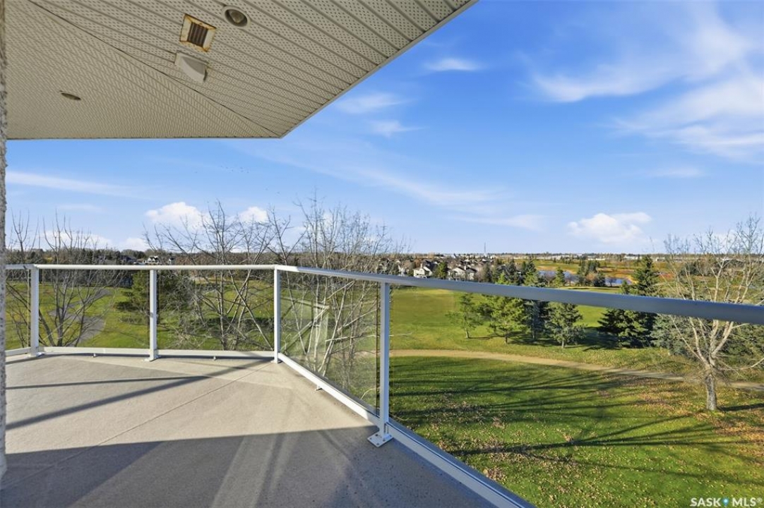 Welcome to luxury living at The Willows - Saskatoon's premier golf course community. This top floor corner unit boasts 1,854 sq.ft. with a spacious open floor plan. Soaring wall to wall windows let in natural light from the north and west sides of the building, and the wrap-around balcony showcasing beautiful views of the golf course and community. Features include custom cabinetry, granite countertops, crown mouldings, and in-floor heat. Three bedrooms (one ideal as an office). The primary bedroom offers a walk-in closet and a large ensuite with double sinks. Convenient in-suite laundry and two underground parking stalls (a rare find). Pets allowed with approval. Original owners. A premium opportunity for upscale condo living in one of Saskatoon's most desirable communities.