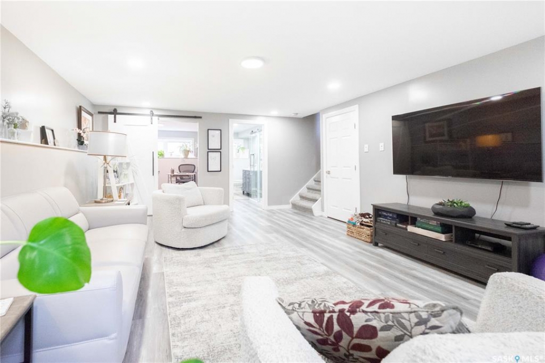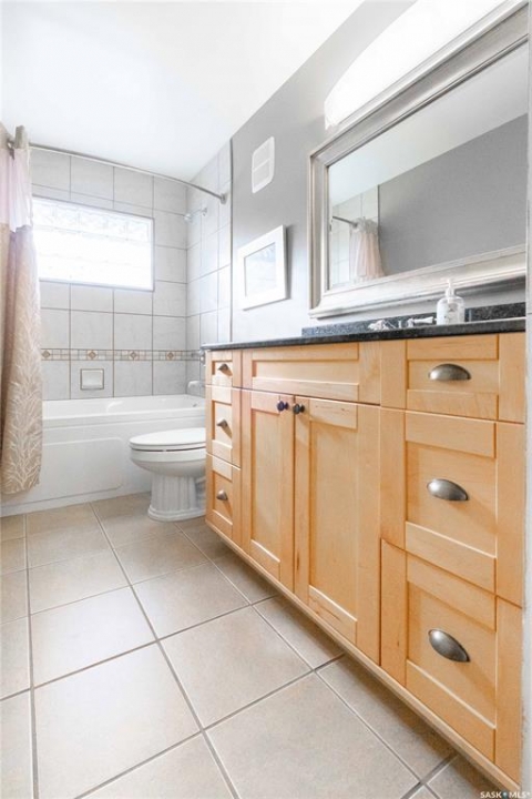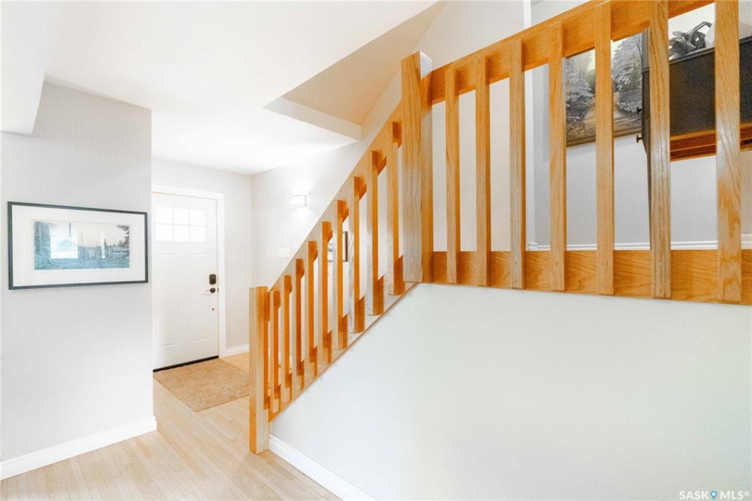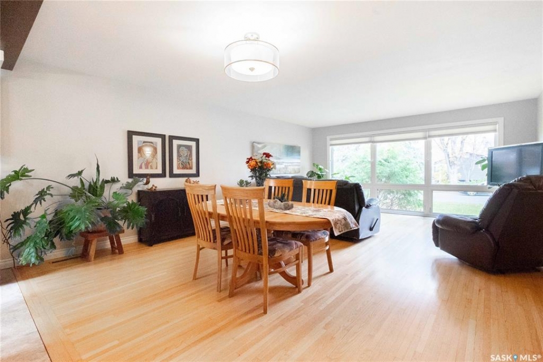 Welcome to 3 Dolphin Bay. This charming 1860 sq.ft., 4-level split located in the desirable sub-division of Whitmore Park in south Regina is the perfect blend of comfort, style and location. Step inside to a spacious front entry, leading to the heart of the home, the living room, dining and kitchen area create a bright and open atmosphere. 16' x 20' living room features original oak hardwood floors, large floor to ceiling picture window installed in 2020. Chef friendly island style kitchen boasts an ample amount of Cherry Wood cabinets with soft close drawers and cabinets, roll outs and lazy Susan. Quartz counter tops with eat-up counter at island. Dura ceramic kitchen flooring and small skylight. Fridge and stove new in 2025, and microwave hood fan included. Three good size bedrooms up with hardwood floors and a well appointed 4-piece bathroom with tile floors and an attractive glass block window. Fully renovated 3rd level with a beautiful spacious family room, versatile den/office(has been used as a bedroom) plus a good size 3-piece bathroom. Large TV/Recreation room in basement, walls insulated with high efficient spray foam for better warmth and comfort. Lots of storage space. Washer and dryer new in 2024 are included. Step outside to the deck off the kitchen, you have a good size yard(7355 sq ft lot) concrete patio area, vinyl fencing 2024, vinyl siding 2025. underground sprinklers front yard. Double detached garage with shed built in. Other upgrades include, high efficient furnace, central air conditioning, most windows replaced in 2020, window treatments included. This property is close to elementary, high schools, the University of Regina and all south end Regina amenities.