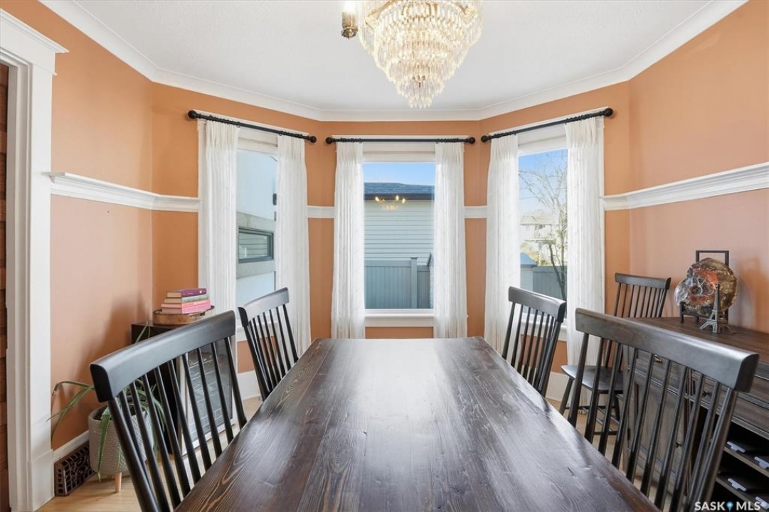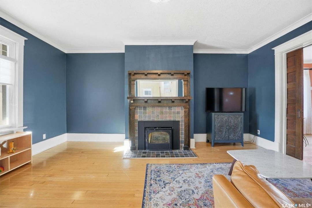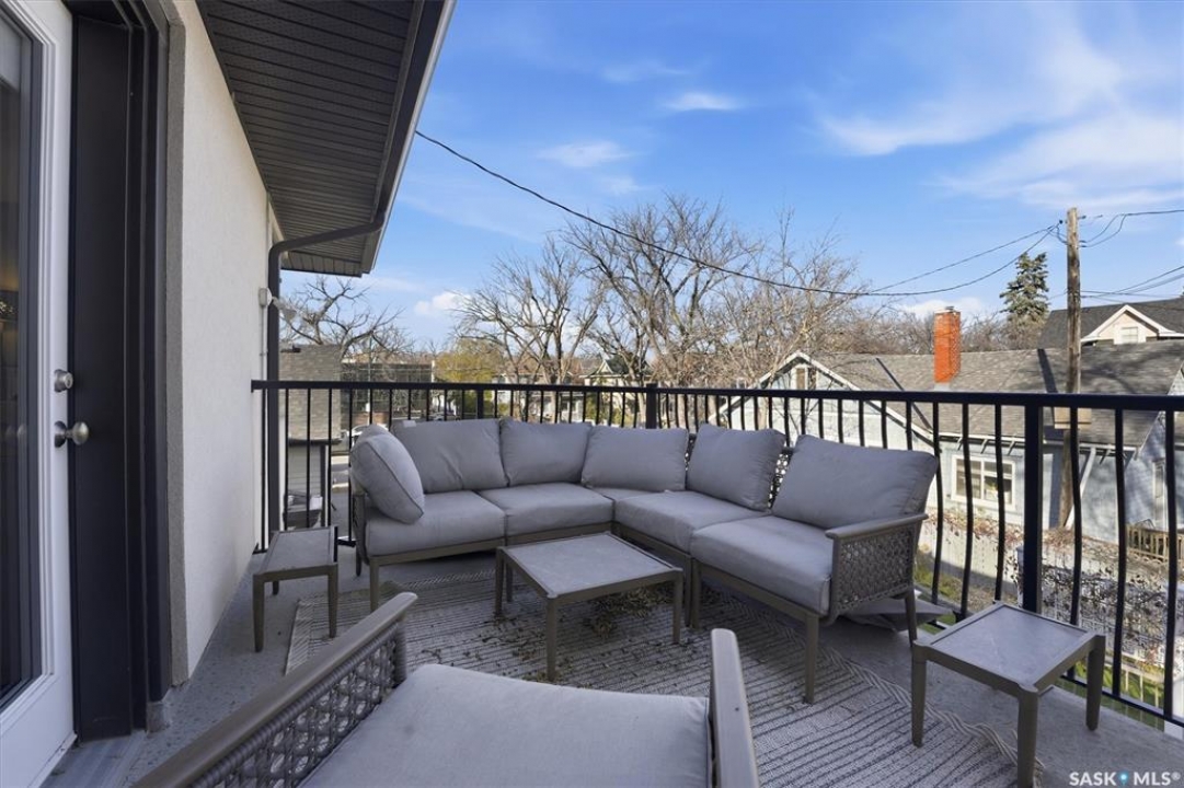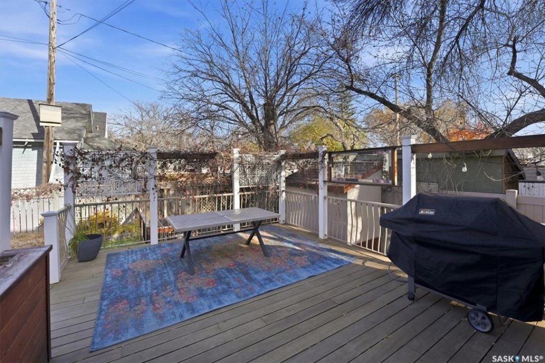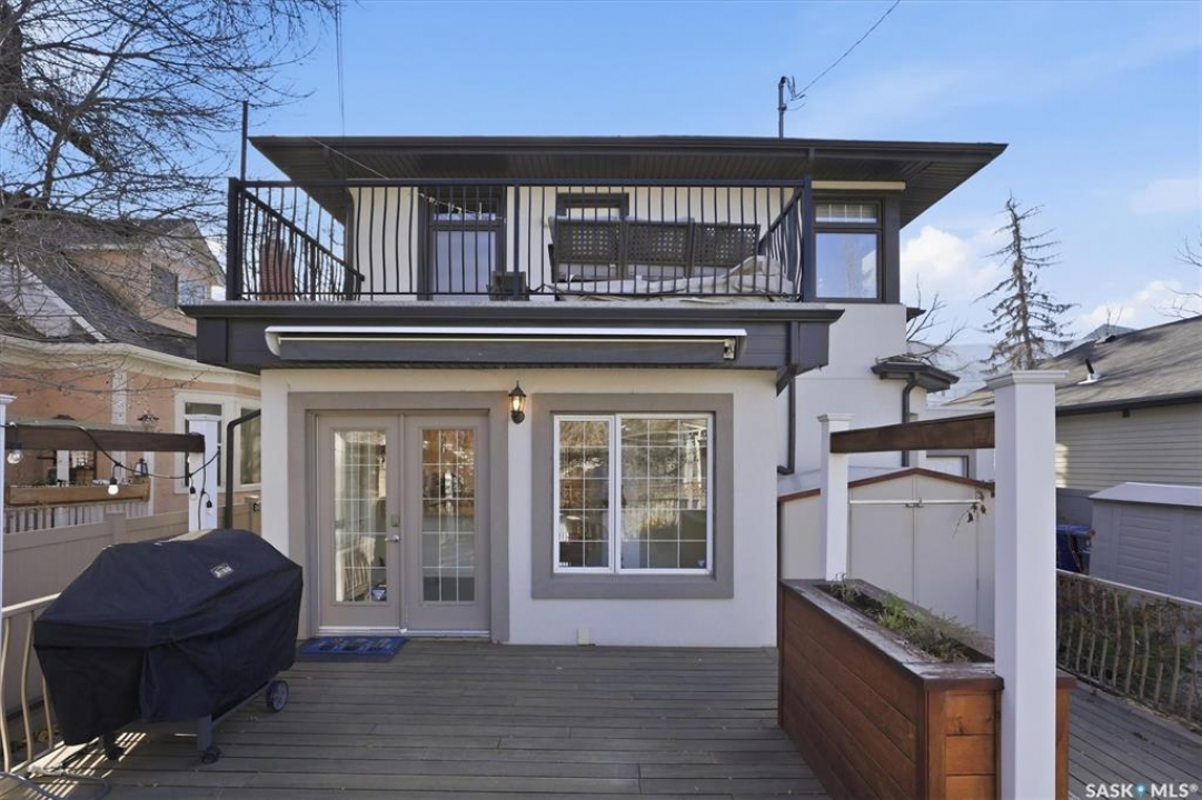 Don't miss this beautiful character home in one of Saskatoon's most desirable neighbourhoods! This property exudes pride of ownership with timeless charm and thoughtful updates throughout. Enter into the main floor- featuring a welcoming sunroom porch, lrg foyer, living room with wood burning fireplace, a formal dining with bay window. At the heart of the home is a chef's dream kitchen- spacious and beautifully appointed with quartz countertops, stainless steel appliances, and a sit-up eating area that opens onto a sitting room, overlooking a large deck and private yard. A 2-piece bath completes the main. Upstairs, you'll find 3 bedrooms: a primary suite with an ensuite — and a charming private deck off the master. Two additional lrg bedrooms and a newly renovated 3-piece bathroom complete 2nd flr. Large windows flood every room with natural light, highlighting the significant character this home offers. Extensive renovations and upgrades have been meticulously completed over the years, blending heritage with modern comfort. The unique dev basement offers a modern 1 bed suite with a sep entrance, 4-piece bathroom, 2 x laundry areas, kitchen, and a family room w/ gas fireplace — ideal for additional income potential. The oversized, heated attached garage includes a large attic storage area above. The front yard is low maintenance with a stamped concrete driveway providing parking three vehicles. Garden enthusiasts will appreciate the manicured backyard: a two-tiered deck, garden and flower boxes, artificial turf, and lush climbing vines. In total, there are three decks, including a covered front deck and the private balcony of the master. Upgrades include: furnace, hot water heater, shingles, garage, decks, kitchen, two bathrooms, basement development, many new windows, updated exterior, and driveway — the list goes on! This gem is ideally situated within walking distance to the river, downtown, the U of S, and all hospitals, the location is unbeatable.