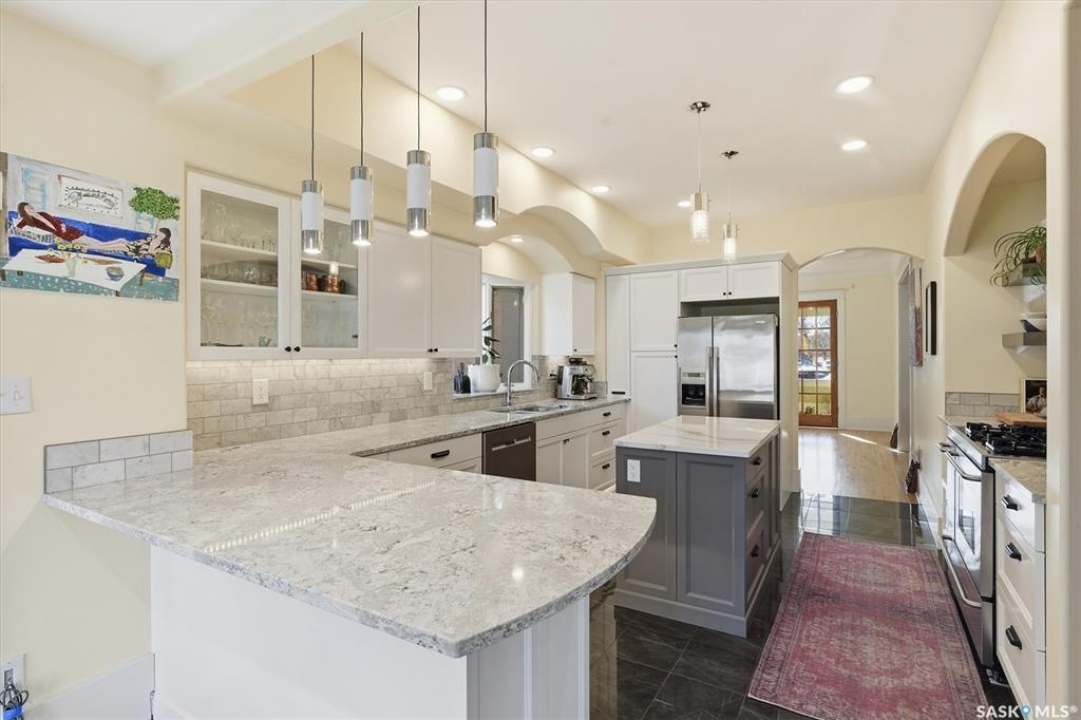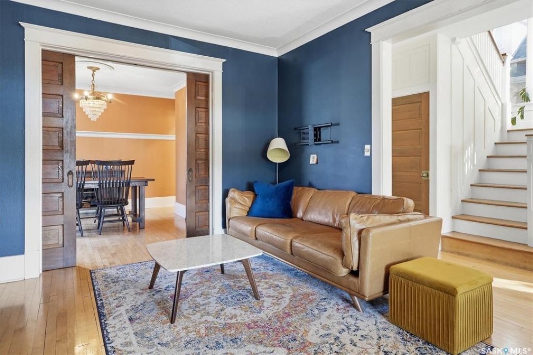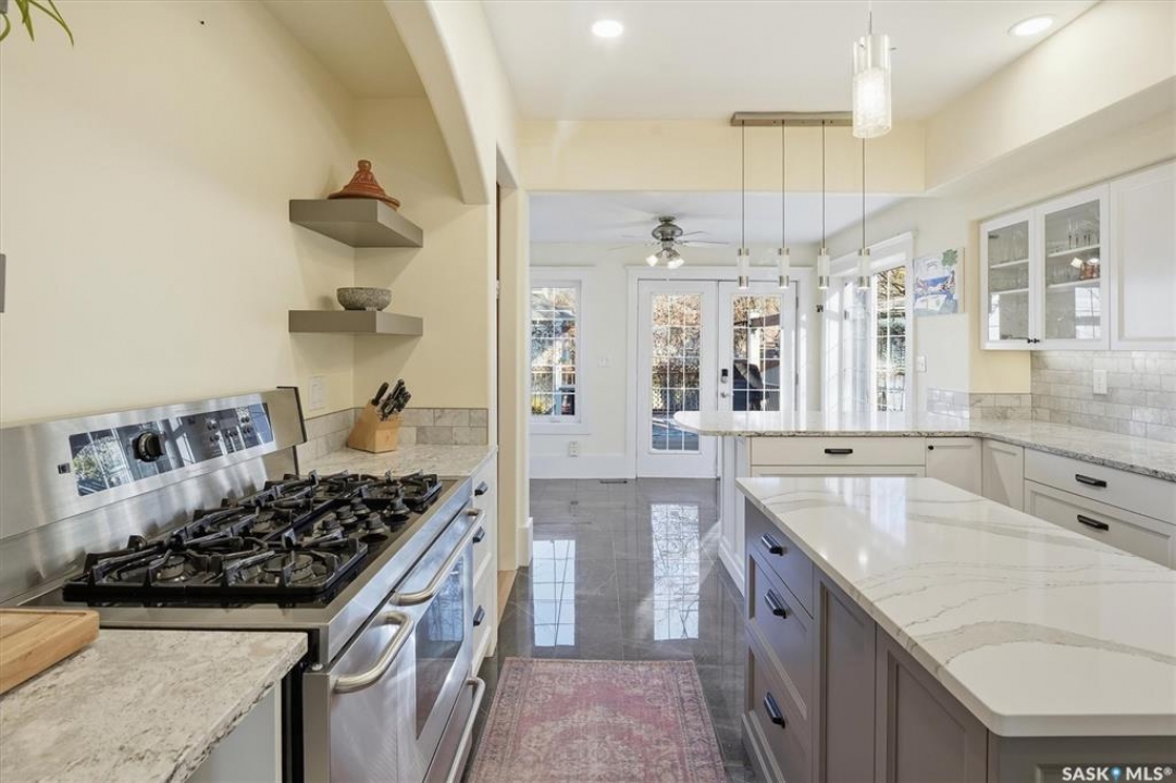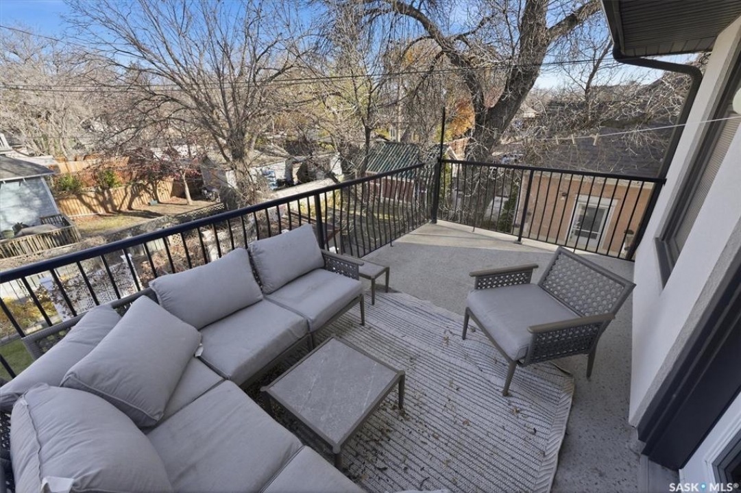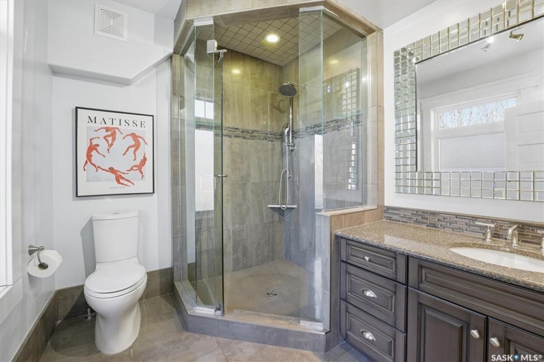 Don't miss this beautiful character home in one of Saskatoon's most desirable neighbourhoods! This property exudes pride of ownership with timeless charm and thoughtful updates throughout. Enter into the main floor- featuring a welcoming sunroom porch, lrg foyer, living room with wood burning fireplace, a formal dining with bay window. At the heart of the home is a chef's dream kitchen- spacious and beautifully appointed with quartz countertops, stainless steel appliances, and a sit-up eating area that opens onto a sitting room, overlooking a large deck and private yard. A 2-piece bath completes the main. Upstairs, you'll find 3 bedrooms: a primary suite with an ensuite — and a charming private deck off the master. Two additional lrg bedrooms and a newly renovated 3-piece bathroom complete 2nd flr. Large windows flood every room with natural light, highlighting the significant character this home offers. Extensive renovations and upgrades have been meticulously completed over the years, blending heritage with modern comfort. The unique dev basement offers a modern 1 bed suite with a sep entrance, 4-piece bathroom, 2 x laundry areas, kitchen, and a family room w/ gas fireplace — ideal for additional income potential. The oversized, heated attached garage includes a large attic storage area above. The front yard is low maintenance with a stamped concrete driveway providing parking three vehicles. Garden enthusiasts will appreciate the manicured backyard: a two-tiered deck, garden and flower boxes, artificial turf, and lush climbing vines. In total, there are three decks, including a covered front deck and the private balcony of the master. Upgrades include: furnace, hot water heater, shingles, garage, decks, kitchen, two bathrooms, basement development, many new windows, updated exterior, and driveway — the list goes on! This gem is ideally situated within walking distance to the river, downtown, the U of S, and all hospitals, the location is unbeatable.