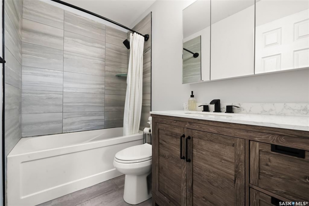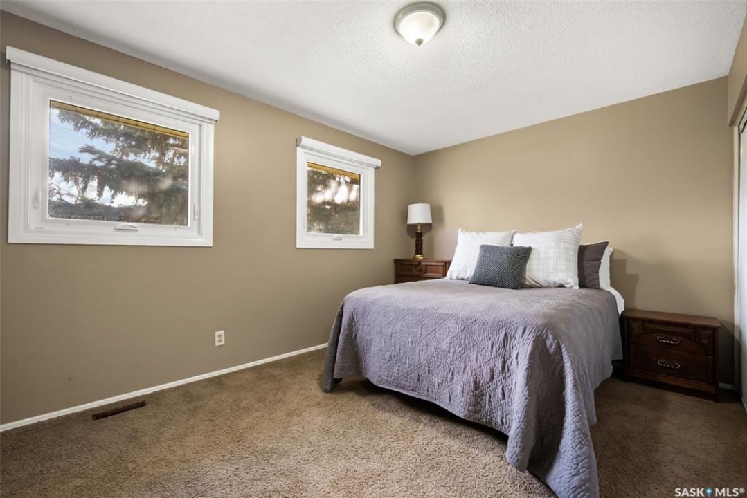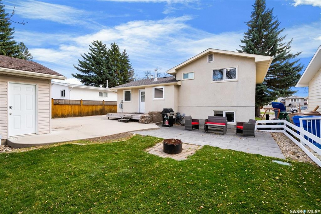 Welcome to 14 Pearson Place, nestled on a quiet bay in the highly sought after neighbourhood of Albert Park in Regina's South End. This 1,336 sq. ft. four level split offers 3 bedrooms, 2 bathrooms, and a great double detached garage. The main floor features a bright, open living room with a cozy feature fireplace and excellent flow into the dining area and kitchen. Upstairs, you'll find the primary and secondary bedrooms along with a refreshed main bathroom. The third level includes a spacious family room, a third bedroom, and another updated bathroom, while the lower level offers additional living space with a bar, plus laundry, storage, and utilities. Outside, enjoy the tree covered yard with a patio, fire pit area, and partial fencing. Added value features include some newer windows, a newer electrical panel, natural gas hookup, front and back sprinklers, central air, and central vac.