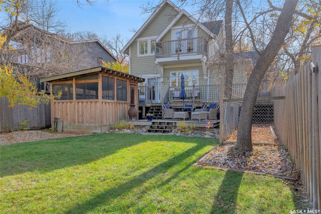 Welcome to 2736 Regina Ave. located in the heart of the desirable Lakeview neighbourhood. This lovely 3 bed, 3 bath home offers a unique combination of original character and modern charm. Timeless, warm, cozy and charming all wrapped into one! This property backs onto Rotary Park and Wascana Creek. Steps away from Wascana Park, and a short walk to Kiwanis Park make this location hard to beat! The upgrades and improvements that have been done to this home over the years are evident throughout. Spacious front foyer welcomes you as you enter the home. Beautiful living room offers an abundance of large windows and hardwood flooring making this the perfect cozy spot to relax and spend time with family and friends. Gorgeous kitchen features cathedral ceilings, heated tile floor, cappuccino maple cabinets, pantry and an eating bar. Dining area off the kitchen is perfect for Sunday dinners. Family room off kitchen and dining area features a gas stove, and garden doors that lead to the outdoor two tiered deck space overlooking the park. Mudroom off of side entrance offers a custom storage bench. Two piece powder room and spacious laundry room complete the main level. Upstairs is the primary retreat that is an actual retreat! Very unique space that includes vaulted ceilings, dual closets, a balcony overlooking the park, a lovely 5 piece ensuite and sitting area. Two additional bedrooms that show off the original character of the home featuring original hardwood flooring, and an additional 4 piece bath complete the second level. Park like backyard offers a lovely deck space and gazebo. Lots of side street parking on the west side of the house is an added bonus! This home is a pleasure to show. Form 917 is in effect until Nov. 4th @ 4PM.