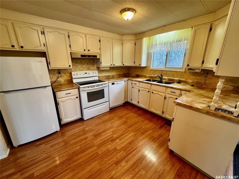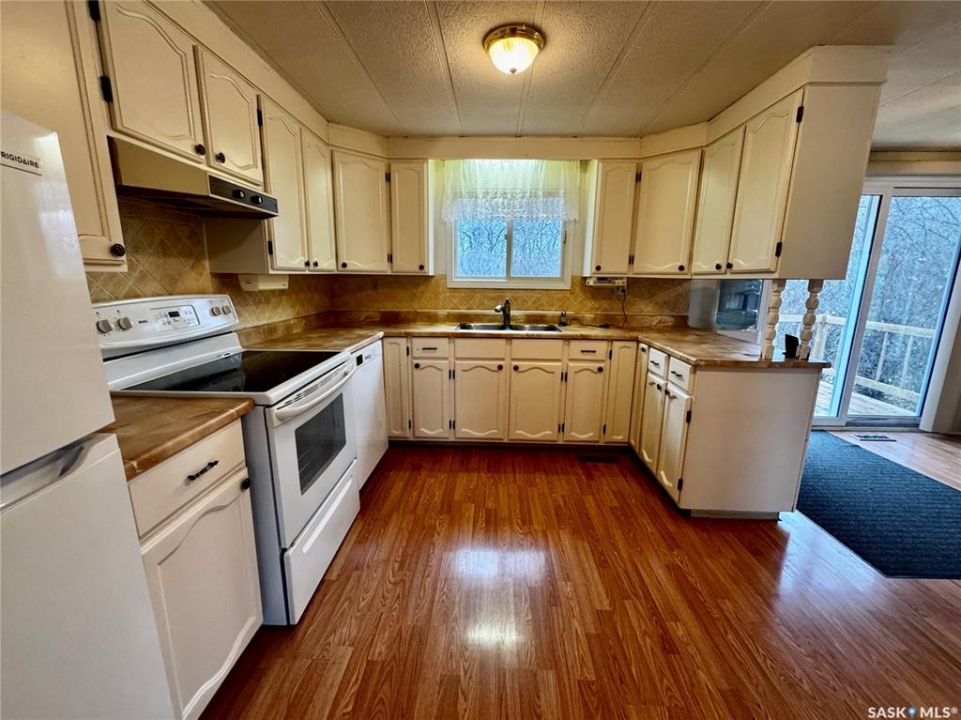 A ten minute drive north of Yorkton takes you to the 2.92 acre property. Driving up to the property you will be welcomed to a mature sheltered yard site. There is lot of room to park all kind of vehicles on the gravel driveway. Entering the home from the south entryway brings you to a good sized porch area with closet. The living room area faces south with large windows. The north facing kitchen has a good amount of counter and cupboard space with included fridge, stove, and dishwasher. Enjoy meals in the dining room area with north and east facing windows. The dining room features direct entry to the extra large deck with excellent views of the back yard trees. Down the hall will take you to 3 bedrooms. The main bedroom features 4 piece ensuite. Main floor laundry is in the mudroom with direct entry outside from the north door. The main floor living space is completed with the 4 piece bathroom. The basement entry is from the outside. The basement is currently unfinished with concrete walls (1995). There is a spot to do inside access to the basement above the basement entry. Basement includes mid high propane furnace, water heater (propane), water conditioning system (owned), 100 amp electrical panel, and sump pump. Water is sourced from a well (30 feet). Sewer is a septic tank with liquid surface dispersal. The yard features lawn, trees, garden area (west side), sheds, and a large deck on the north side of the house. Updates to the home were laminate flooring and some windows replaced (PVC). Bus service to Yorkton Schools. 10 - 12 minute drive to Yorkton SK. Propane tank is rented from Co-Op. This property is not for rent or rent to own. All showings must be booked and viewed with a Saskatchewan Registered Realtor.