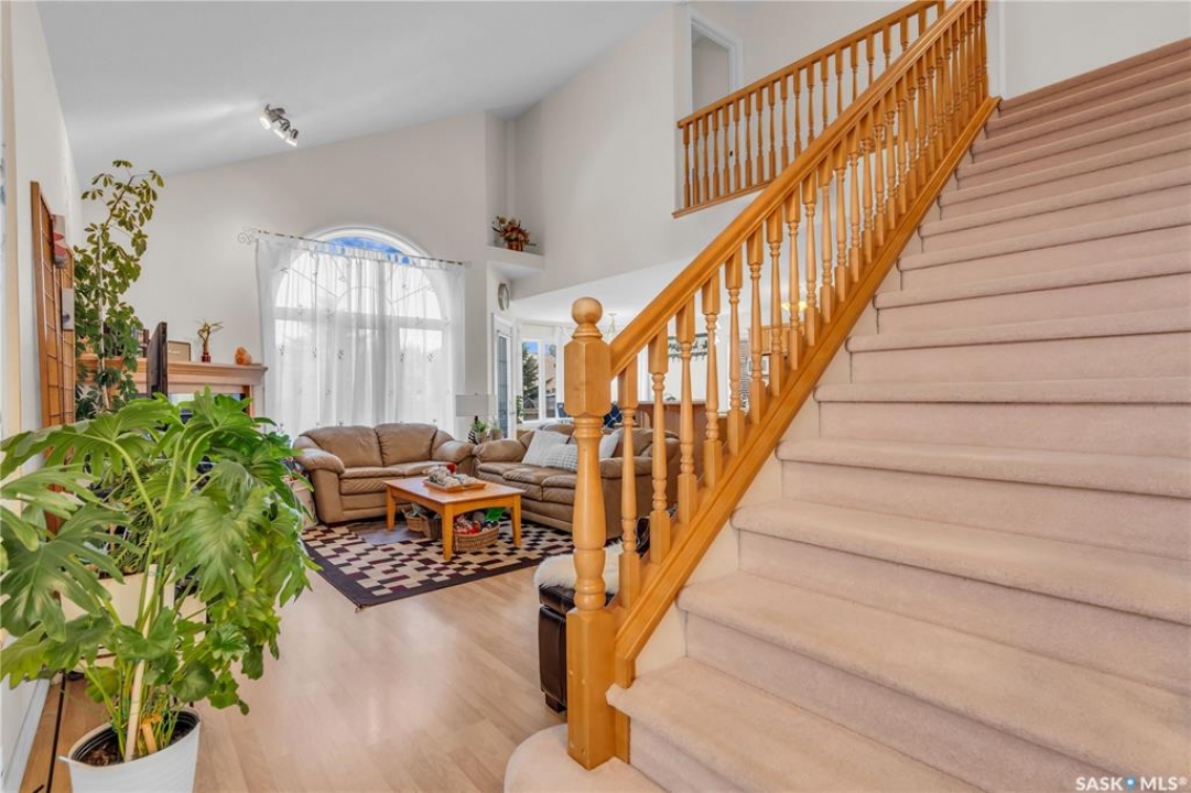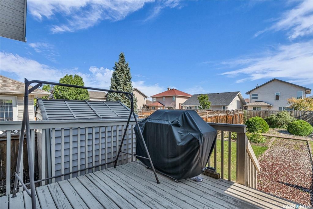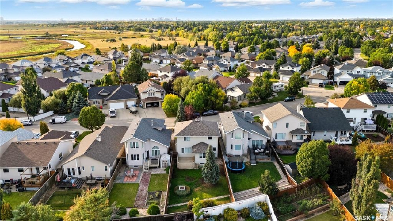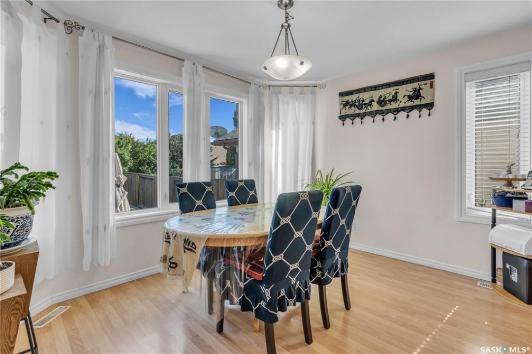 Welcome to this wonderful 2 story family home in Wascana View! First owner, well maintained. Built in 2002 & showcases 4 bedrooms, 3 full baths, & one half-bath. The main floor faces southeast - so its bright, airy & light flows easily from large windows into a functional floor plan, gleaming engineered hardwood flooring all over this level. Complimenting the lovely foyer/entry with double closet is the beautiful living room with high vaulted ceiling and a gas fireplace. Open concept kitchen & dining area featuring maple cabinets, loads of cabinets, eat-up island, & corner pantry. The dining room area is offset and leads to a deck, fully fenced yard. The lot is deep & the neighbors in the back are a good distance away. A 2pc bath with laundry, direct entry to the attached double garage completes the main floor. Upstairs, There are three decent sized bedrooms, the master bedroom overlooking the beautiful backyard and has a bright 3 pc ensuite with large shower. Two more bedrooms and a large full bath completes the second level. The basement is fully developed, the nicely vinyl tile flooring has thick plywood underlayment, you won't feel cold in your feet! The large rec room connected to a separated storage room, one big bedroom & full bath. Location is truly super! Fabulous mature & quiet neighborhood with friendly folks! Close to parks, walking paths, environmental reserves, schools, & more! Update works include but not limited to: new quartz countertop in 2025, newer basement finish in 2020, newer shingles in 2021, etc.