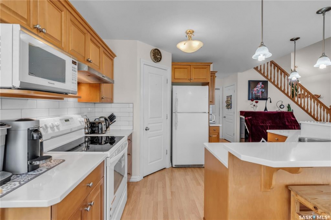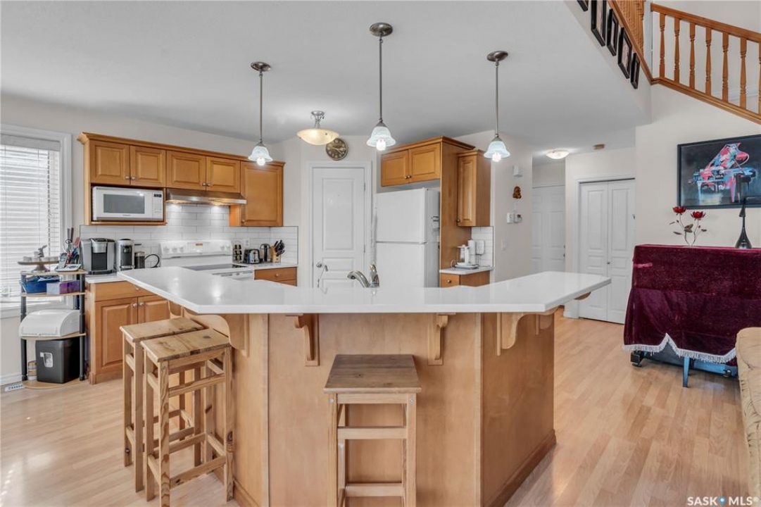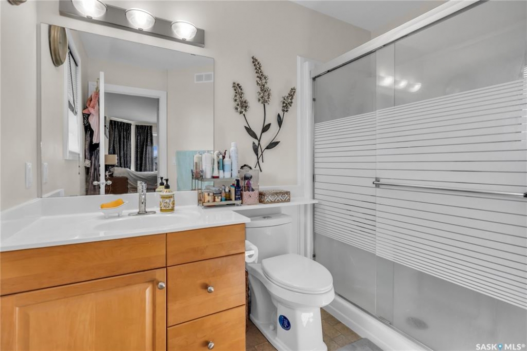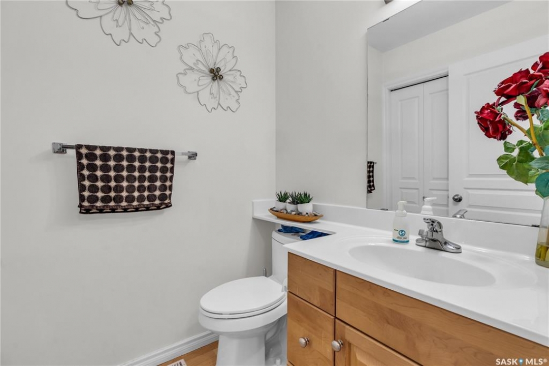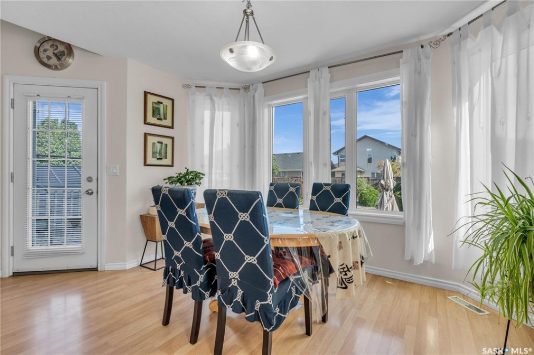 Welcome to this wonderful 2 story family home in Wascana View! First owner, well maintained. Built in 2002 & showcases 4 bedrooms, 3 full baths, & one half-bath. The main floor faces southeast - so its bright, airy & light flows easily from large windows into a functional floor plan, gleaming engineered hardwood flooring all over this level. Complimenting the lovely foyer/entry with double closet is the beautiful living room with high vaulted ceiling and a gas fireplace. Open concept kitchen & dining area featuring maple cabinets, loads of cabinets, eat-up island, & corner pantry. The dining room area is offset and leads to a deck, fully fenced yard. The lot is deep & the neighbors in the back are a good distance away. A 2pc bath with laundry, direct entry to the attached double garage completes the main floor. Upstairs, There are three decent sized bedrooms, the master bedroom overlooking the beautiful backyard and has a bright 3 pc ensuite with large shower. Two more bedrooms and a large full bath completes the second level. The basement is fully developed, the nicely vinyl tile flooring has thick plywood underlayment, you won't feel cold in your feet! The large rec room connected to a separated storage room, one big bedroom & full bath. Location is truly super! Fabulous mature & quiet neighborhood with friendly folks! Close to parks, walking paths, environmental reserves, schools, & more! Update works include but not limited to: new quartz countertop in 2025, newer basement finish in 2020, newer shingles in 2021, etc.