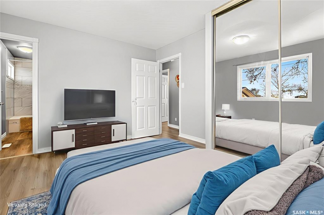 You won't want to miss this one! This well updated bi-level home is sitting on one of the most desirable streets in the City with no neighbors behind you! This home boasts over 1,100 sq.ft. featuring 3+1 beds and 3 baths with 2 full primary suites - plus a double detached heated garage. As you arrive you are sure to be impressed by the excellent curb appeal - with the front yard being artificial turf for easy maintenance and a nice long driveway giving you lots of parking. Heading inside you are greeted by a beautifully updated home. Upstairs we find a spacious living room with lots of natural light. Heading to the back we have a dining space with a new custom kitchen installed only a couple years ago. The kitchen boasts lots of drawers, pullouts, a pantry, and stainless steel appliances - not to mention patio doors to your deck. Down the hallway we find an updated 4 piece bath and 2 bedrooms. As well as our first primary suite with a 4 piece ensuite boasting a stunning tile tub surround which is sure to impress. Downstairs we find a large family room with a sliding barn door so the kids can have space. Next we find our second primary suite - this one is huge, complete with a 3 piece ensuite and a large walk-in closet/dressing room. Finishing off the basement is a laundry room and a storage space. Heading outside you are sure to love the large fenced backyard with a beautiful patio - the perfect place for relaxing after a long day. The heated double detached garage (24'x26') with alley access is sure to be a hit. The Generac is a huge feature to have and it won't disappoint. So many upgrades to this home over the last couple of years. Pride of ownership shows throughout! Reach out today to book your showing!