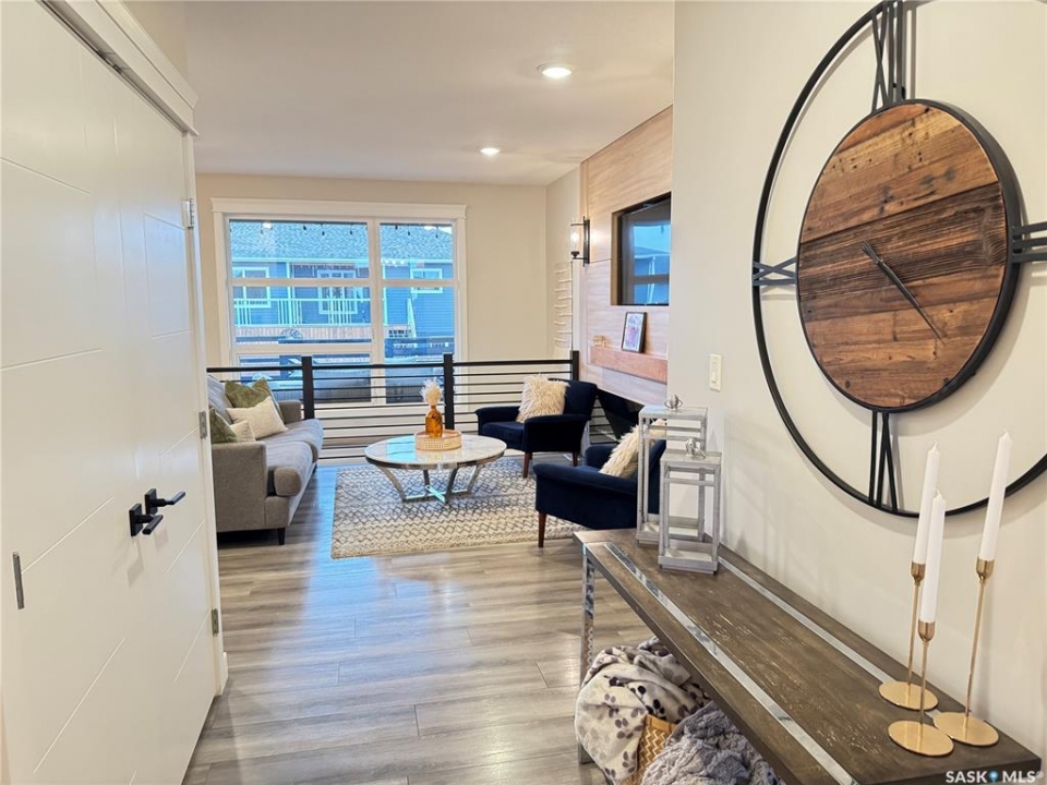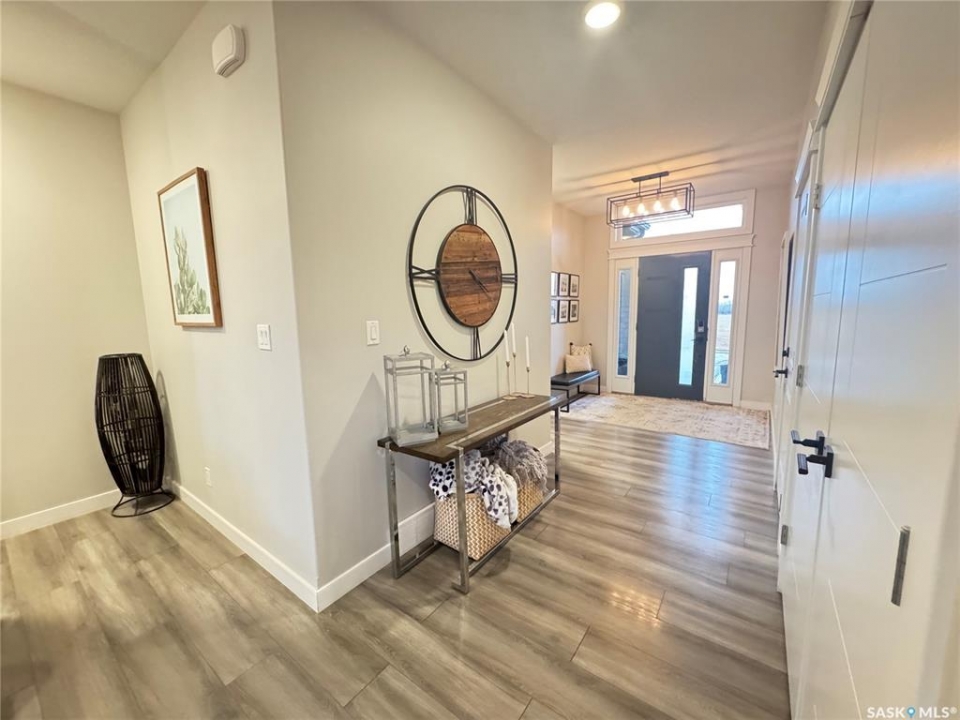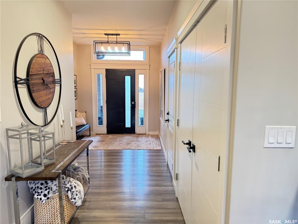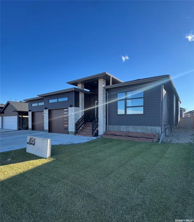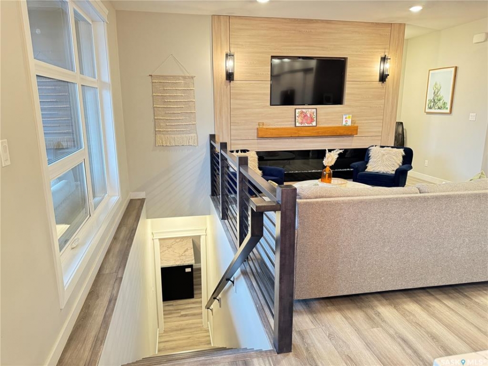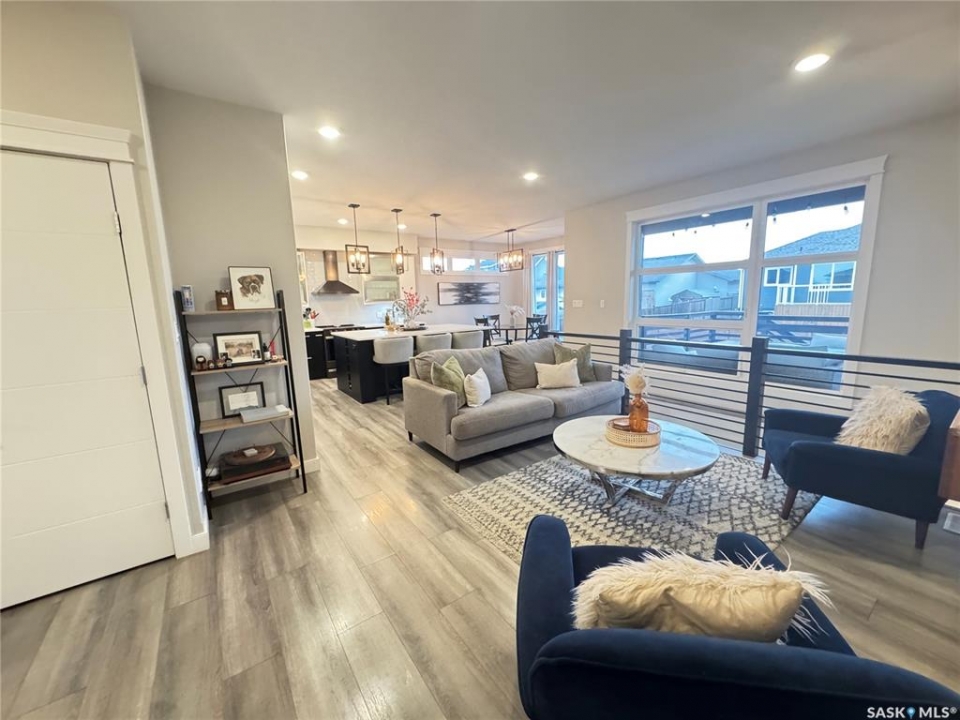 Welcome to this stunning modern-style 2 + 2 bedroom raised bungalow, ideally situated in Humboldt's sought-after North Division—just a short walk from the hospital and Humboldt's beautiful 18-hole golf course. Step inside to a bright, open-concept main floor featuring 9-ft ceilings and stylish laminate flooring throughout. The front bedroom offers flexible space—perfect as a home office or guest room. The spacious entertaining area includes a beautifully designed kitchen with a large island, wall pantry, and dining space that overlooks the backyard with access to a covered deck—ideal for relaxing or entertaining. The main floor also features convenient laundry and a welcoming layout designed for comfort and functionality. The primary bedroom is a true retreat, complete with a beautiful 4-piece ensuite and direct access to a walk-in closet. The fully finished basement mirrors the home's modern appeal with 9-ft ceilings, a cozy and spacious family room, and a well-equipped wet bar (or optional second kitchen for revenue potential). Two additional bedrooms, a 4-piece bath, utility room, and storage area complete the lower level, with direct access to the heated garage. Curb appeal shines with an oversized heated garage (30' x 24') featuring two 8' x 10' overhead doors, plus an additional 12' x 10' section with an 8' x 6' rear door opening to the backyard and a direct pathway to RV parking. The fully fenced yard is beautifully manicured with lush greenspace, flower gardens, and garden boxes. Additional features include central air, central vac, and garburator.?Buyer to verify all measurements.