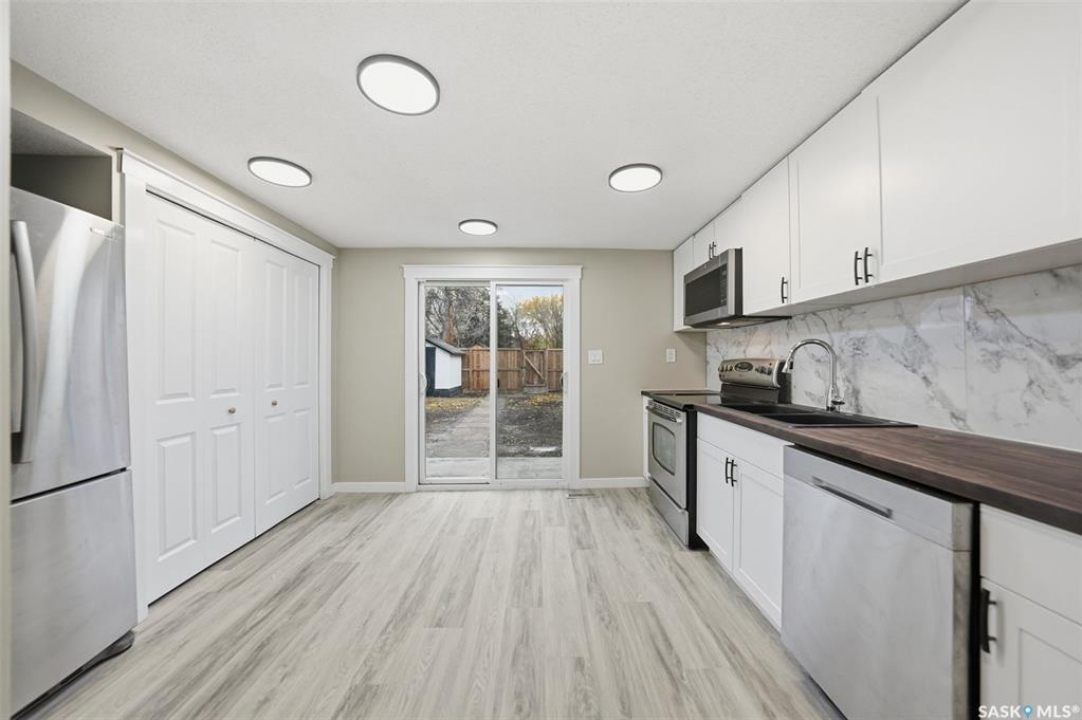 Fully renovated home in the heart of Saskatoon! This charming 2-storey detached house features a bright open-concept main floor with a modern kitchen and dining area, updated flooring, and fresh finishes throughout. The main floor offers a convenient bedroom and 2-piece bath, while the upper level features a spacious second bedroom and a beautifully updated 4-piece bathroom. The lower level includes laundry, utility area with a newer furnace and water heater, plus a versatile bonus/flex room—perfect for a media nook, home gym, or hobby space. Outside, enjoy a 1-car concrete driveway in front and a large backyard with space to park up to three additional vehicles off-street. The rear parking area is currently unpaved, offering flexibility for gravel, concrete, or a future garage. Move-in ready and located close to schools, parks, and downtown—ideal for first-time buyers or investors seeking a turnkey property!