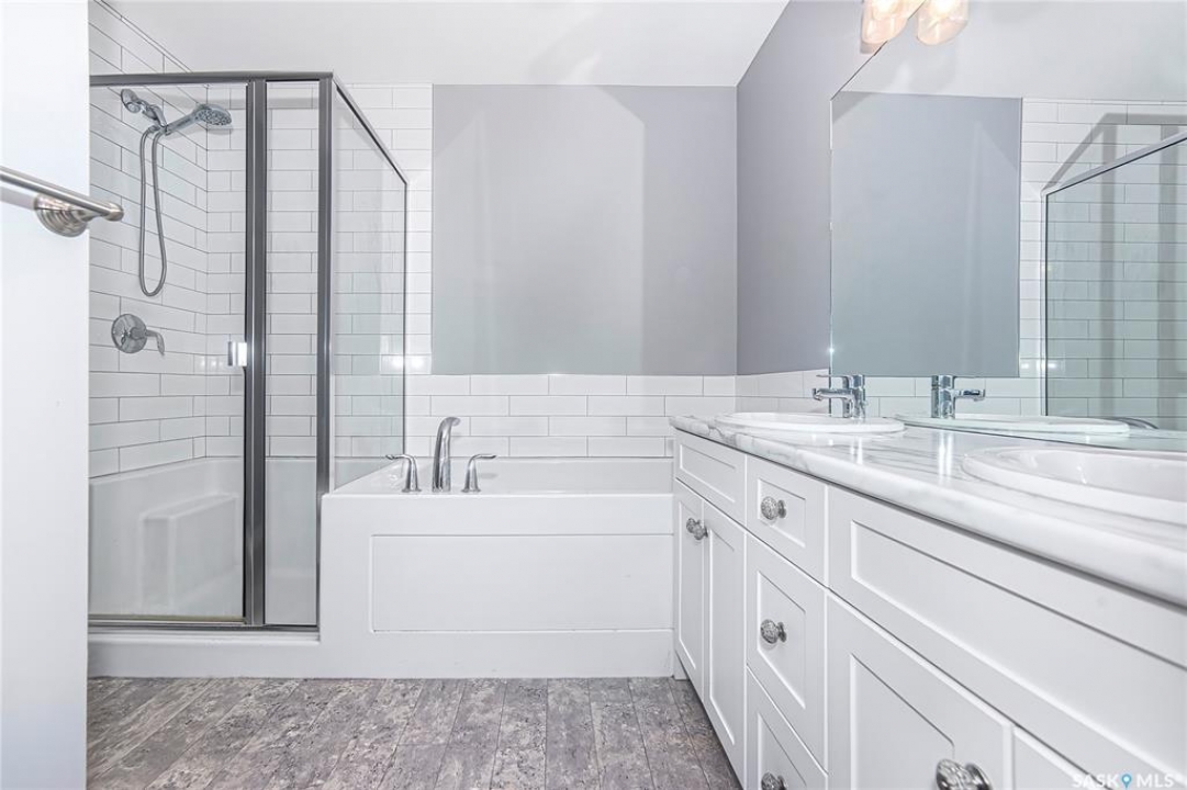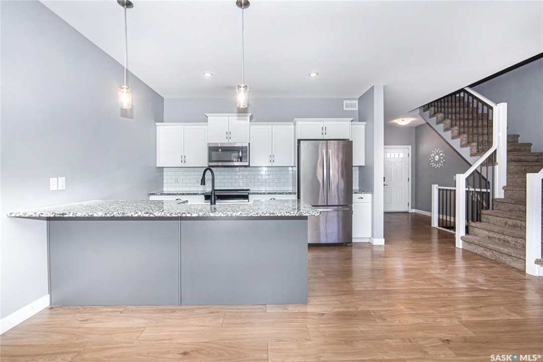 Welcome to your new home in the highly sought-after Stonebridge community! This beautifully maintained property offers exceptional style, comfort, and functionality from the moment you step inside. The spacious front foyer features a walk-in closet, convenient 2-piece powder room, and direct access to the double attached garage. The main floor boasts an open-concept layout with brand-new vinyl plank flooring throughout. The impressive chef's kitchen is equipped with stainless steel appliances, a stylish farmhouse sink, granite countertops, and ample cabinetry—perfect for everyday living and entertaining. Large windows fill the living room and dining area with natural light, with garden doors leading to the deck and fully fenced, landscaped backyard. Upstairs, you'll find three spacious bedrooms plus a versatile bonus room—ideal for a home office or additional lounge space. The luxury primary suite includes a generous walk-in closet and a spa-inspired 5-piece ensuite complete with a barn door, separate soaker tub, walk-in shower, and dual sinks. A full bathroom and a conveniently located laundry closet complete the second level. The undeveloped basement provides endless opportunities—add a bedroom, bathroom, gym, or recreation room to suit your lifestyle. Perfectly located in one of Saskatoon's most popular communities, this home offers excellent value, location, and move-in-ready comfort. Don't miss your chance to own a beautiful Stonebridge property!