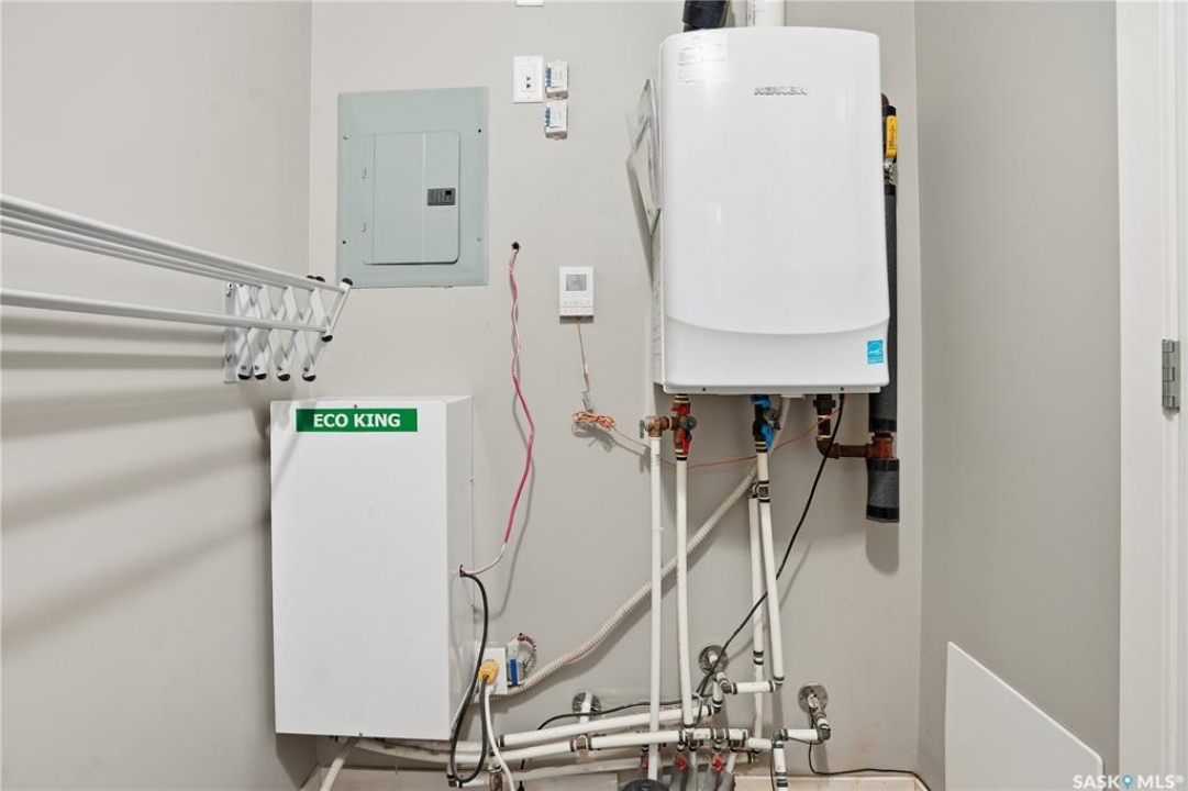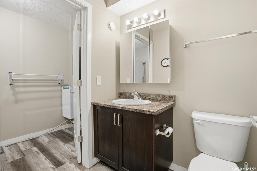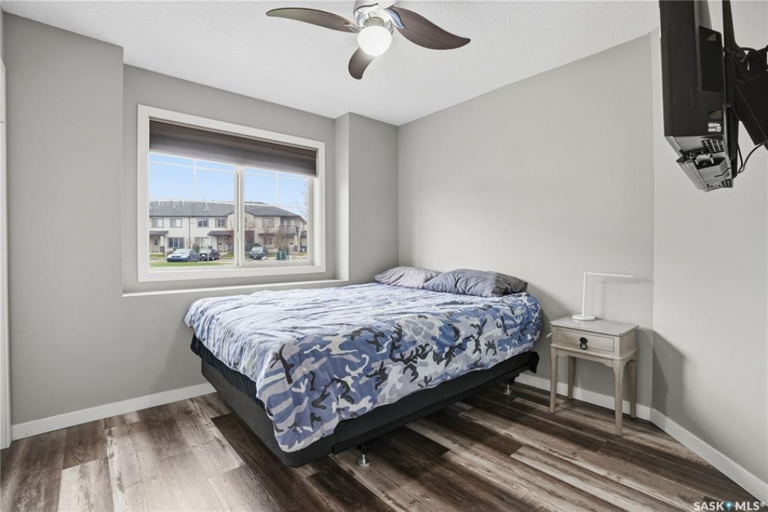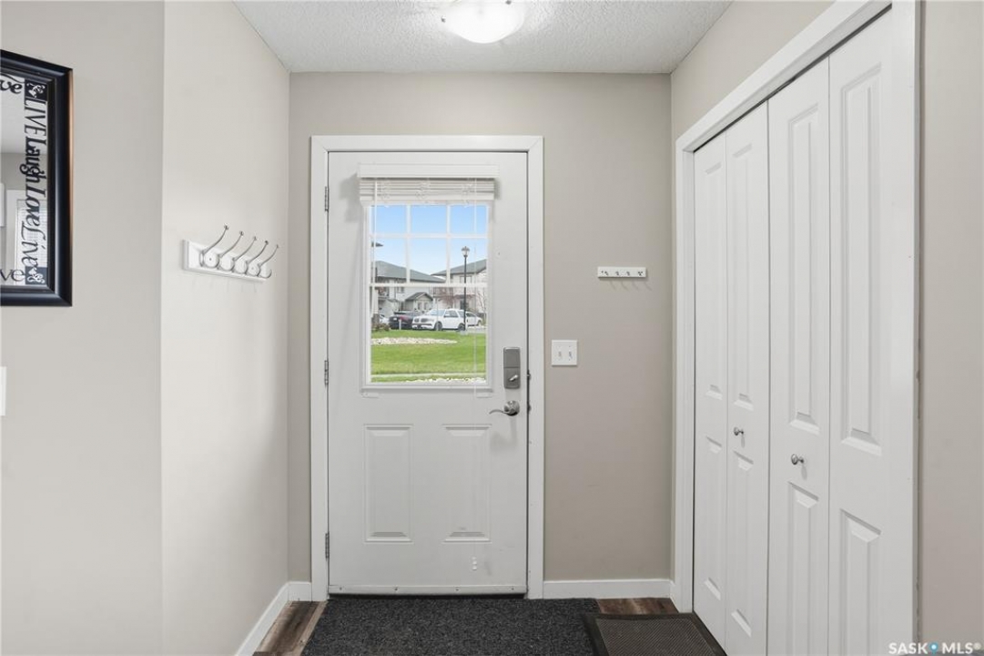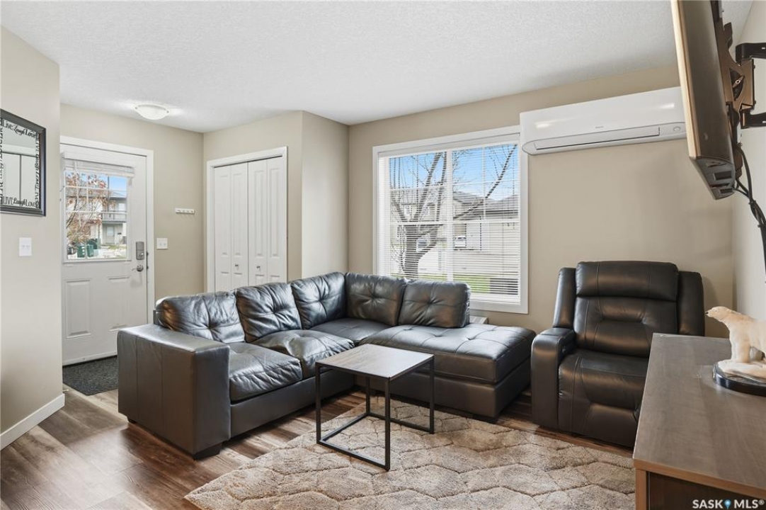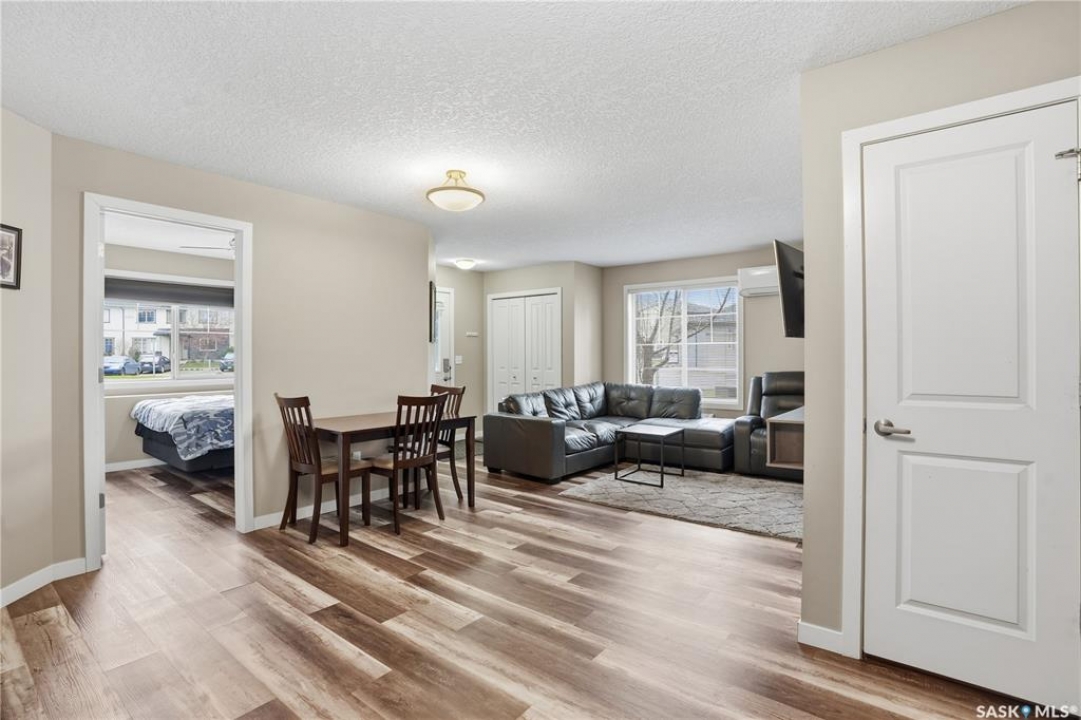 Exceptional condo in the heart of Harbour Landing is a great starter home or investment. Shows 10/10, this owner occupied 2 bedroom, 1 bathroom condo has been very well kept by its owner. Quiet development. Main floor unit. Open concept living room, breakfast nook area and kitchen with stained maple cabinetry, plenty of cupboard space and additional pantry storage. Both bedrooms are bright and spacious. Full bathroom. Laminate flooring throughout. Tankless water heater and in-floor heat throughout the condo. BONUS is 2 electrified parking stalls! Condo fees are $200.56 per month and include common area maintenance and insurance, reserve fund, snow removal and lawn care, garbage pick up. Pets are allowed with restrictions. Close to all south end amenities of Grasslands and easy access to Highway #1 and the Regina Bypass.