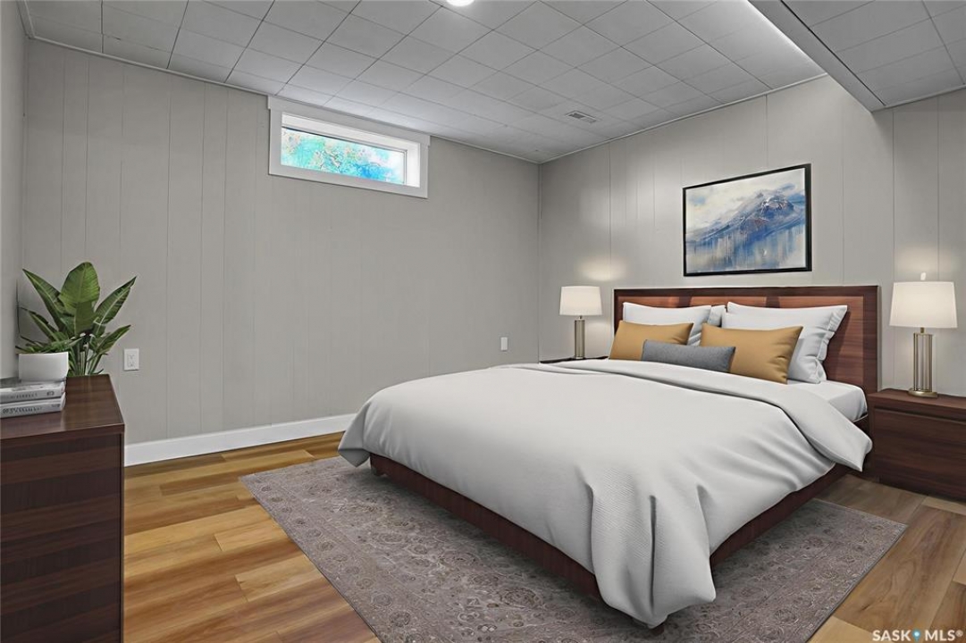 This beautifully maintained bungalow is move-in ready, boasting a myriad of stylish upgrades that combine comfort & functionality. Nestled on a tranquil street, this gem offers a large, private yard, enveloped by mature trees, providing a serene oasis for relaxation and entertainment. Note - Sewer line was replaced including the addition of a backflow valve from house to street has been completed. This home has 3 Bedrooms, a Den & has Finished Lower Level. Step inside to discover a bright and welcoming living space, anchored by hardwood floor that exude warmth and elegance. The heart of the home, the kitchen, which is open to the dining area, has been tastefully updated with modern white cupboards, sleek countertops, and a convenient pantry, all enhanced by elegant tile flooring. The bathroom, revamped by Bath Fitters, features a chic vanity with a granite top, perfectly paired with matching tile for a cohesive look. Throughout the main floor, nearly all windows have been replaced with newer PVC models, ensuring energy efficiency & abundant natural light. The interior also boasts upgraded lighting, and beautiful new laminate flooring that flows through both the main level and the finished basement, elegantly accented with new trim and baseboards. The exterior of the home is equally impressive, with tasteful newer vinyl siding complemented by updated shingles, creating a polished, turnkey exterior. The single garage provides ample storage and workspace, while the private yard offers character and charm, and with your gardening skills can be your next oasis. This bungalow not only offers a solid foundation but also peace of mind with its comprehensive updates. It's a blend of style, comfort, and modern convenience, ready to welcome its new owner's home. Don't miss the opportunity to make this exquisite property yours! CLICK ON THE MULTI MEDIA LINK FOR A FULL VISUAL TOUR and call today for your personal viewing.