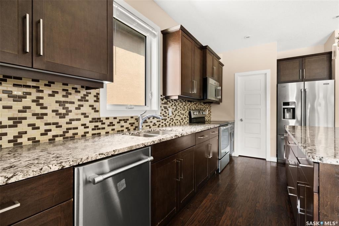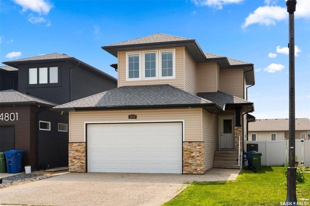 Welcome to 4733 Green View Crescent E, Prime location in the Greens on Gardiner, walking distance to school, park and Acre 21. Custom built, open concept main floor with 9' ceiling,Over 1800 sqft two storey home with 5 bedrooms and 4 bathrooms! Main floor features a spacious flyer, open concept living space with a large living room, kitchen and dining room featured hardwood flooring. A large kitchen has conner walk in pantry with shelves, quartz countertops and tile backsplash plus central island. Off kitchen the garden door leads to the covered deck with partially fenced south facing back yard. 2pc bath to finish the main floor. The second floor feature 3 bedrooms and 2full baths and spacious laundry room. the master bedroom has large walk in closet with 5pc ensuite and quartz top with dual sink, another two good sized bedrooms with a 4pc bath and laundry to make up the second floor. Separate entrance to the basement ,The basement is fully developed living room and two bedrooms plus 4pc bath.
