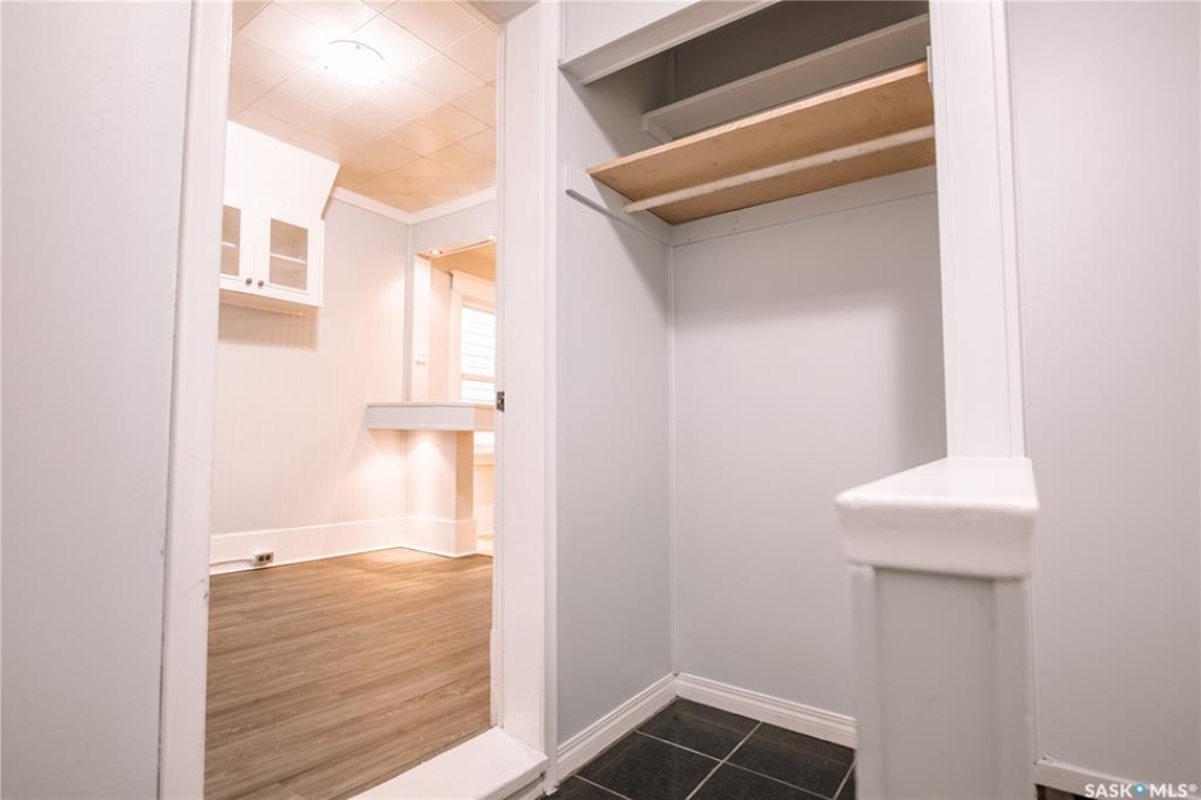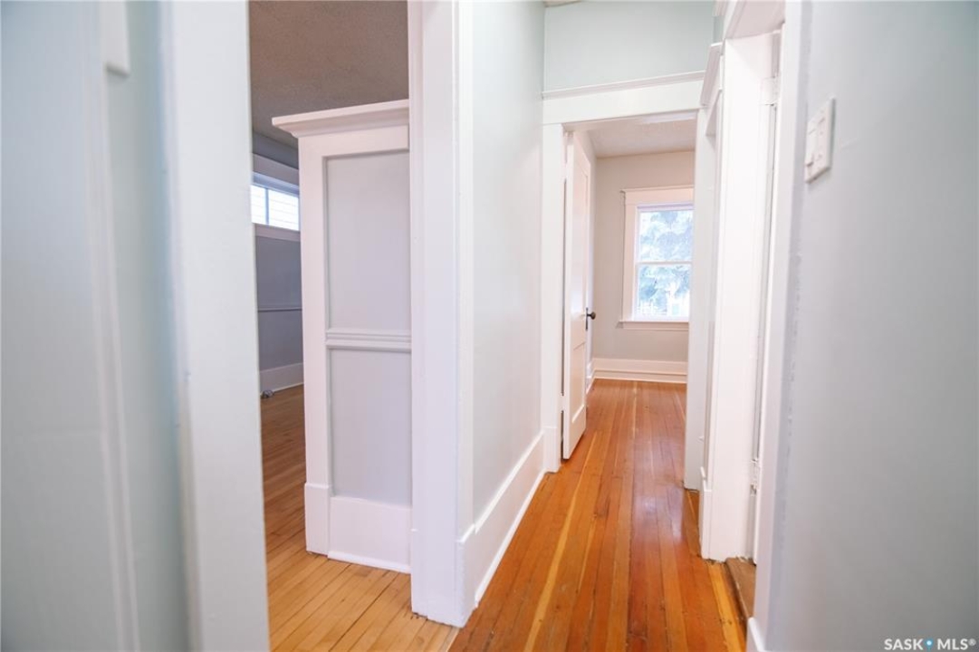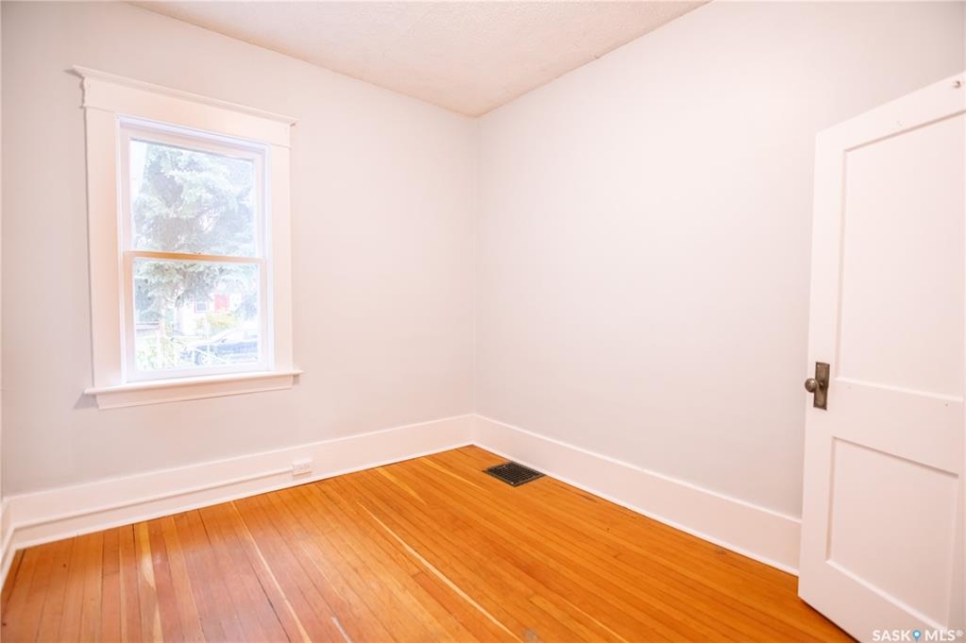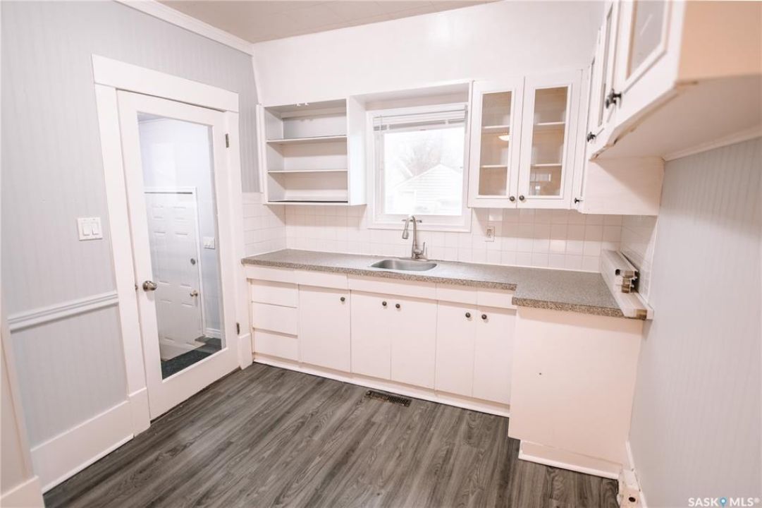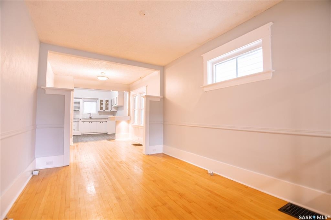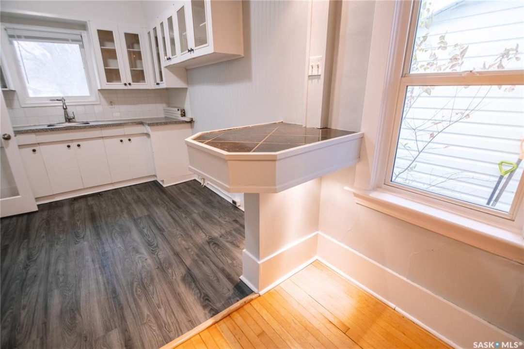 Nestled in the heart of Regina's sought-after Cathedral neighbourhood, this charming two-bedroom bungalow is full of warmth, character, and move-in-ready comfort. Step through the inviting front porch — a bright, sunny 3-season space that's perfect for morning coffee or relaxing with a book. Inside, you'll find beautifully maintained original hardwood floors throughout the main living areas and bedrooms, adding timeless appeal. Large windows fill the home with natural light, creating a bright and welcoming atmosphere from morning to evening. The open-concept main area is ideal for everyday living and entertaining. The living room sits at the front of the home, with enough space for the whole family, while a partial wall subtly defines the dining area, giving both spaces their own identity. The kitchen blends character and function with white cabinetry, open shelving, and a deep stainless steel sink perfectly placed under the window overlooking the backyard. Dark laminate counters and a crisp white backsplash complete the modern, clean look. Down the hall are two comfortable bedrooms and a full 4-piece bathroom featuring a vintage-style clawfoot tub and pedestal sink — a nod to the home's classic roots. The lower level is neat, dry, and offers plenty of storage and laundry space. Step out back to find a cozy yard with a small patio for BBQs, a grassy area for kids or pets, and a single detached garage with an additional parking space. You'll love the location — walking distance to downtown, Wascana Park, and the Cathedral Village shops, restaurants, and cafes. The neighborhood's vibrant energy shines during the annual Cathedral Village Arts Festival, celebrating local food, art, and music. Schools and post-secondary campuses, including the University of Regina and Saskatchewan Polytechnic, are also nearby. This delightful Cathedral home combines charm, convenience, and community — a true gem you won't want to miss.