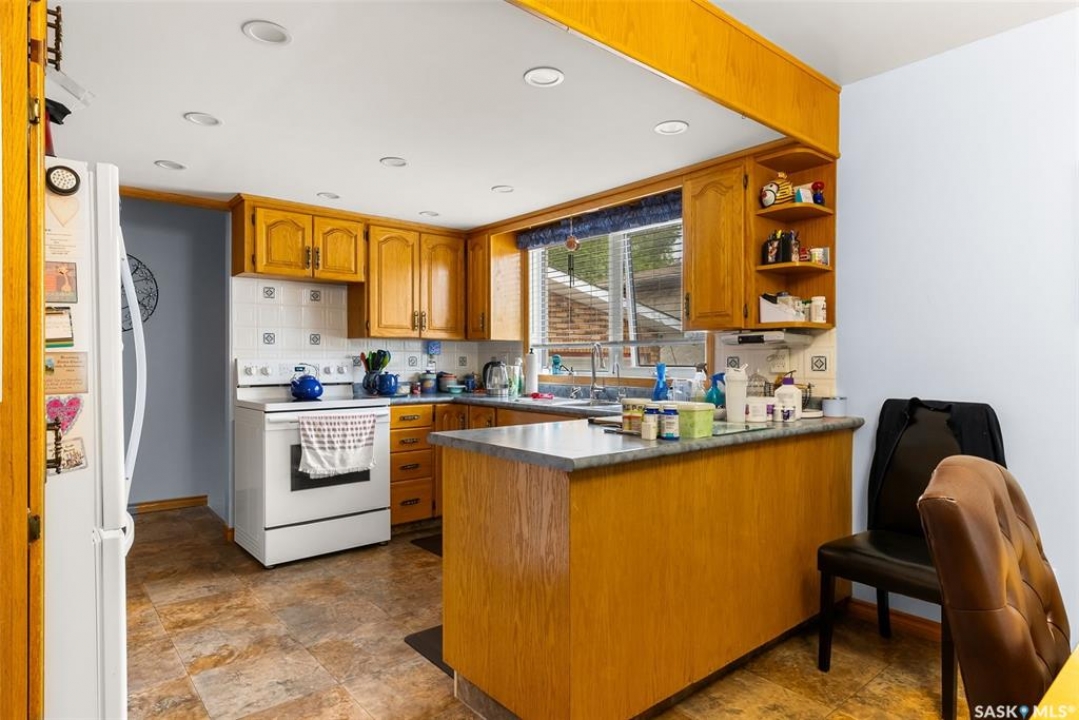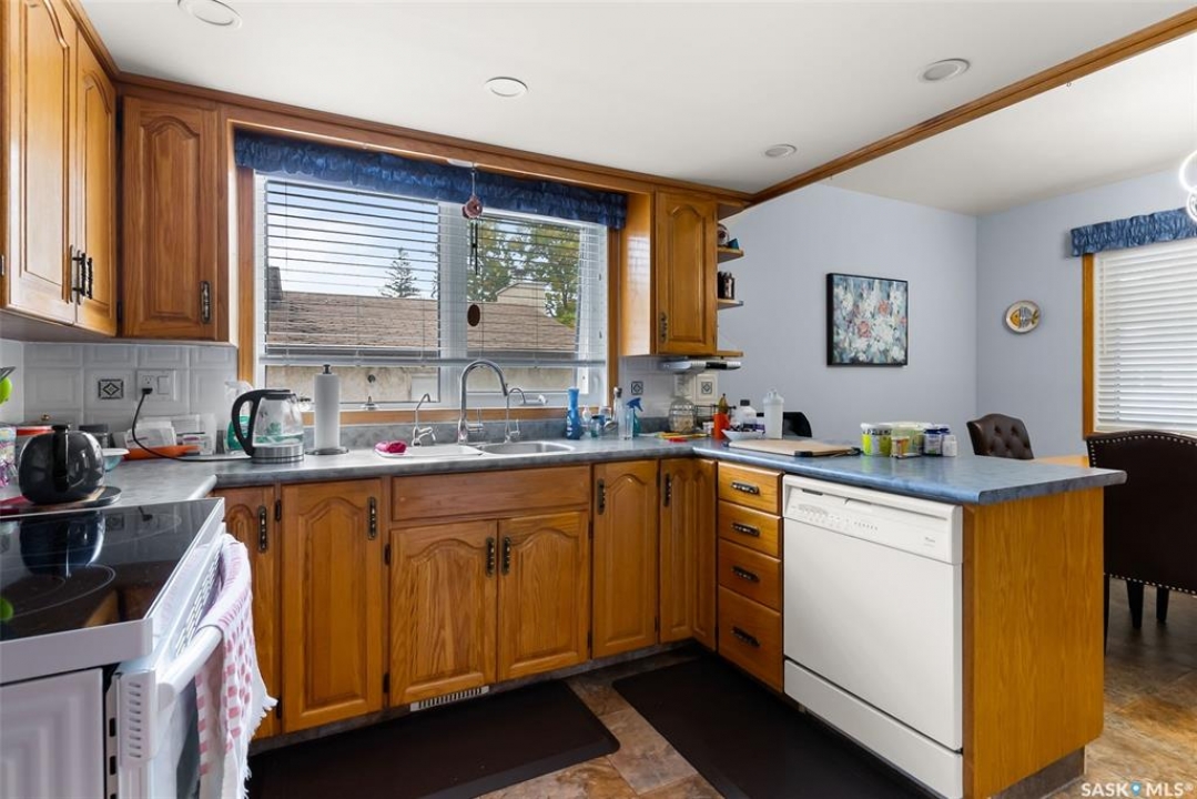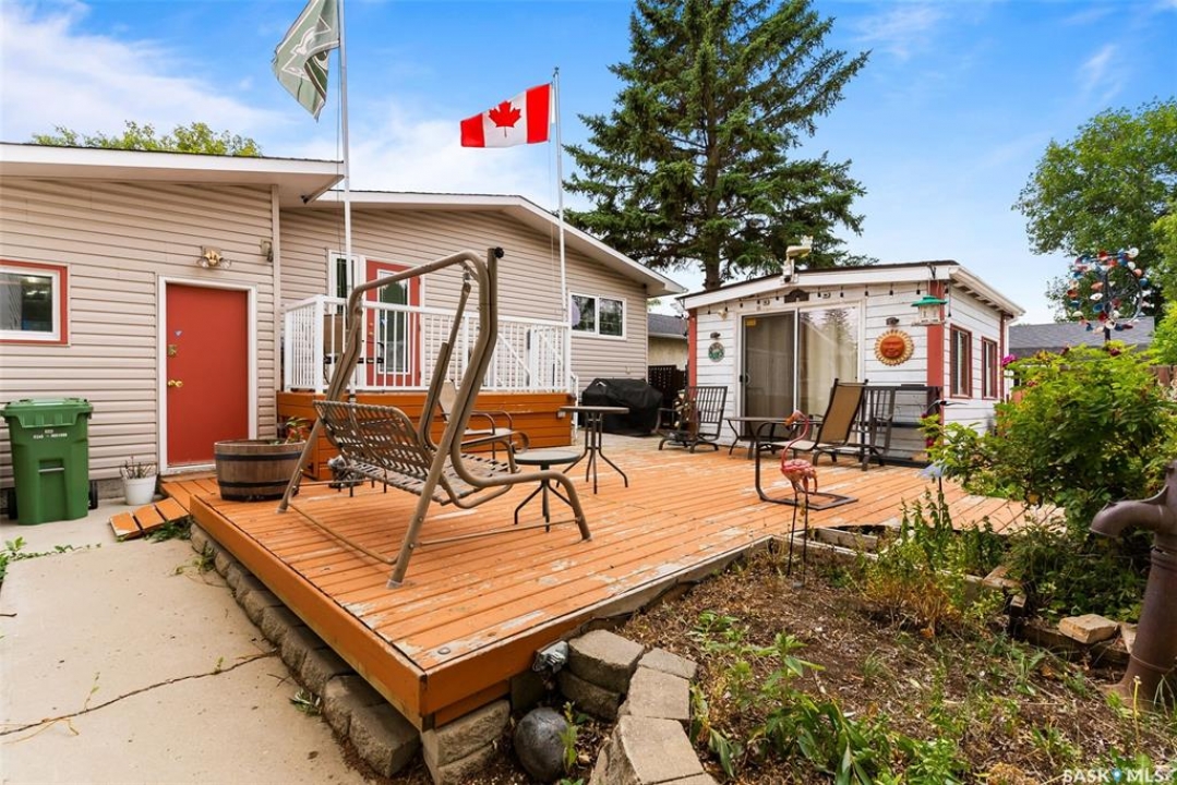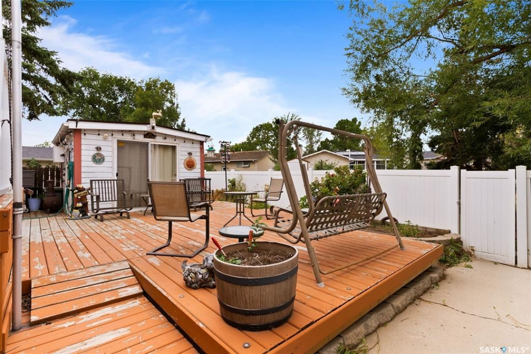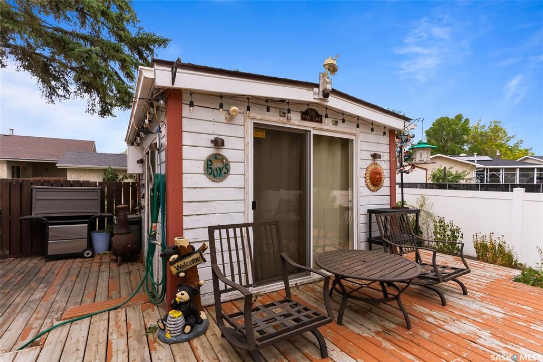 Extremely well cared for ORIGINAL OWNER bungalow in good East end location backing a park. 1362 square foot, 3 bedroom (could have a 4th in the basement), 3 bath with multiple upgrades and features. 2 x 6 exterior wall construction, large open concept living area, triple pane windows on the main floor, central a/c, central vac, developed basement featuring large rec room with gas fireplace/ bathroom/ and great storage. Oversized attached single garage, deck, 3 season out building/man cave, large 2 storey shed, all appliances included and much more.